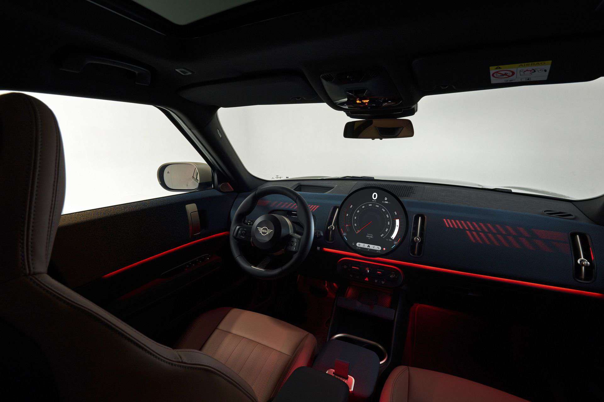 Step inside the 2024 Countryman, and you’ll find an interior that largely mirrors the new MINI hatchback. The centerpiece of the cabin is a 9.4-inch OLED circular display on the gently curved dashboard, providing easy access to most functions. A noteworthy departure from traditional automotive interiors, the cabin adopts a minimalist approach by eliminating the driver’s display and most of the conventional controls.