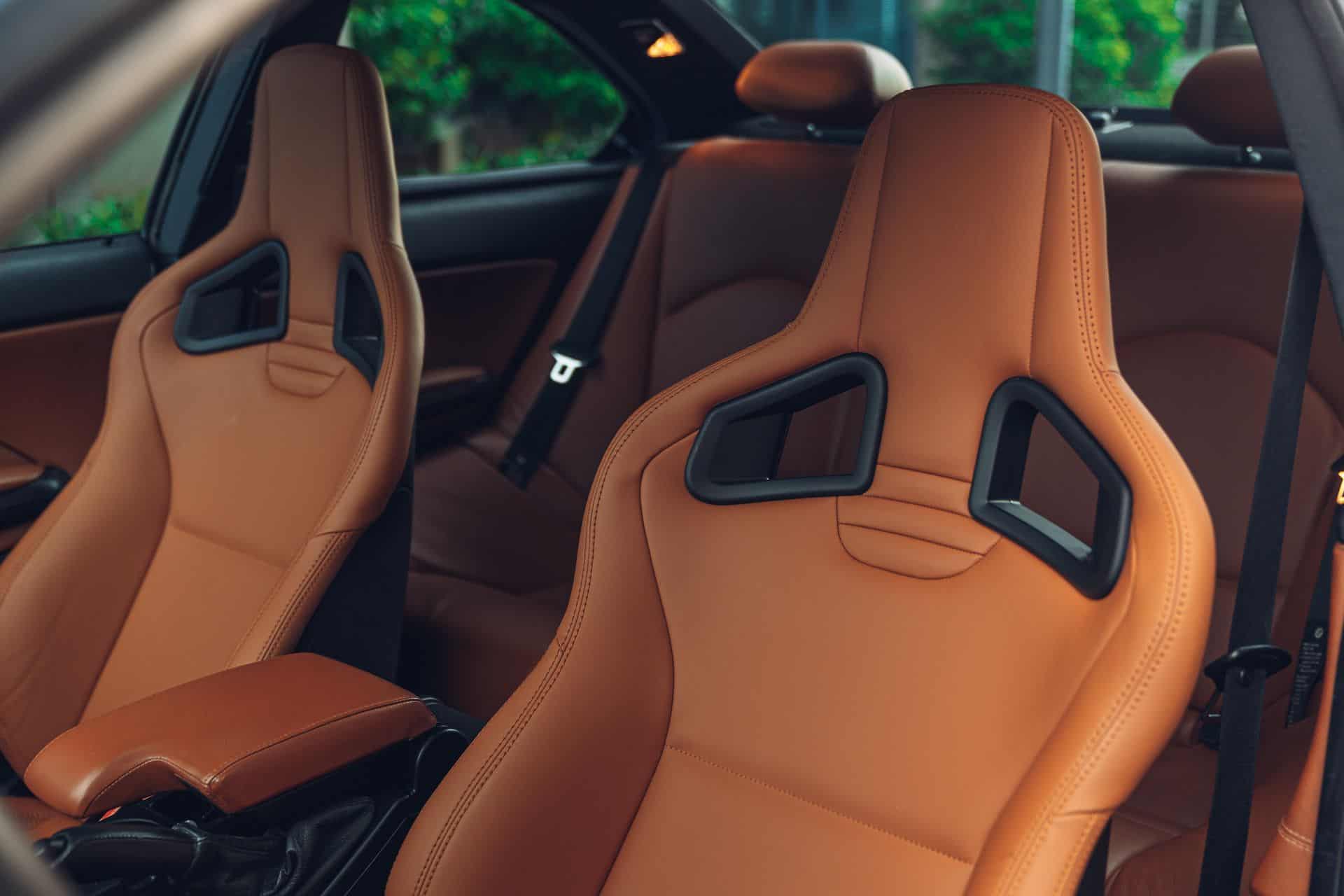 Next up are the seats and seating position which I hated. The stock seats offer less lateral support than they look like they would and they were just plain uncomfortable. Several passengers agreed. They also sat way too high. I’m tall (6’5) and headroom was an issue. Lower seats with more bolstering was needed. Enter color matched Recaros which are flat out fantastic and on Recaro brackets they offer way more headroom than stock and really get you down in the car.