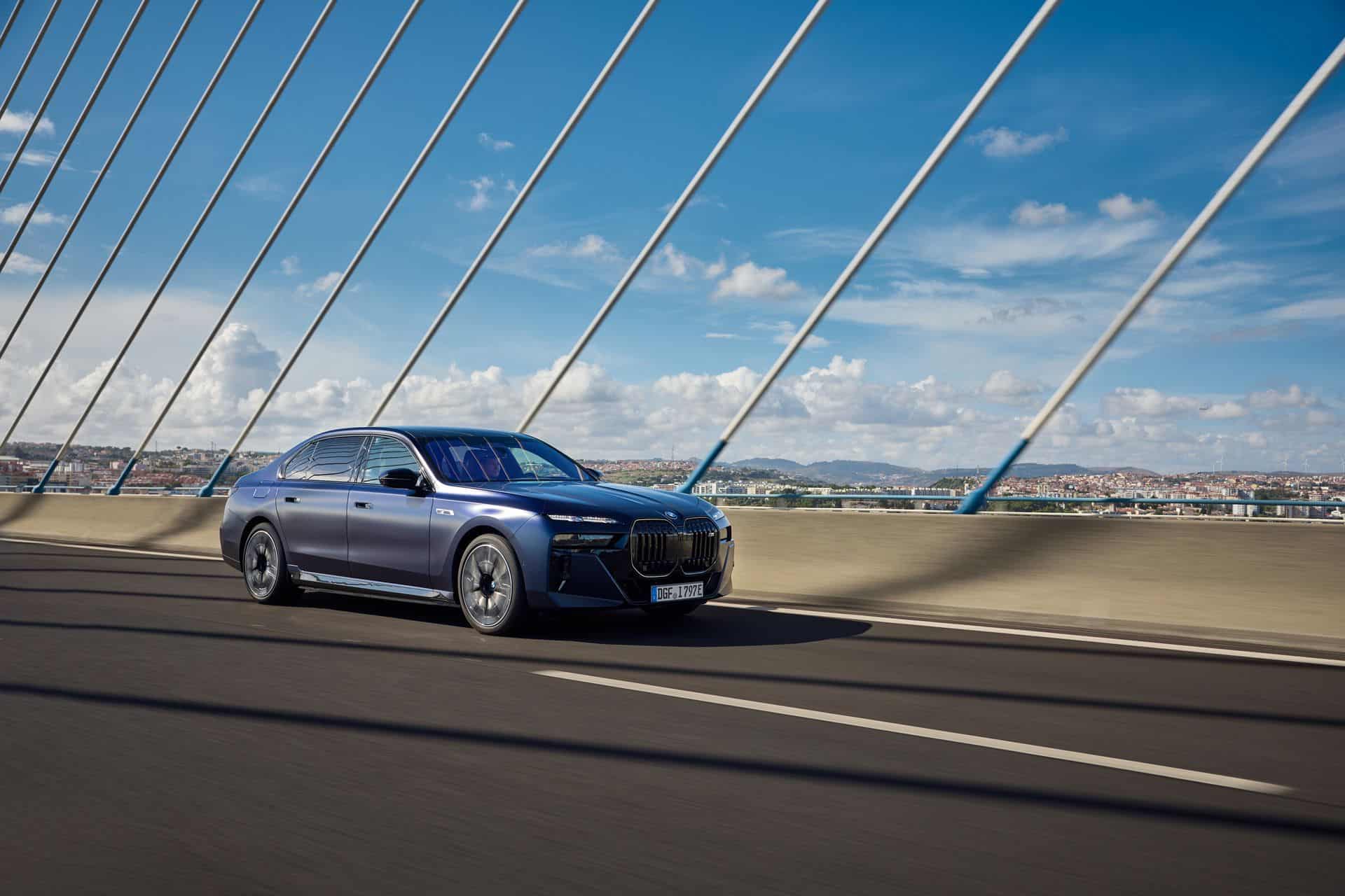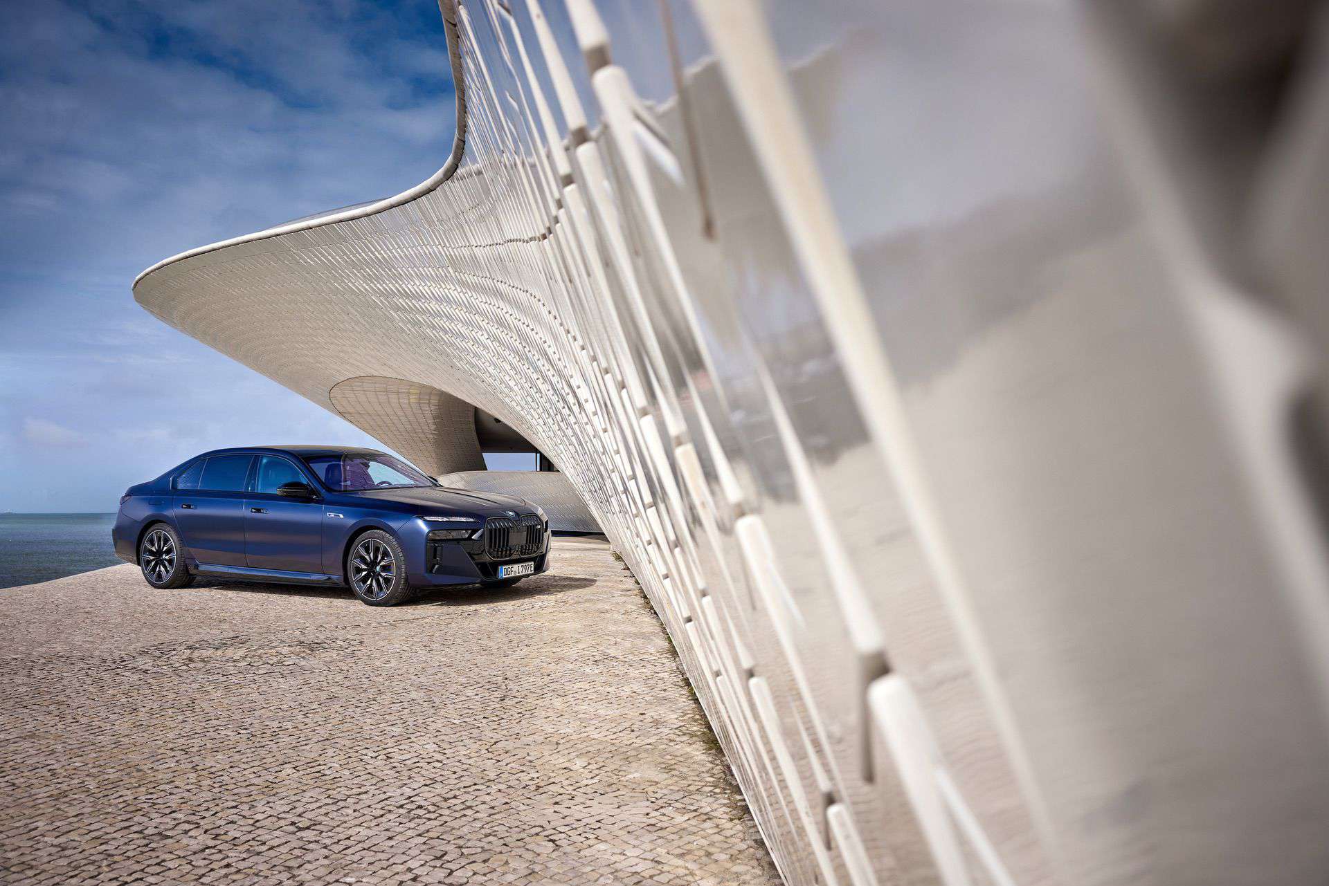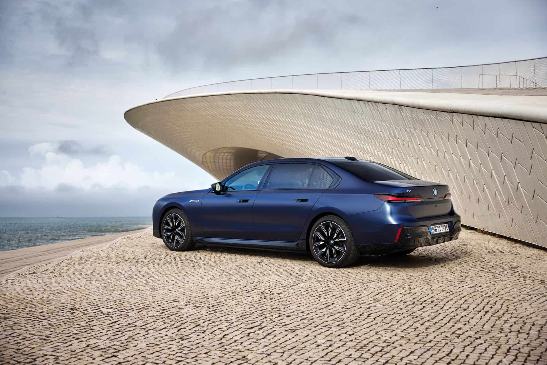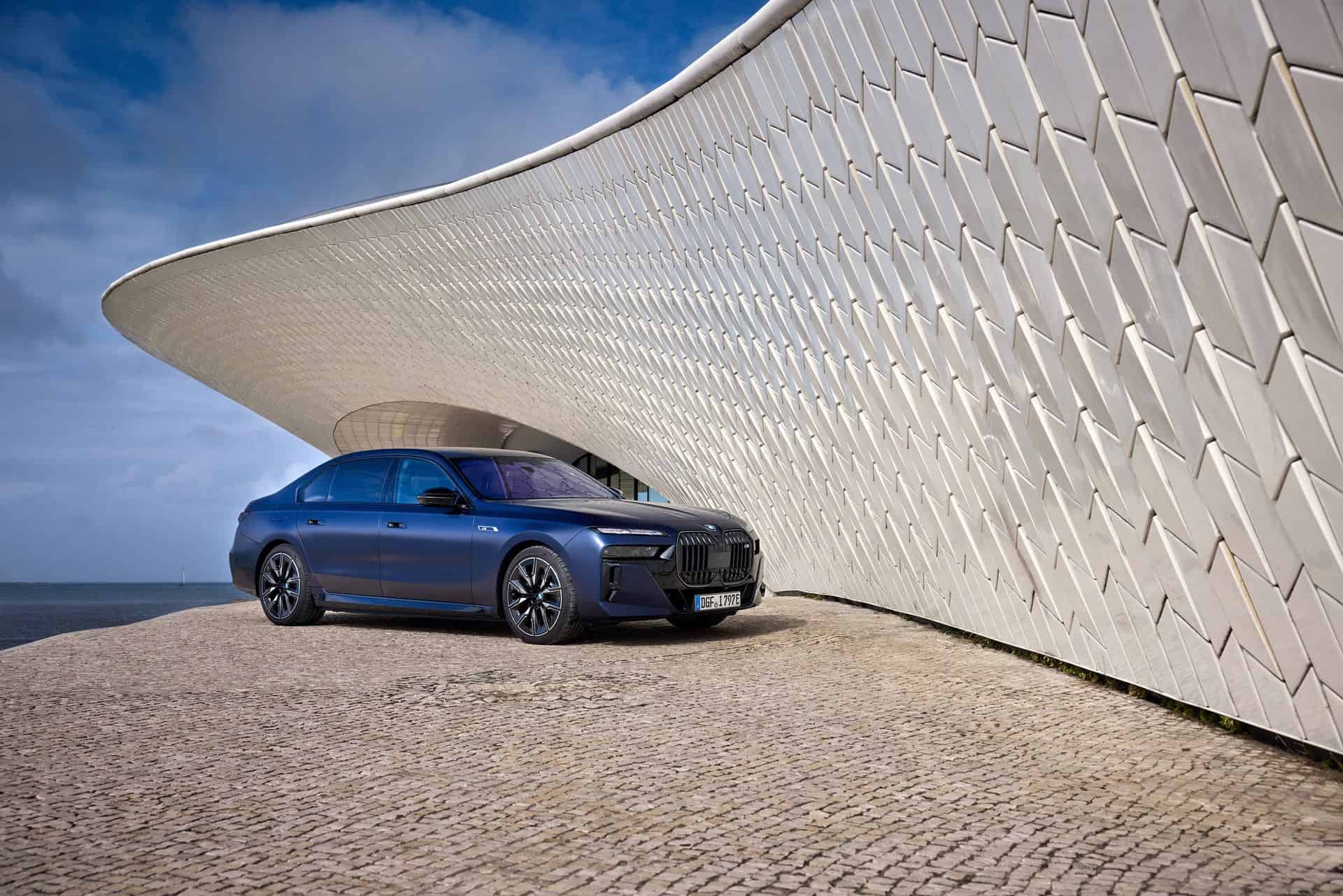 The stage is set at the International Media Launch of the BMW i5 and i7 M70, an event eagerly anticipated by automotive enthusiasts looking for the latest news on BMW electric cars. Amidst the multiple models present in Lisbon, a particular gem emerges – the Frozen Tanzanite Blue BMW i7 M70. While the most powerful 7 Series ever made had already garnered attention for its striking two-tone Liquid Copper and Sapphire Black paint scheme, this new addition to the color palette brings a touch of traditional luxury to the forefront.
