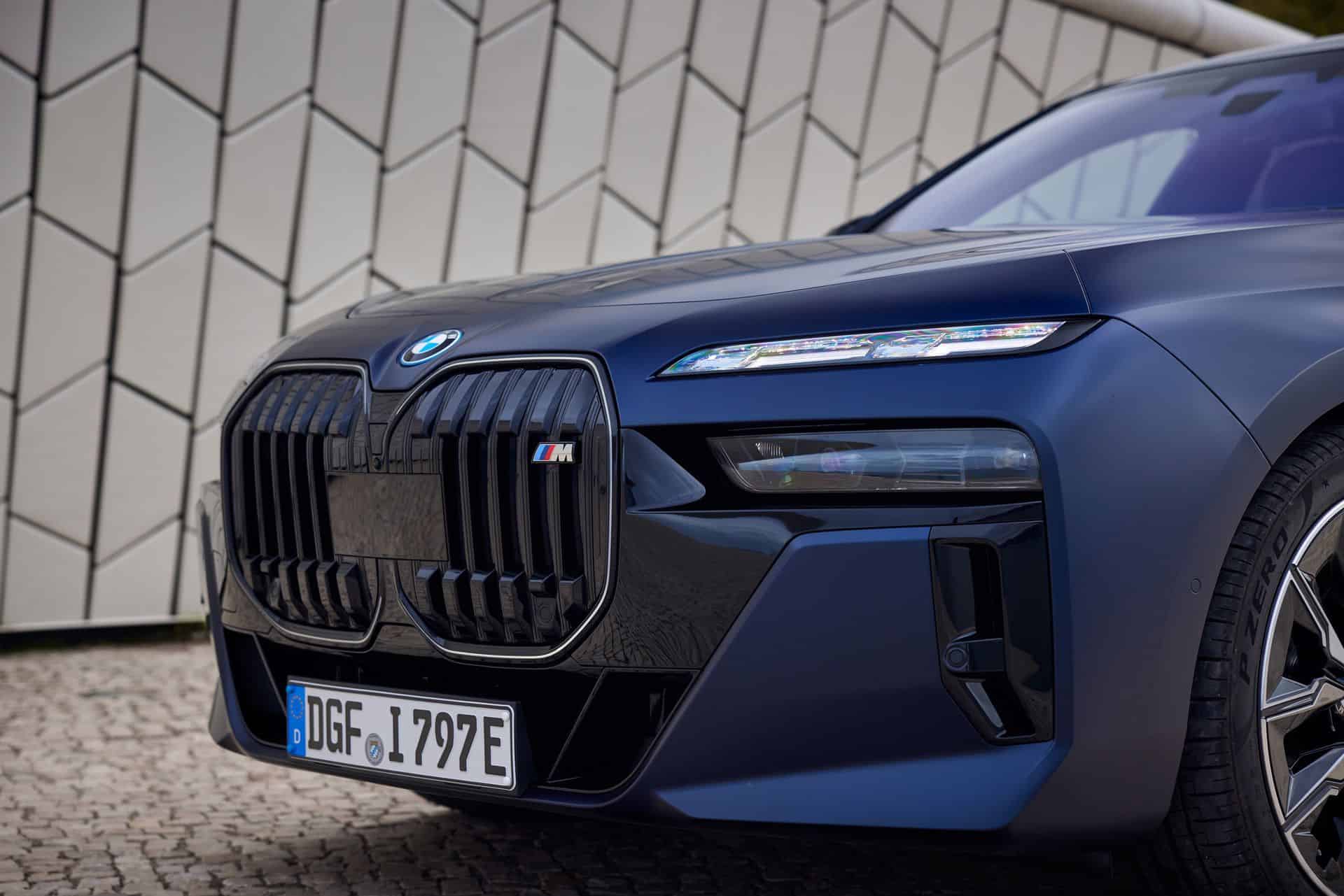 Stepping inside the Frozen Tanzanite Blue BMW i7 M70 and you will be greeted with the most luxurious and high-tech BMW cabin ever made. The interior boasts BMW Individual Leather Merino Wool in Taupe Grey and Night Blue, a combination that exudes warmth and refinement. Complementing this lavish upholstery is the Individual Ash Flowing Green open-pored wood trim. The car rides on 21-inch wheels styled as the 909M Aero Wheels. Of course, the iconic BMW kidney grilles with Iconic Glow technology are present, ensuring that even in the dark, the i7 M70 unmistakably stands out. For better or (for) worse.