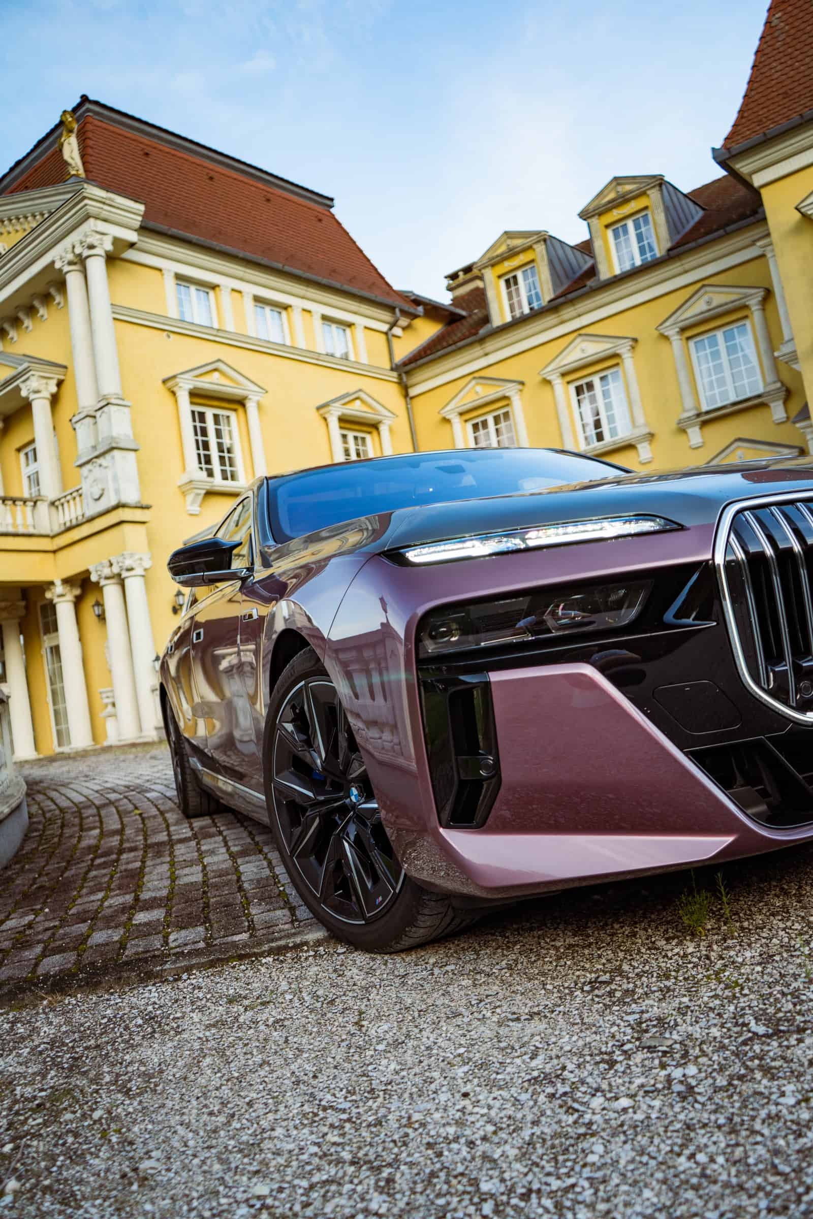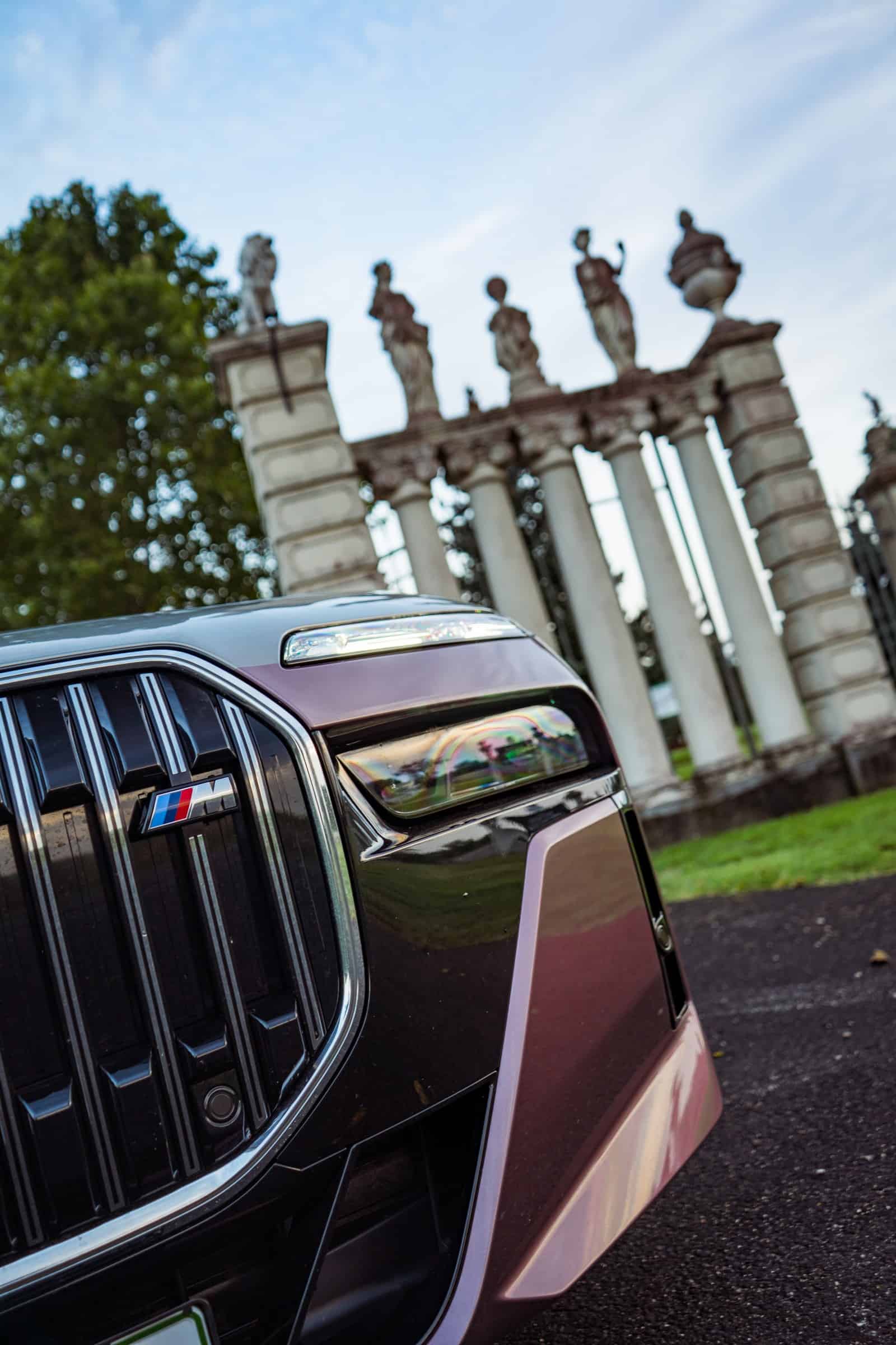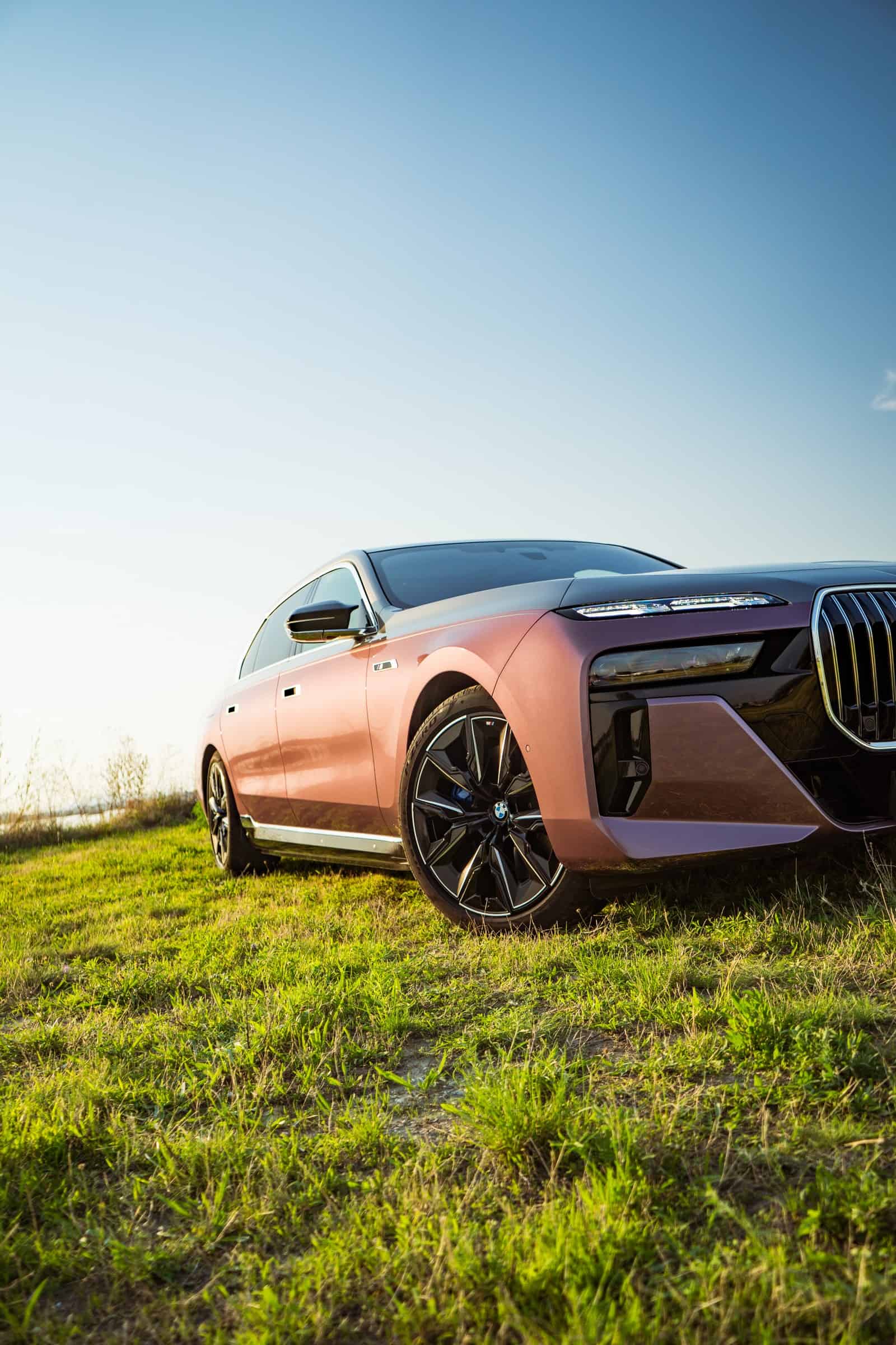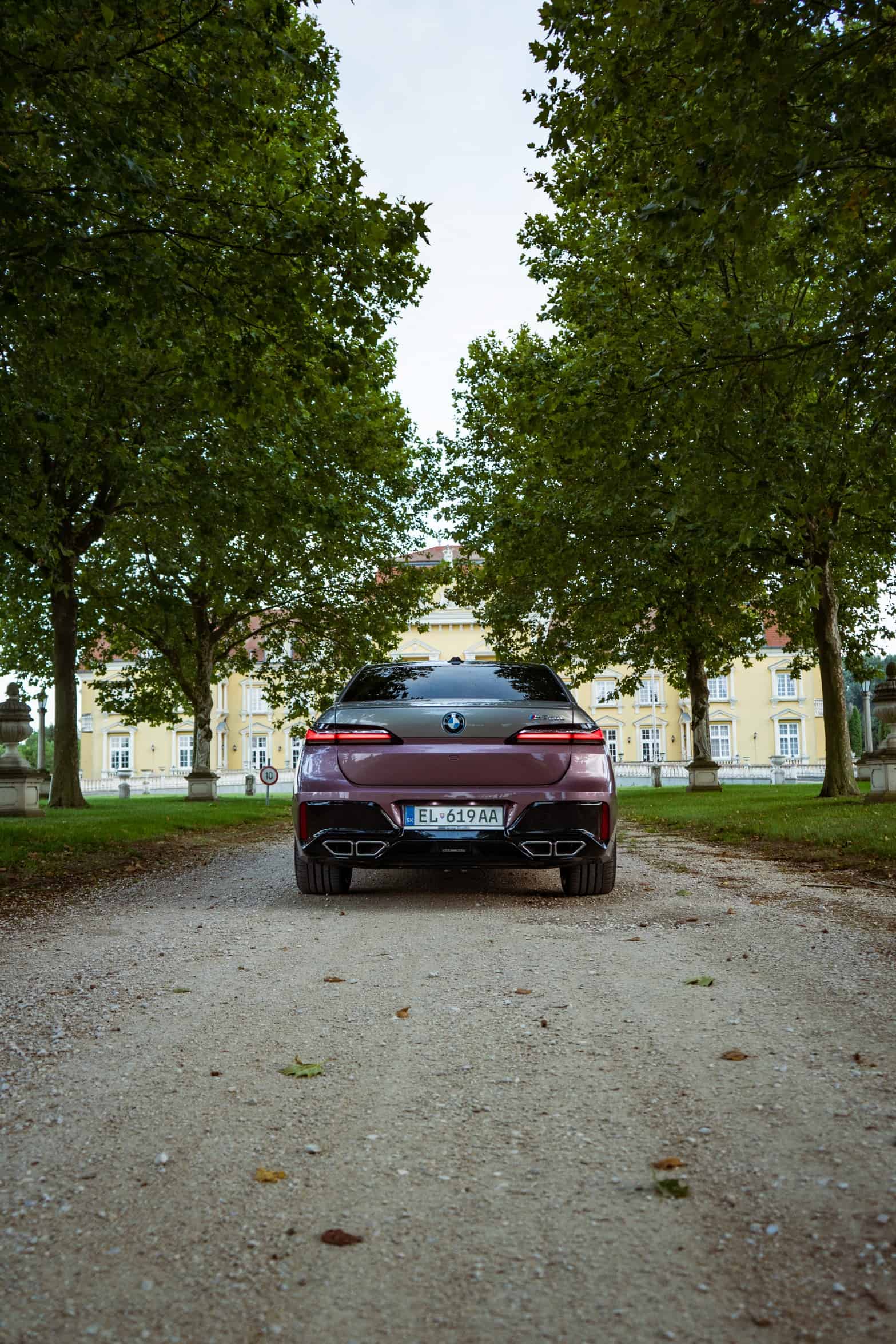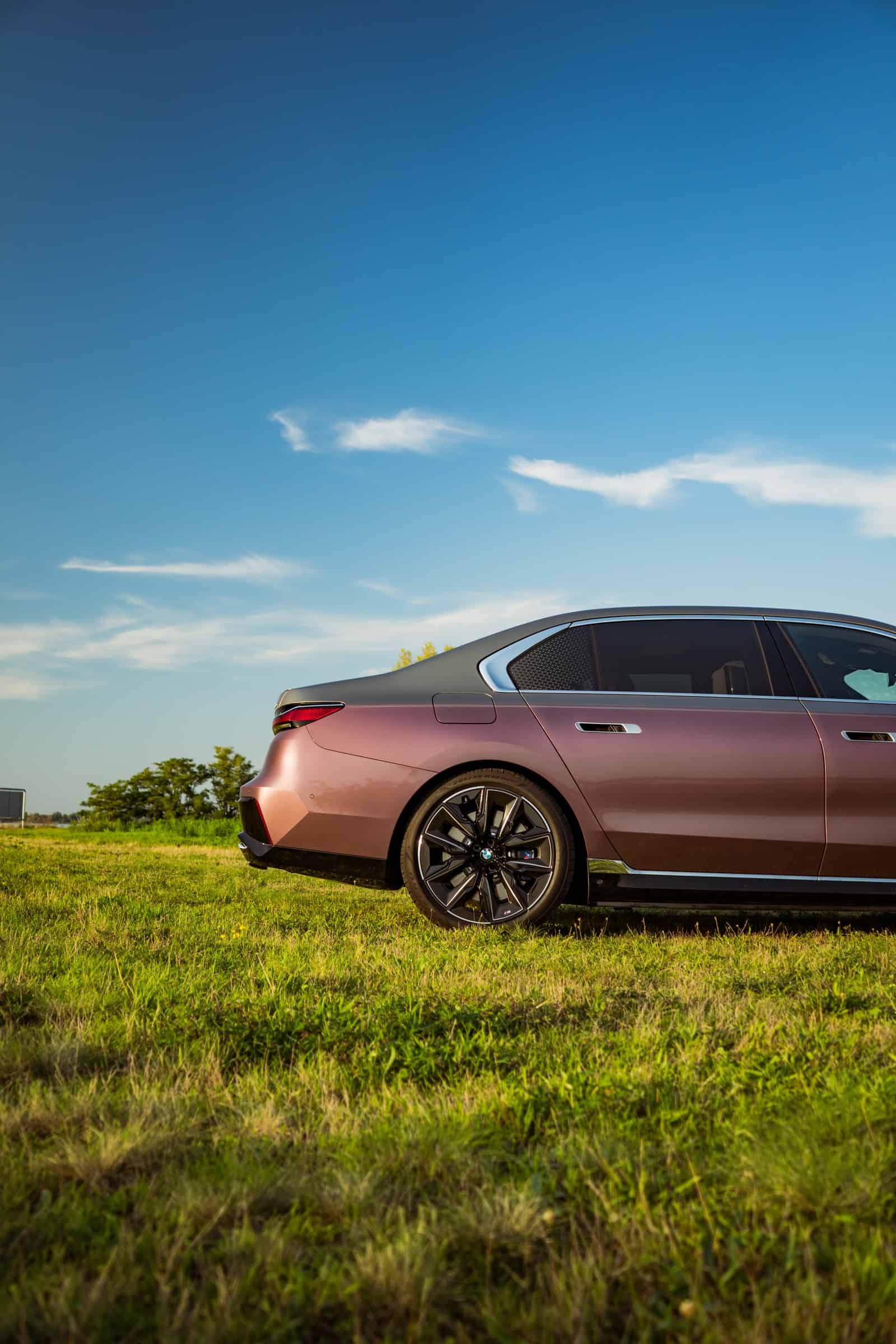 BMW Slovakia had the opportunity to shoot this two-tone M760e as well as the 2024 X5 M Competition finished in Wildberry we talked about the other day. Aside from the fancy paint job, the stately sedan also has the larger 21-inch wheels (909 M style) with a two-tone finish. Being an M Performance 7er, it flaunts an M badge above the charging port on the front fender and another one on the kidney grille. In addition, it can be visually distinguished by its quad exhaust system.