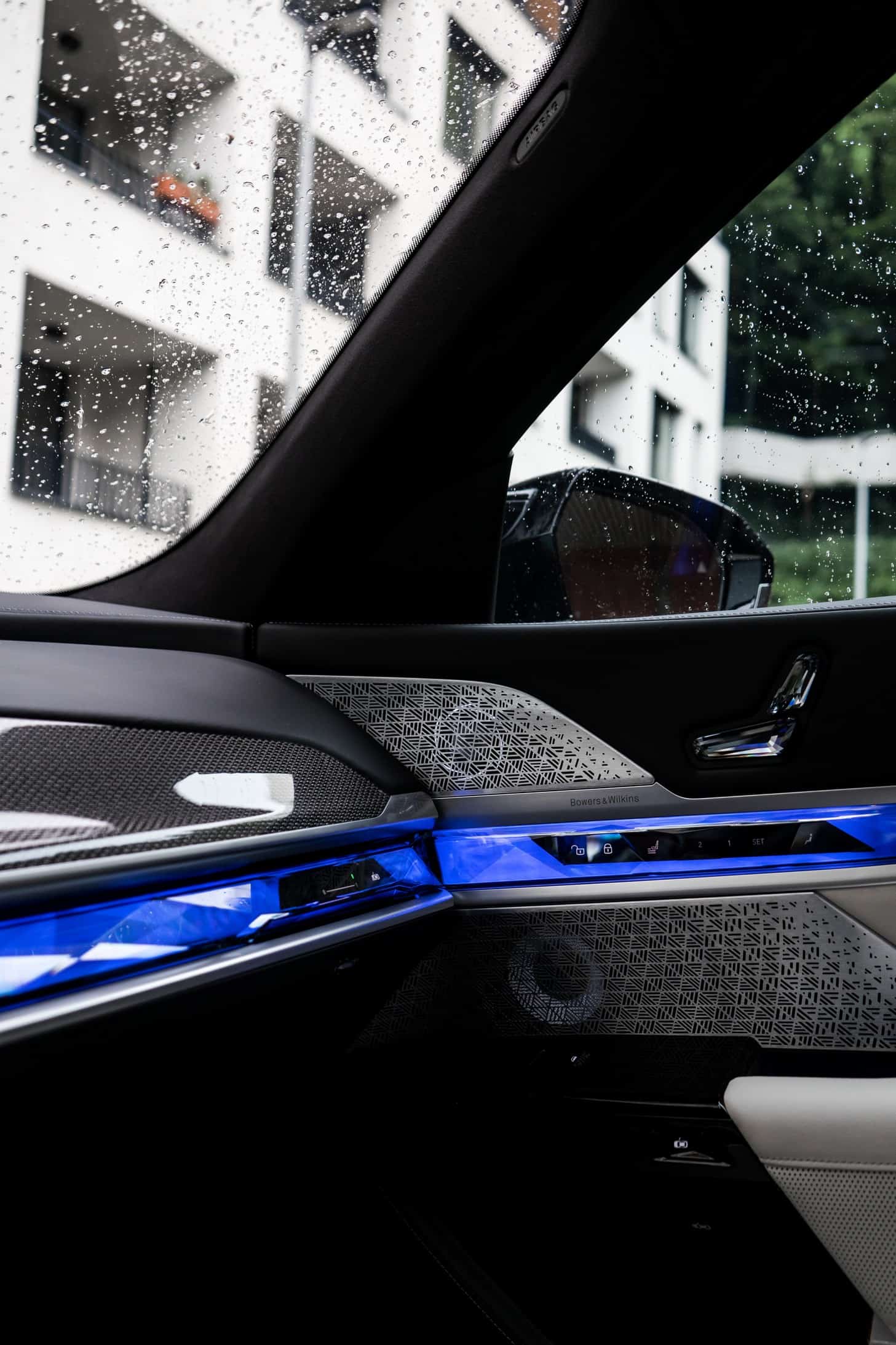 The interior looks just as special with its Merino leather in Smoke White, a carbon fiber dashboard trim, and crystal controls such as the iDrive knob and gear selector. This BMW M760e xDrive also happens to have the optional Theatre Screen, a massive 31.3-inch display with 8K resolution that extends from the roof to serve as the ultimate rear-seat entertainment system.