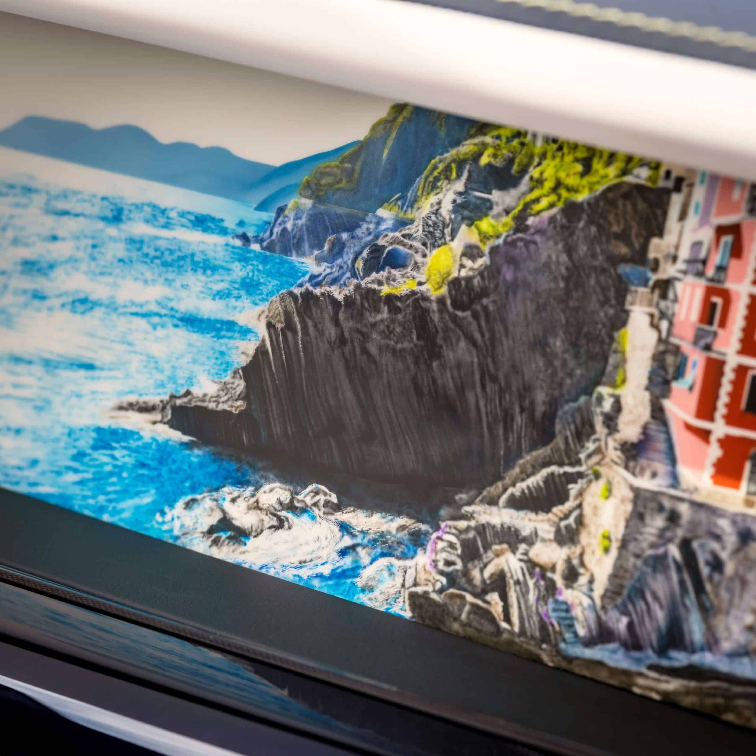 As to why it’s called “Cinque Terre,” that’s Italian for “Five Lands” and represents a string of five old fishing villages located in the Liguria region: Monterosso, Vernazza, Corniglia, Manarola, and Riomaggiore. These are depicted on the hand-painted dashboard (known as “The Gallery” in Rolls-Royce vocabulary) with special artwork of the colorful buildings found in that area. Illustrating all five cliffside villages was done by creating a digital sketch before airbrushing the design by hand using water-based acrylic paint and applying multiple coats of clear lacquer.