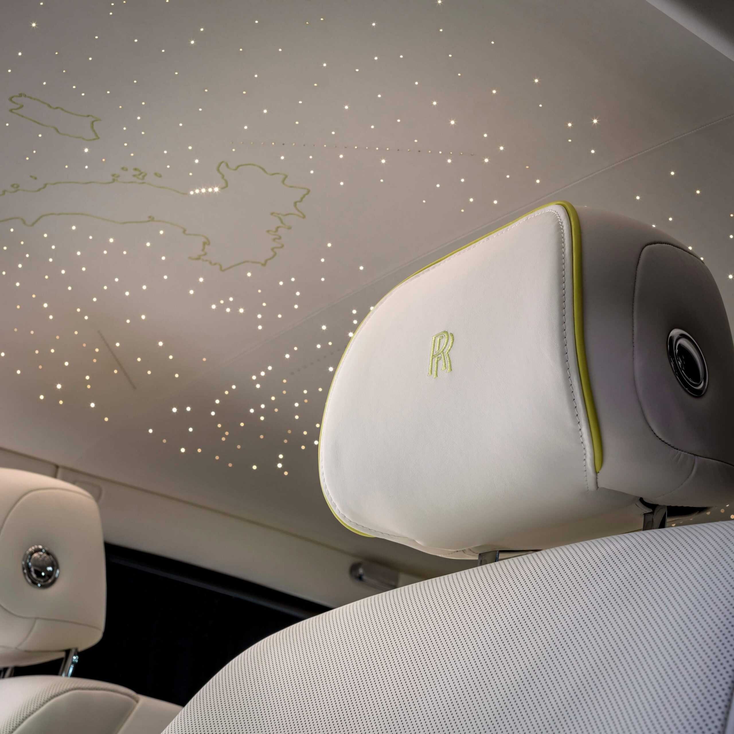 Then there’s the so-called Starlight Headliner, boasting 14,338 individual embroidered stitches illustrating a map of Italy. Rolls-Royce manually applied five glowing stars at the edge of the coastline to highlight the Cinque Terre villages. The high-end automaker part of the BMW Group says deciding on the design of the ceiling was a time-consuming process that took more than a month to get it right.