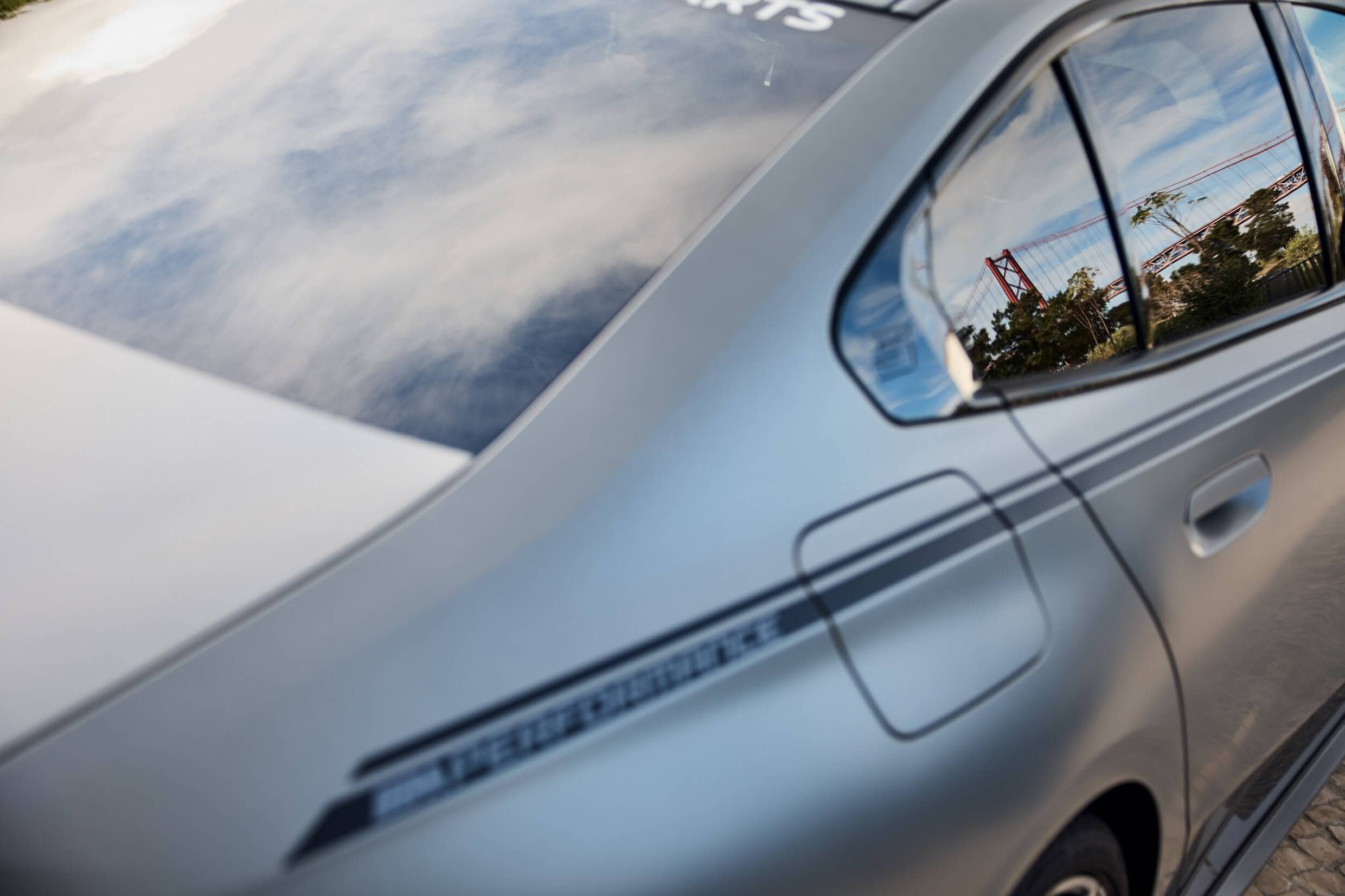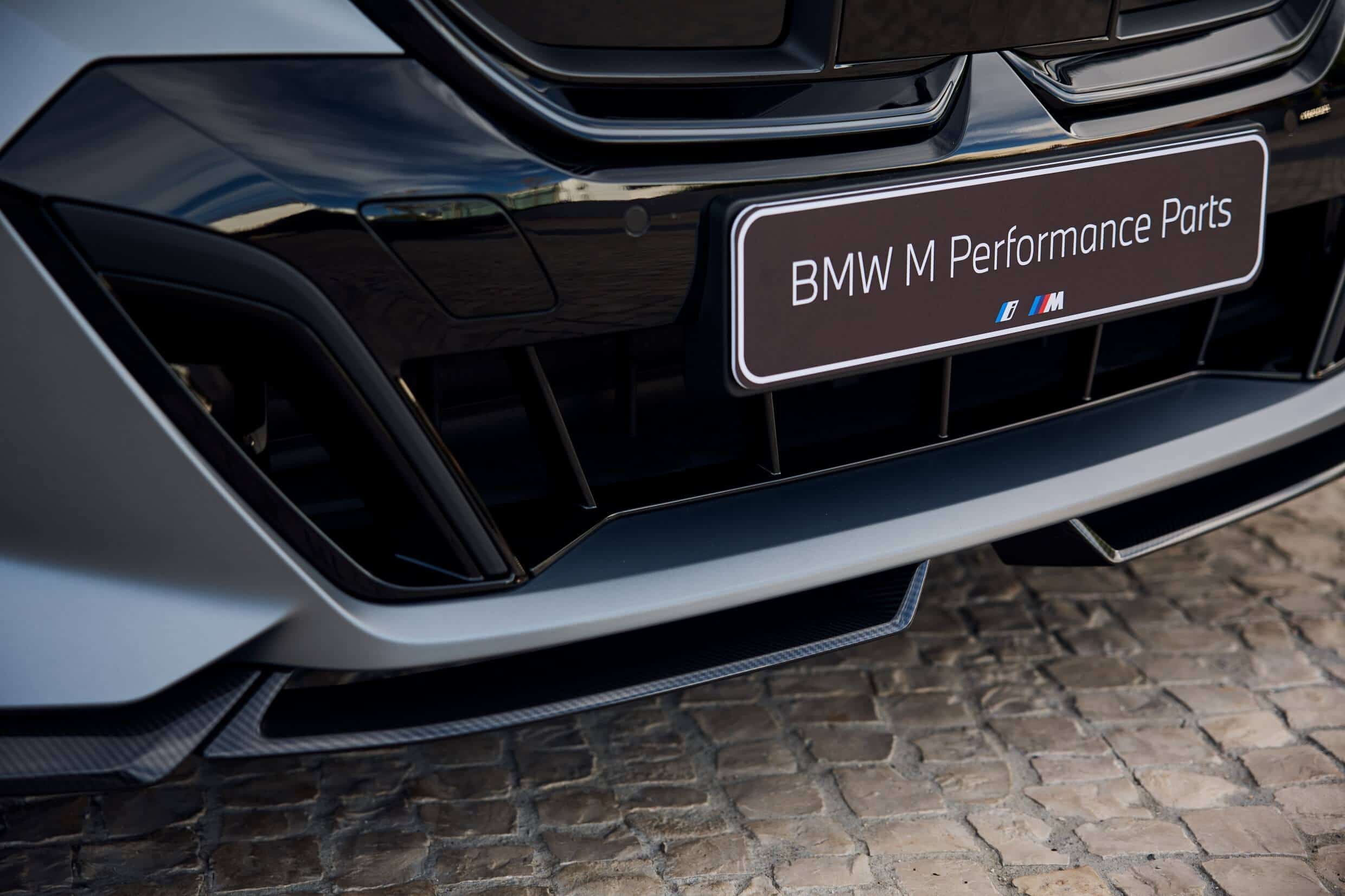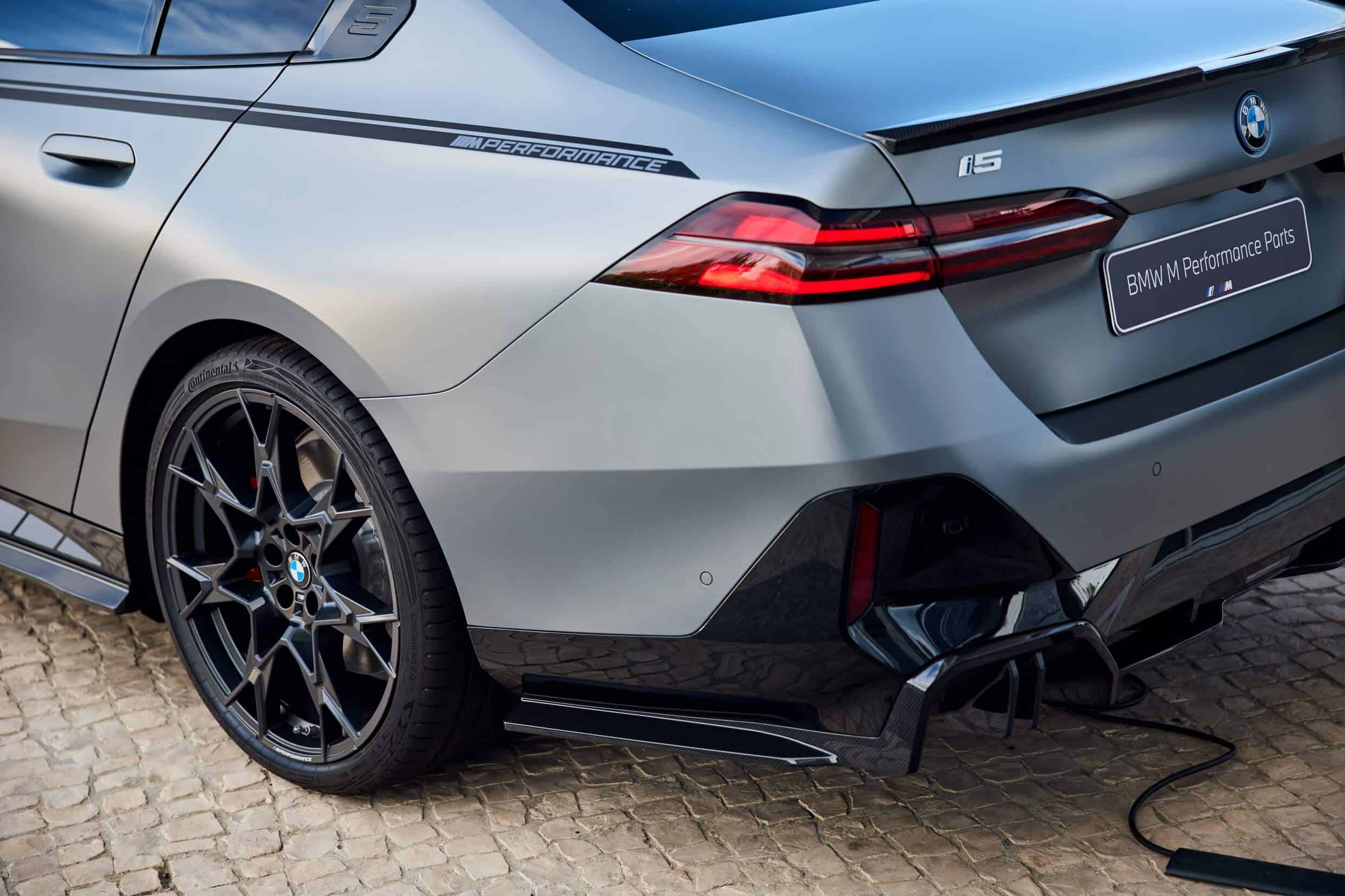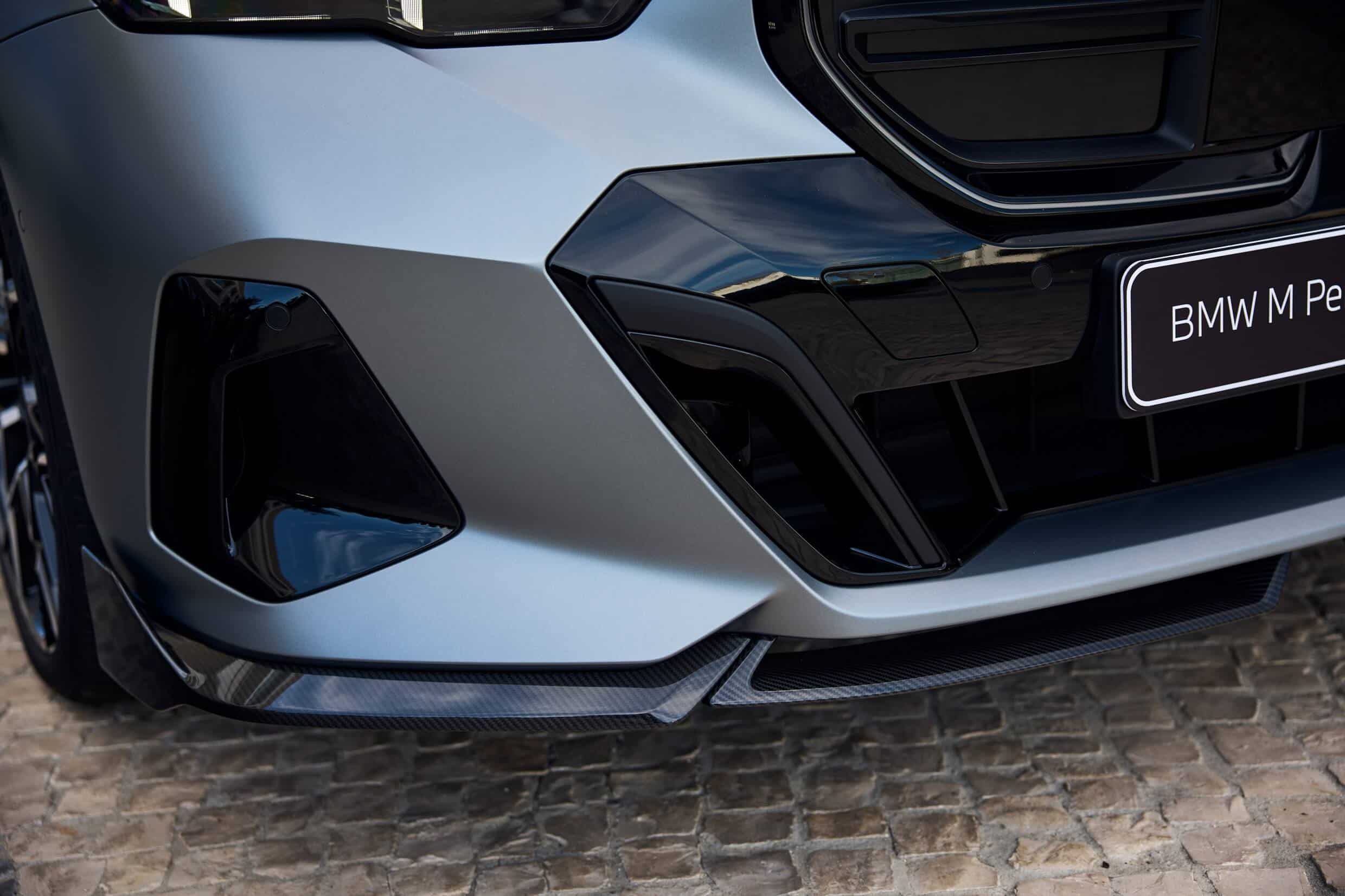 From the wheels with M-branded valve caps to the carbon fiber shark fin antenna, this 2023 BMW i5 M60 is filled to the brim with goodies from the MPP catalog. It looks as though windshield and rear glass stickers are still a thing in 2023, and this sporty electric sedan goes the extra mile with body decals on the sides of the car.