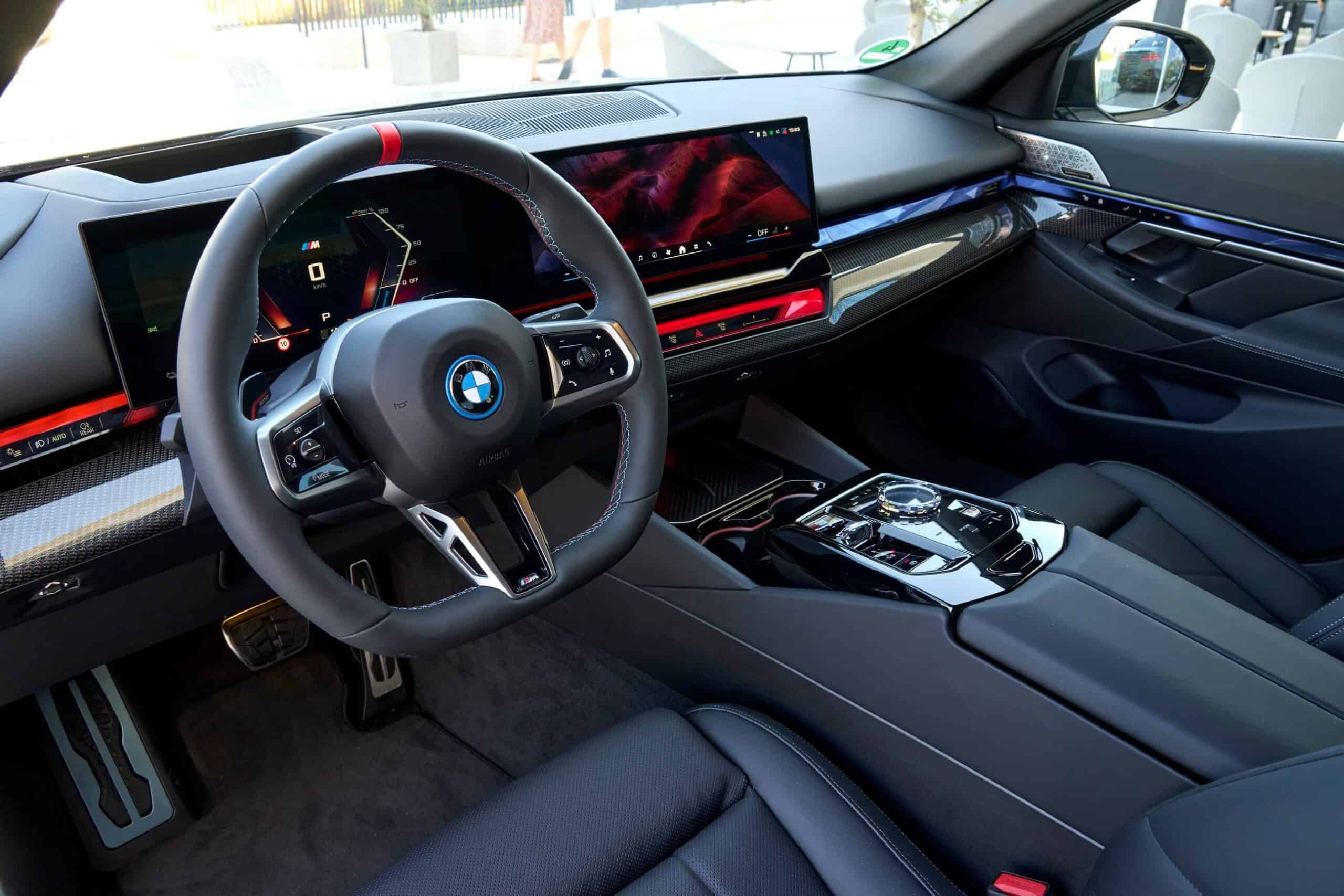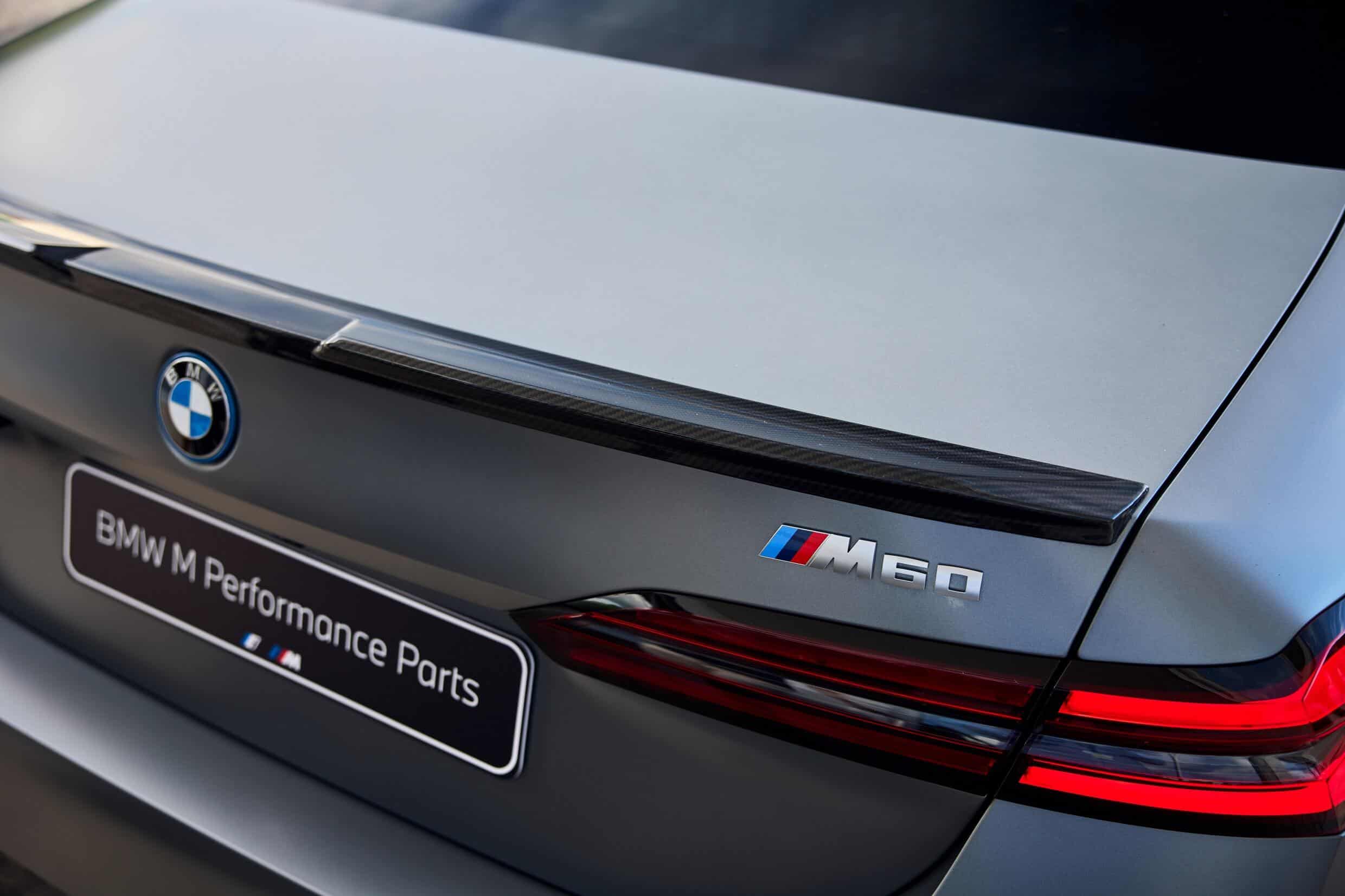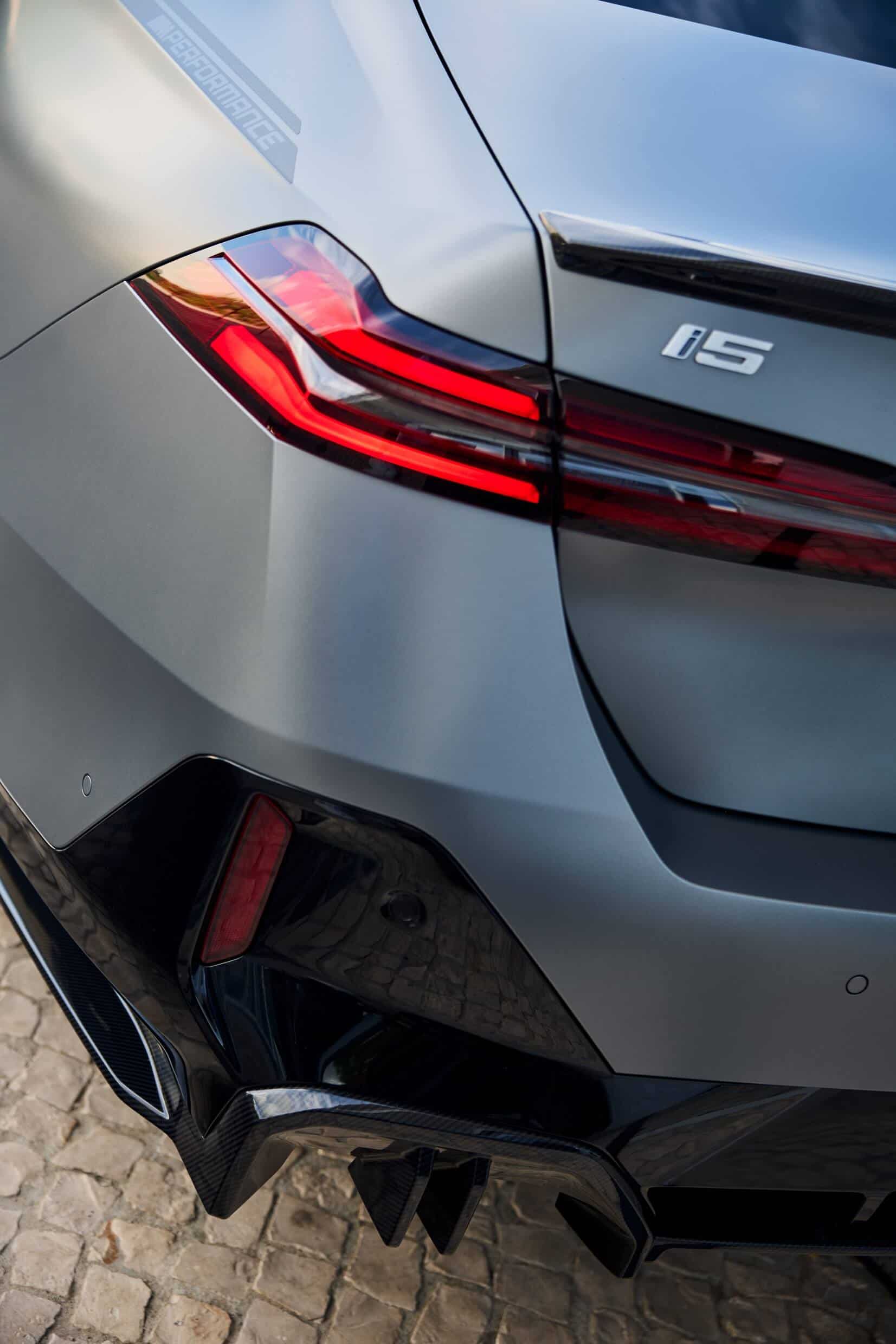 Eagle-eyed readers will notice two different wheel designs along with numerous carbon fiber upgrades such as the split front spoiler lip, side skirts, and rear diffuser. All these extras do give the i5 M60 a meaner attitude and mimic some of the ferociousness BMW is saving up for the full-fat M5 coming in 2024. The range-topping vehicle will go a step further with its wider hips and a quad exhaust system.