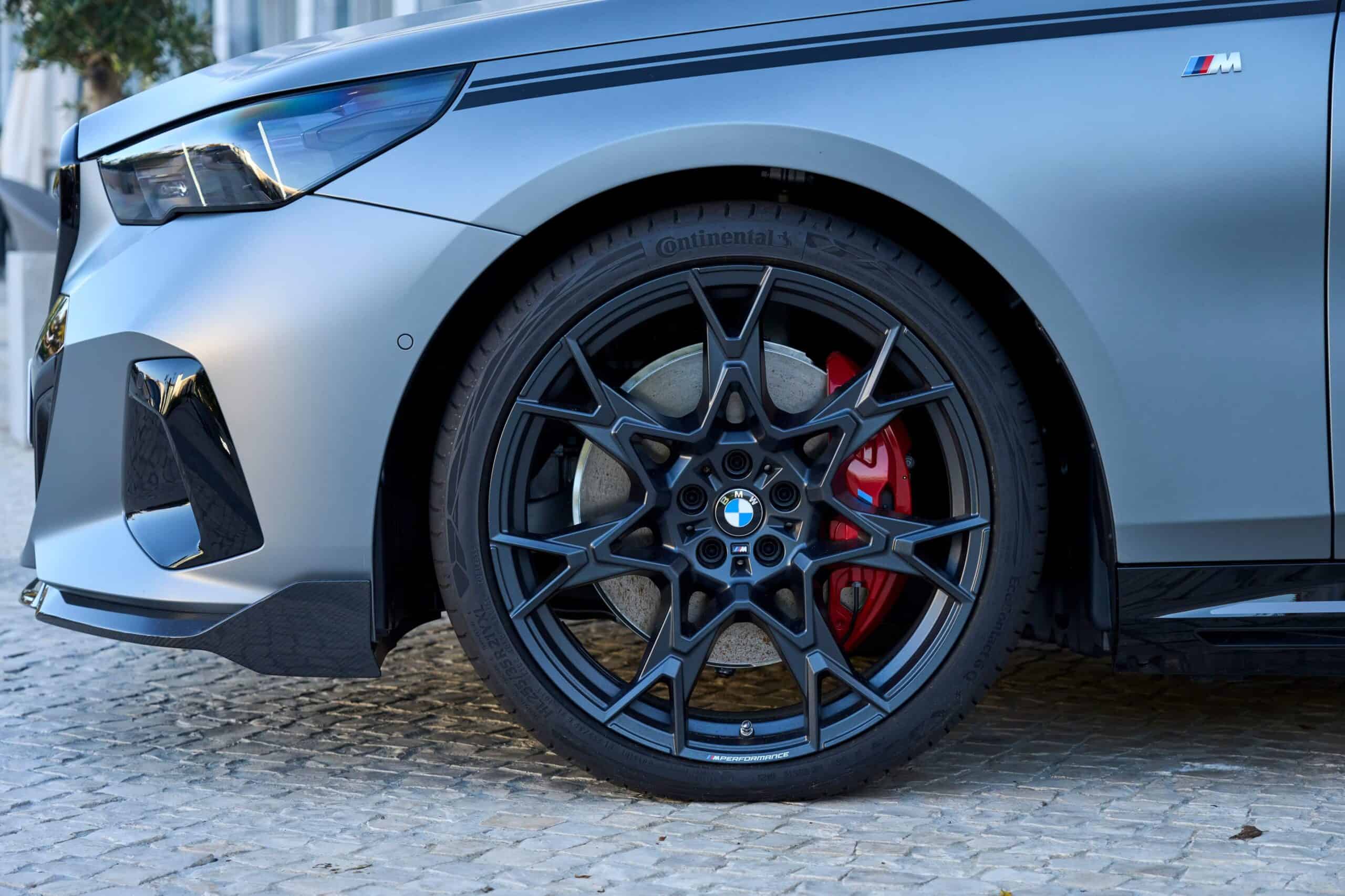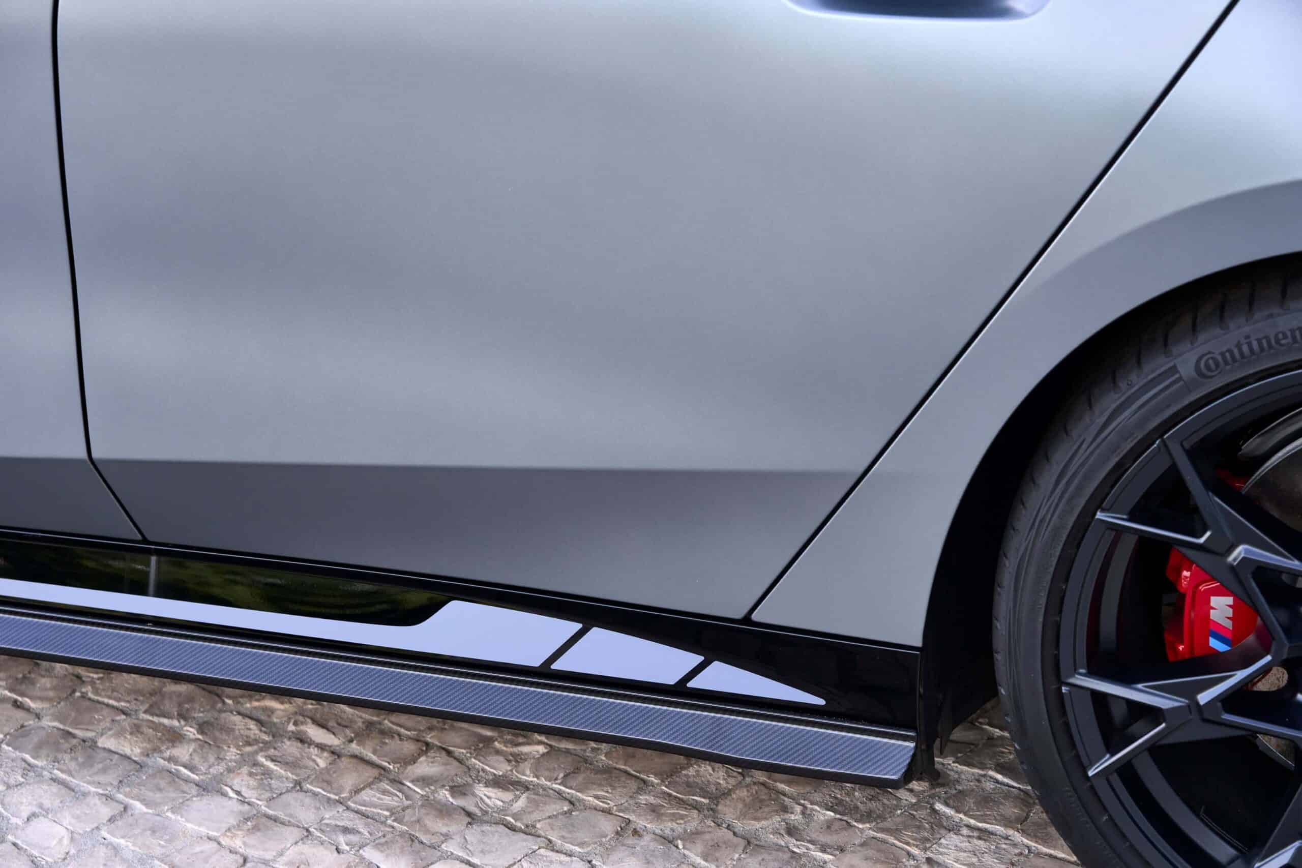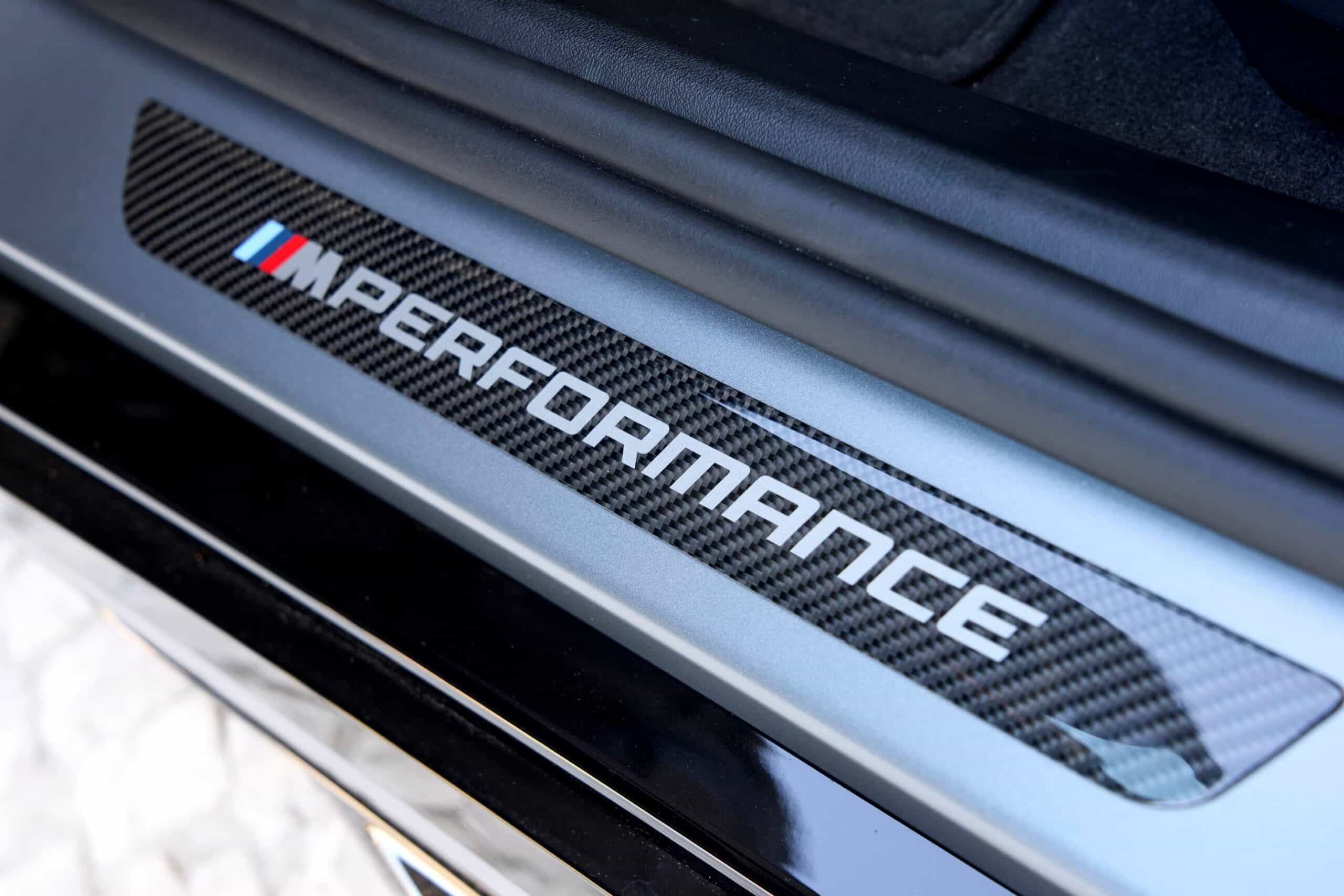 Open the doors and you’ll be greeted by carbon fiber side sills with M Performance lettering, a flat-bottomed steering wheel with the M logo, and a carbon dashboard trim. As for the upholstery, no animals were harmed since BMW wrapped the seats in vegan perforated leather (Veganza). By the way, the eighth-generation 5 Series is the company’s first car to offer a truly vegan cabin.