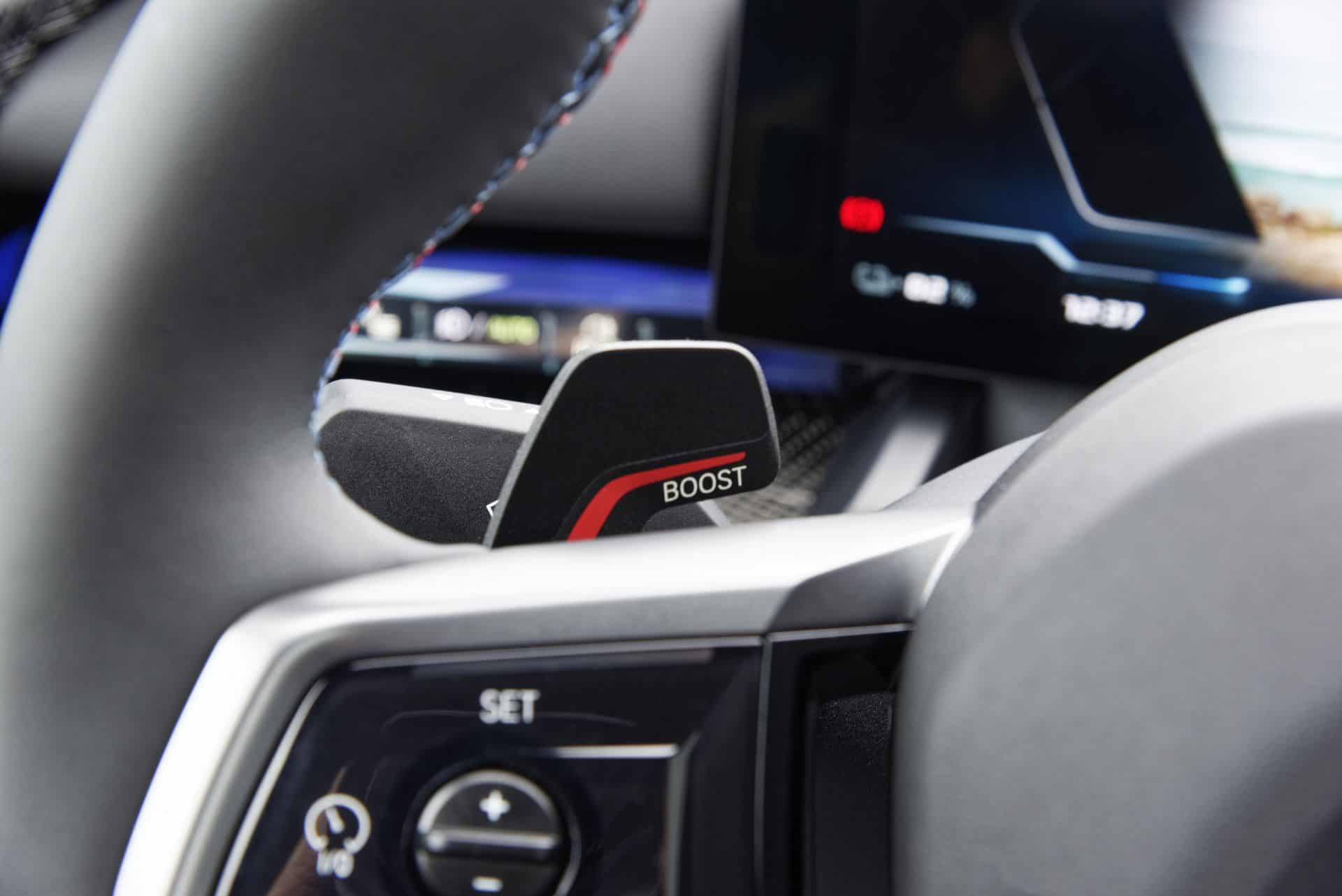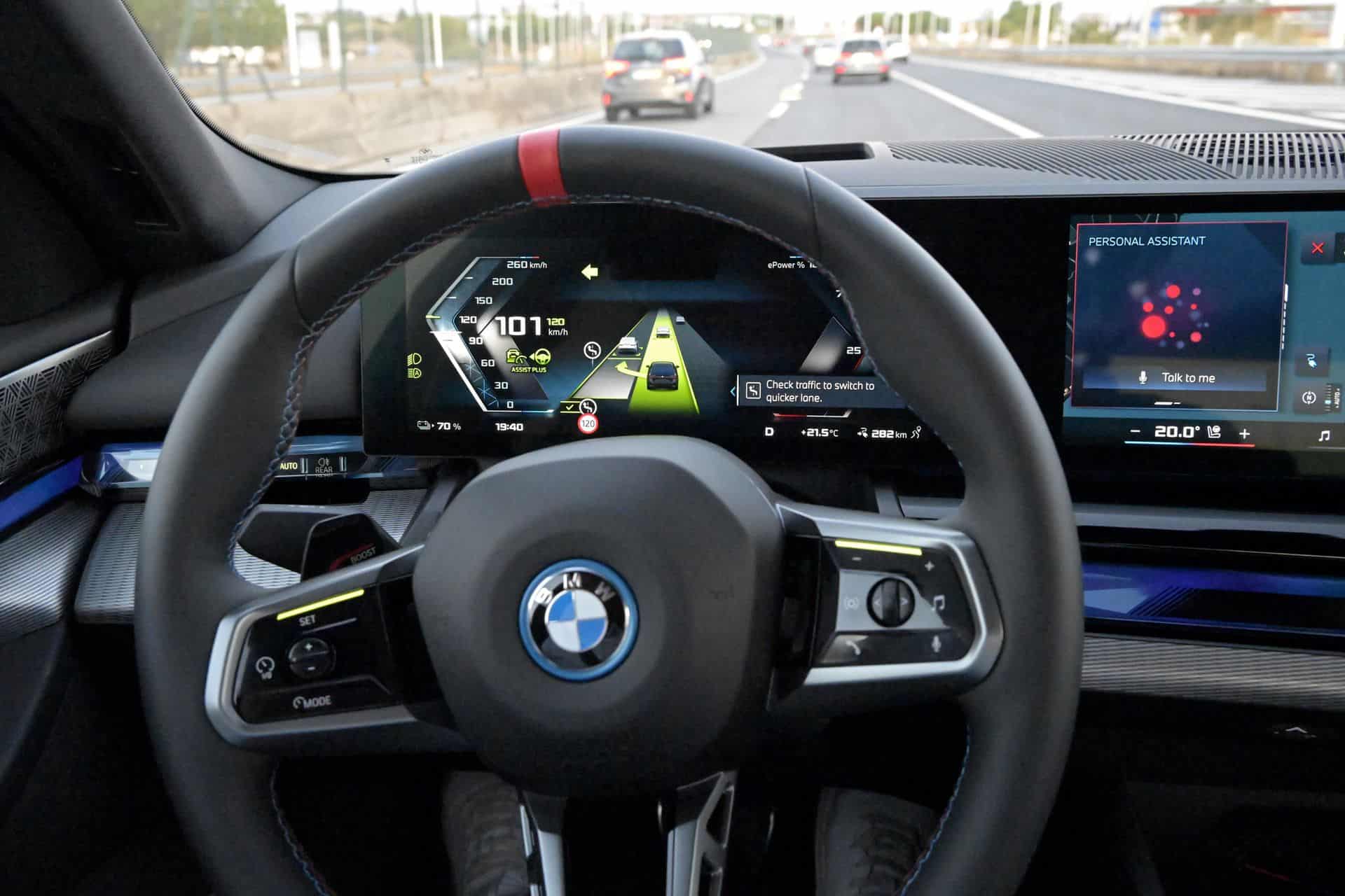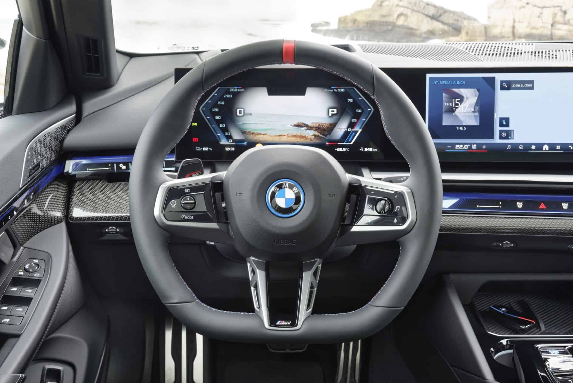 A standout feature of the i5 is its standard rear axle steering, allowing the rear wheels to turn up to 2.5 degrees in the opposite direction at low speeds, enhancing agility. This feature continues to benefit the car’s driving dynamics at higher speeds, while also increasing the agility of the car in city centers.