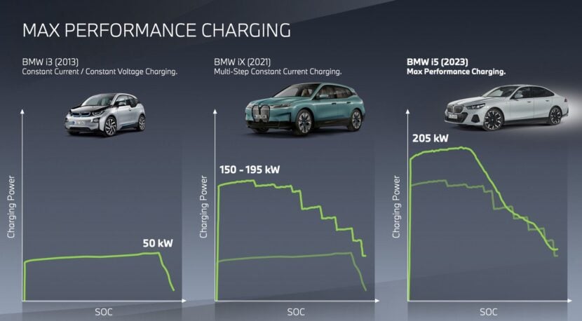 This is particularly beneficial for drivers who need to charge their car quickly, such as on a long road trip. For example, if you plug in your i5 with a 50% SoC, you can expect to charge at a rate of over 205 kW for several minutes. This is why BMW said you can snack charge for 10 minutes and get 156 km of range (WLTP).