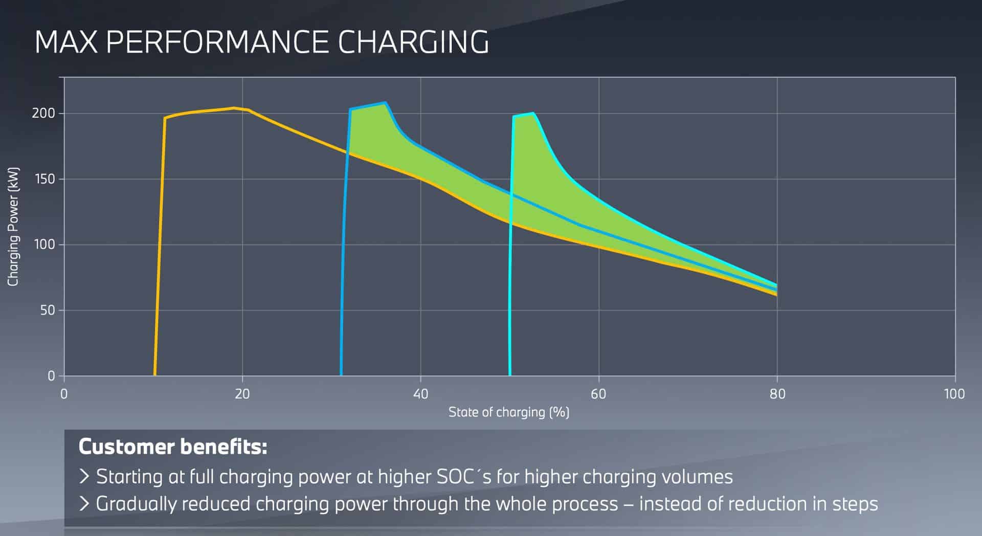 There are some changes to the curve. The BMW i5 charge curve is a significant improvement over the stepped curve in the iX. One of the most notable benefits of the smooth curve is that it allows the i5 to start charging at full power at higher states of charge (SoC). This is because the battery’s resistance increases as it charges, so reducing the charging power at higher SoC levels helps to prevent overheating. However, the smooth curve allows the i5 to gradually reduce charging power over time instead of in steps, which means that it can still charge at a relatively high rate even at higher SoC levels.