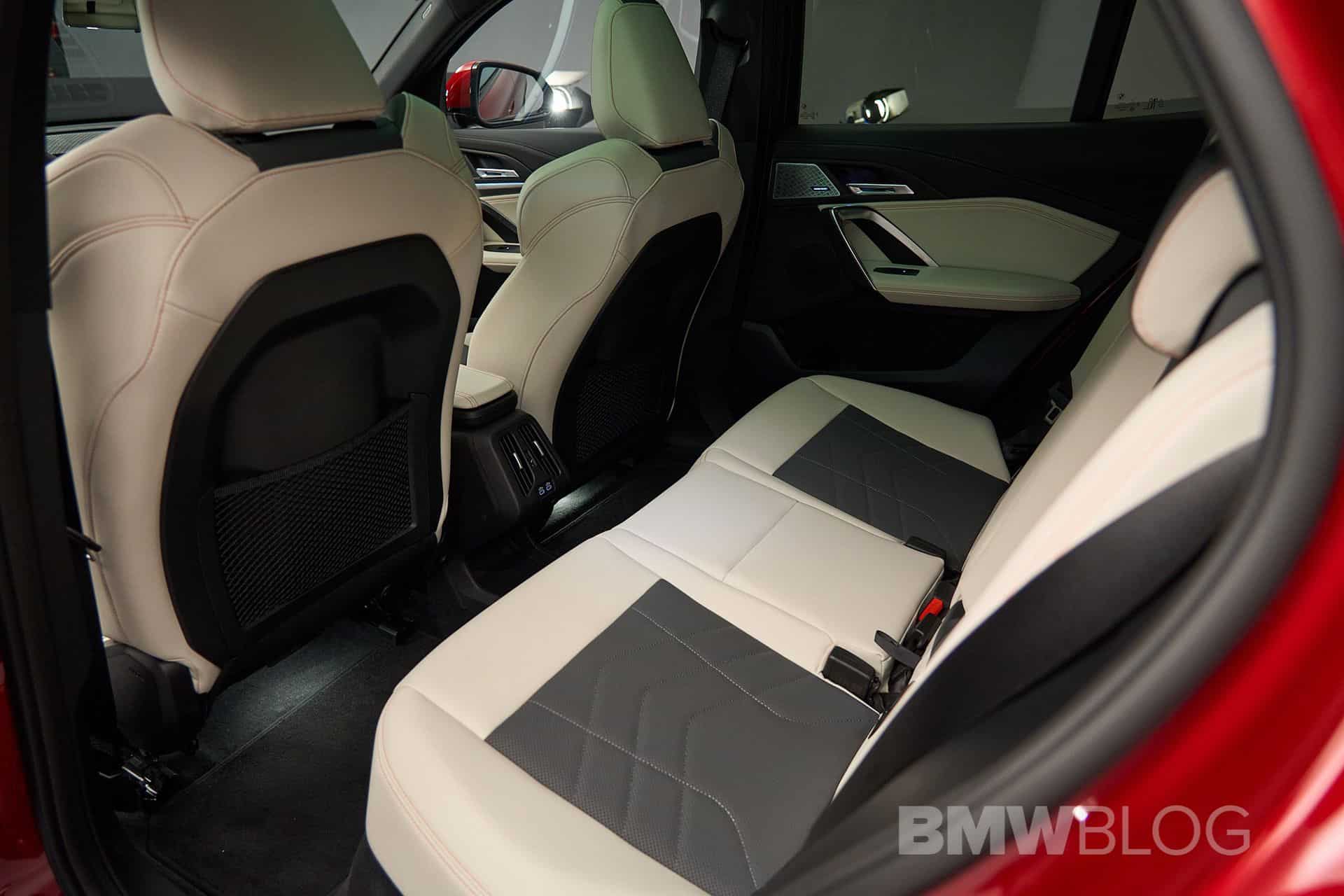 Interior space has also seen improvements, offering more knee room, elbow room, and notably, headroom compared to the outgoing F39 X2. However, it’s important to note that opting for the electric variant with its substantial battery involves a compromise in practicality, as cargo capacity decreases to 525 liters with the rear seats in place, expanding to 1,400 liters with the 40:20:40-split rear bench folded down. In contrast, the regular X2 offers 560 and 1,470 liters of cargo space, respectively. The default seat material in the iX2 is vegan, with the option to choose leather.