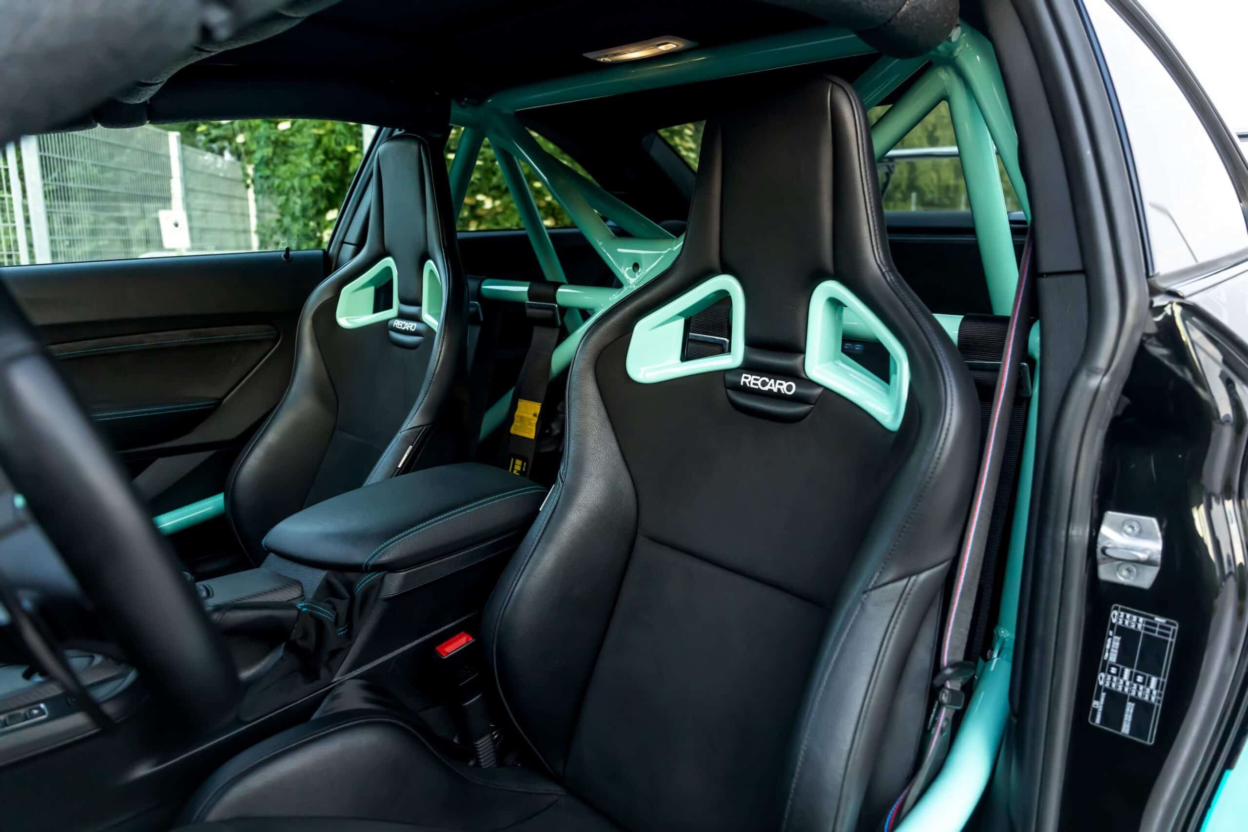 Stepping inside, the BMW M2 Competition modified by Manhart boasts Recaro Sportster CS bucket seats with a roll cage finished in mint green to complement the exterior details. An Awron auxiliary display has replaced the central air vent on the driver’s side while a rear inscription where the bench used to be denotes it’s a one-of-one project.