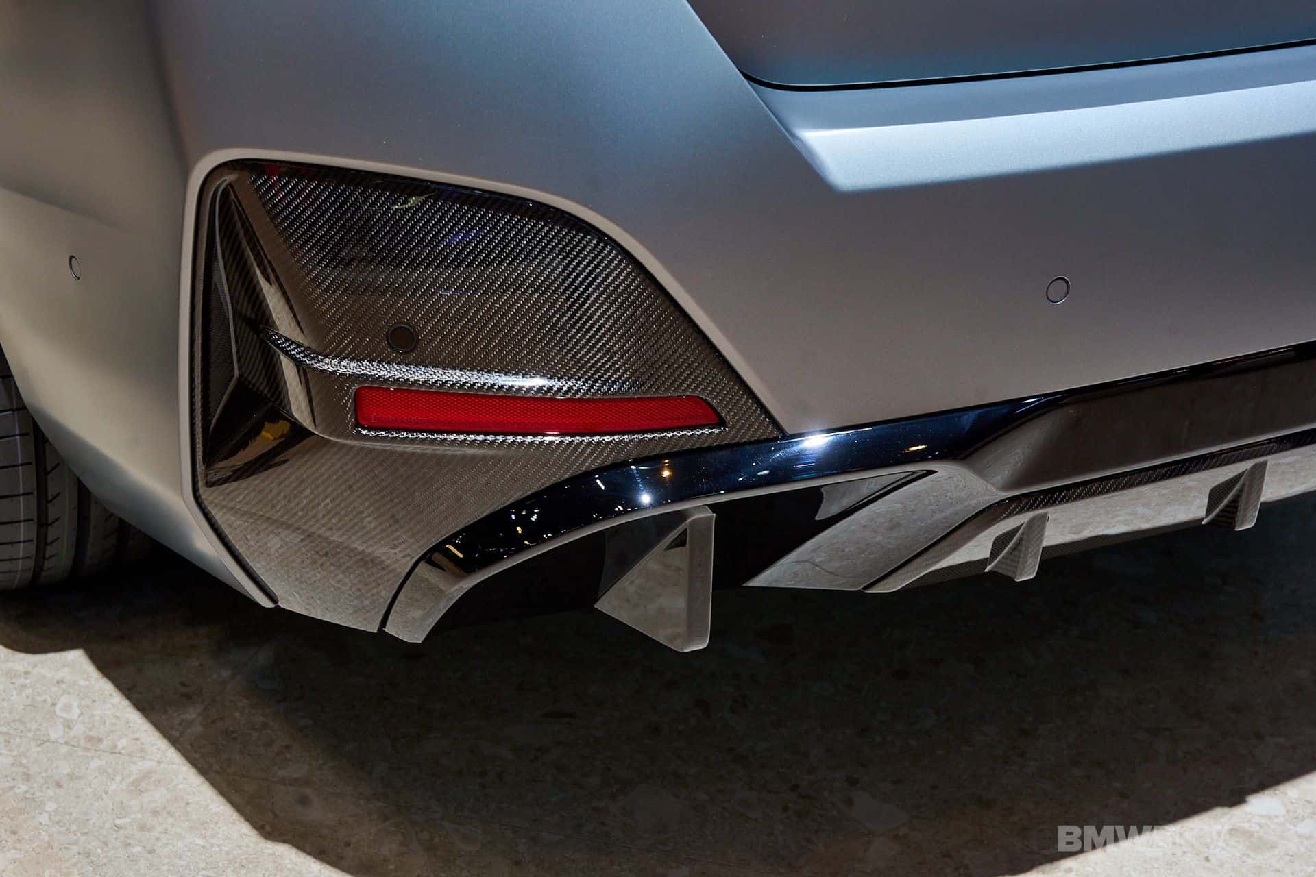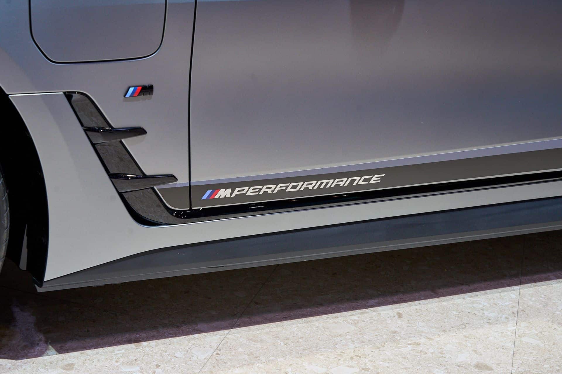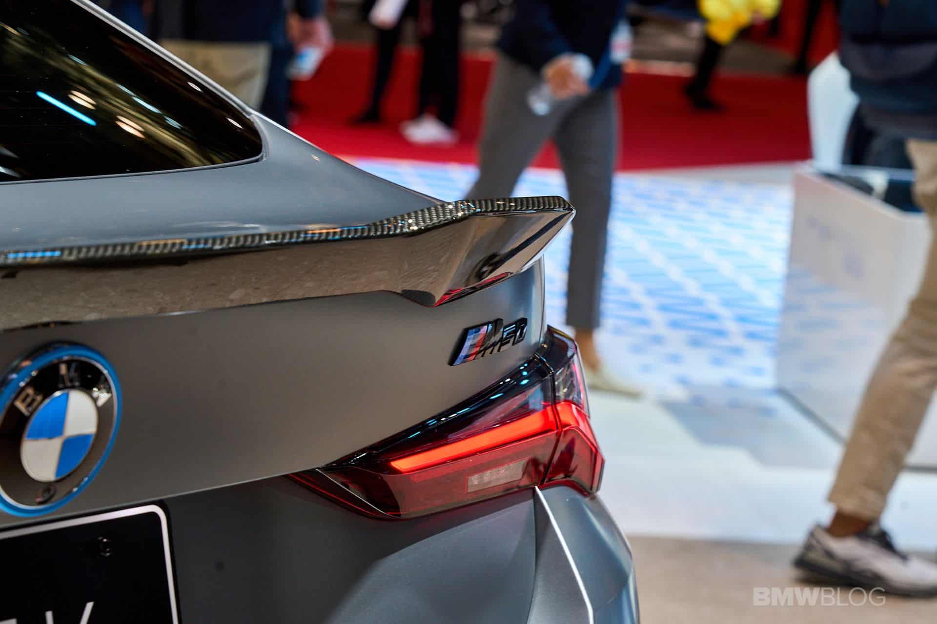 BMWBLOG is attending the show held at the Big Sight exhibition center in the Land of the Rising Sun and we couldn’t pass up the opportunity to revisit the i4 M50. It’s painted in Frozen Pure Grey, a pricey matte color from the Individual catalog, which has been combined here with blacked-out rear badges. The sporty five-door liftback has a large tailgate spoiler that’ll cost you extra, as will the diffuser and carbon fiber accents in the corners of the rear bumper.