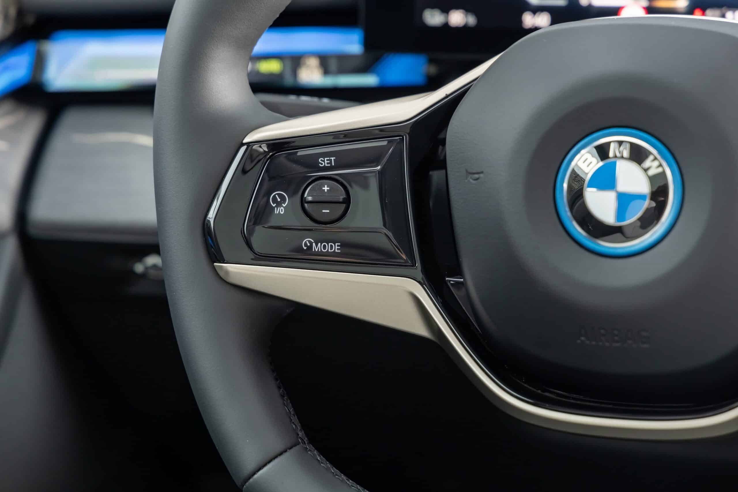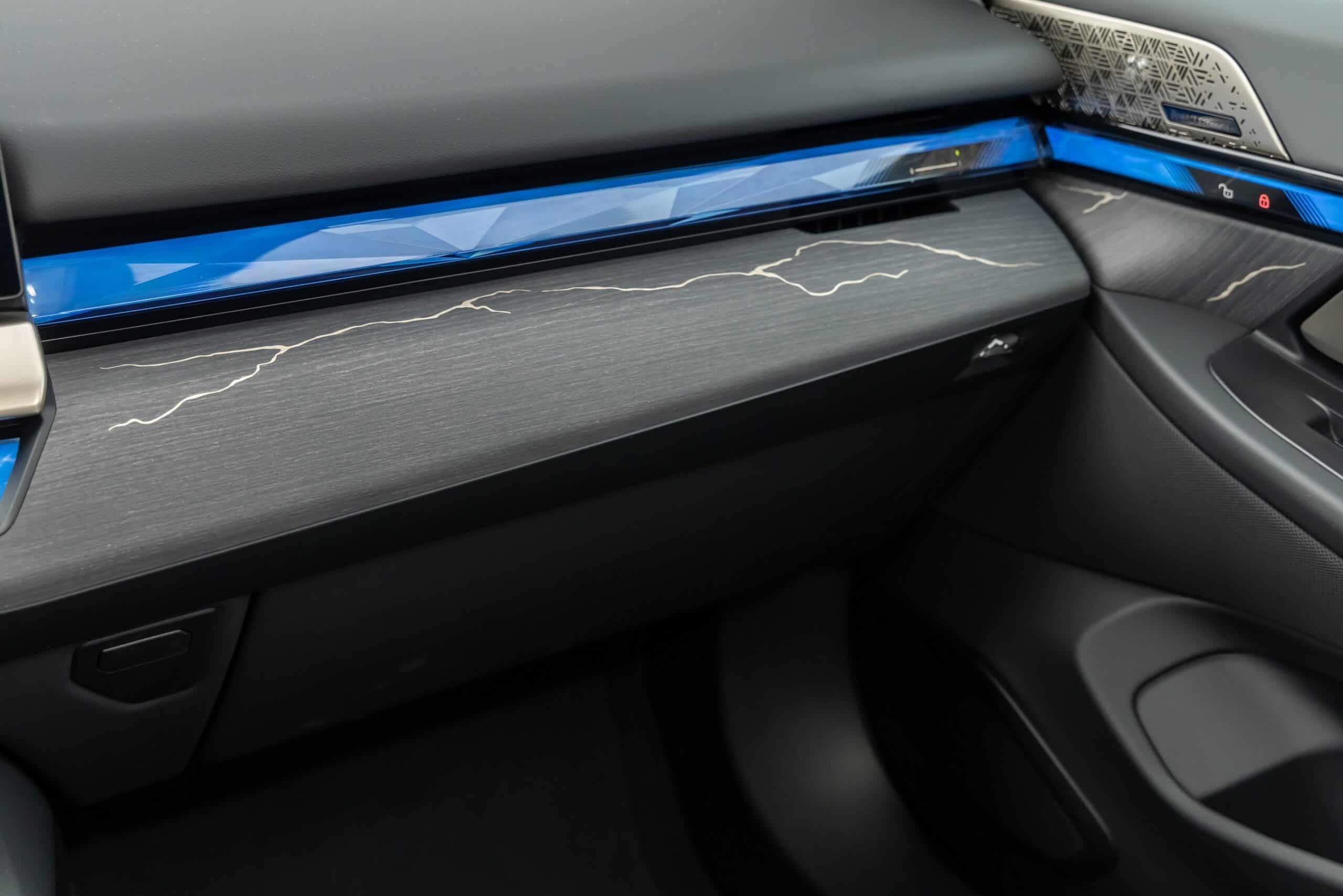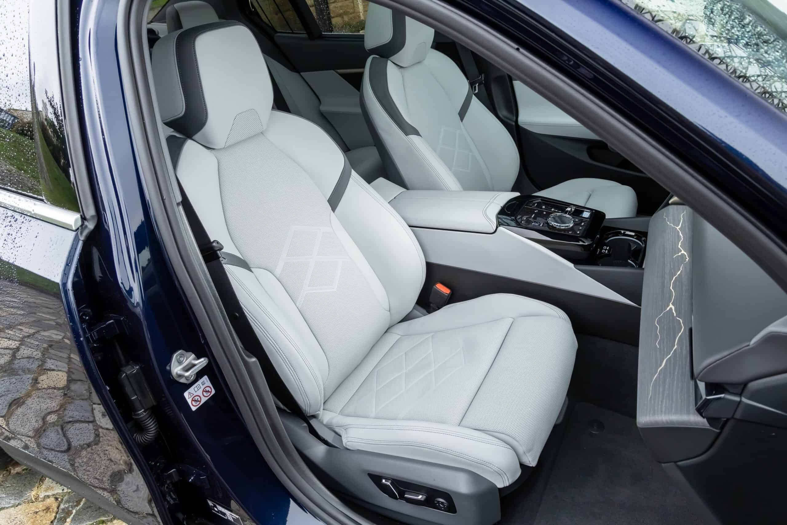 It’s a more attainable variant of the zero-emissions 5 Series since it’s not the high-performance M60. In fact, this i5 doesn’t even have the M Sport Package. That’s not to say it’s a basic car since it has been painted in Tanzanite Blue Metallic, an optional color from the Individual catalog. In addition, those 20-inch aero wheels with a two-tone finish are also going to cost you extra. Stepping inside, the Merino leather upholstery in Silverstone Gray with Atlas Grey accents is a pricey option.