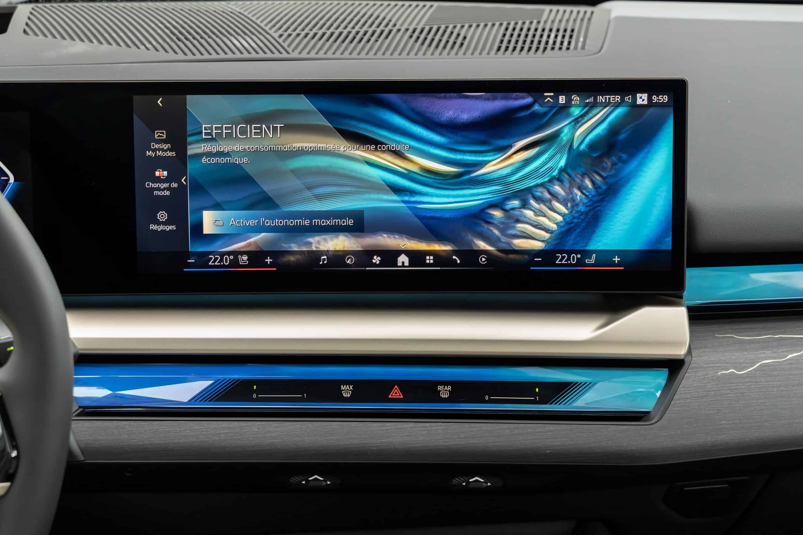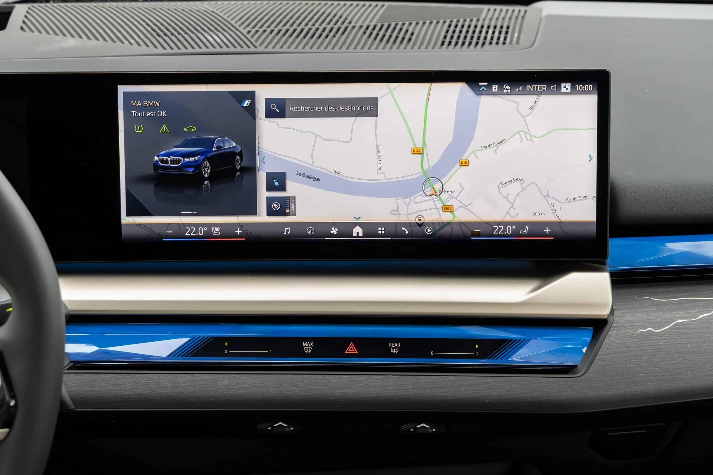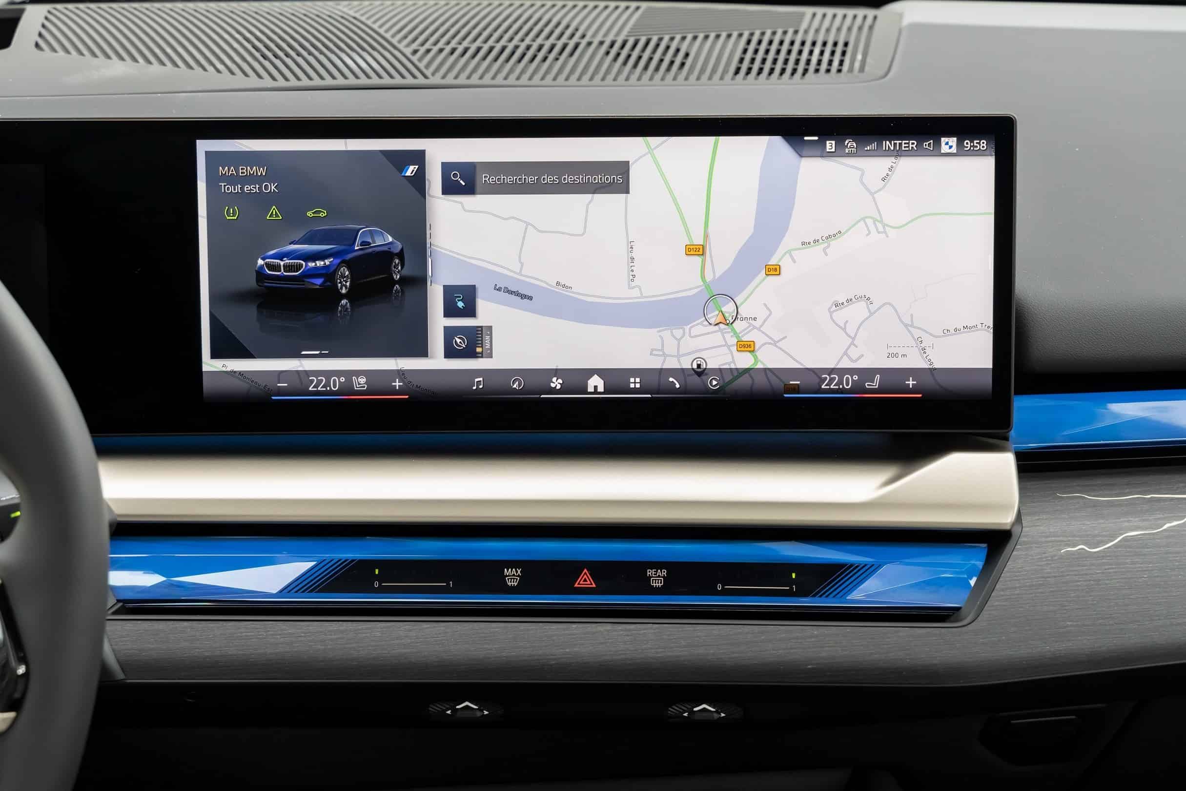 It’s a more attainable variant of the zero-emissions 5 Series since it’s not the high-performance M60. In fact, this i5 doesn’t even have the M Sport Package. That’s not to say it’s a basic car since it has been painted in Tanzanite Blue Metallic, an optional color from the Individual catalog. In addition, those 20-inch aero wheels with a two-tone finish are also going to cost you extra. Stepping inside, the Merino leather upholstery in Silverstone Gray with Atlas Grey accents is a pricey option.