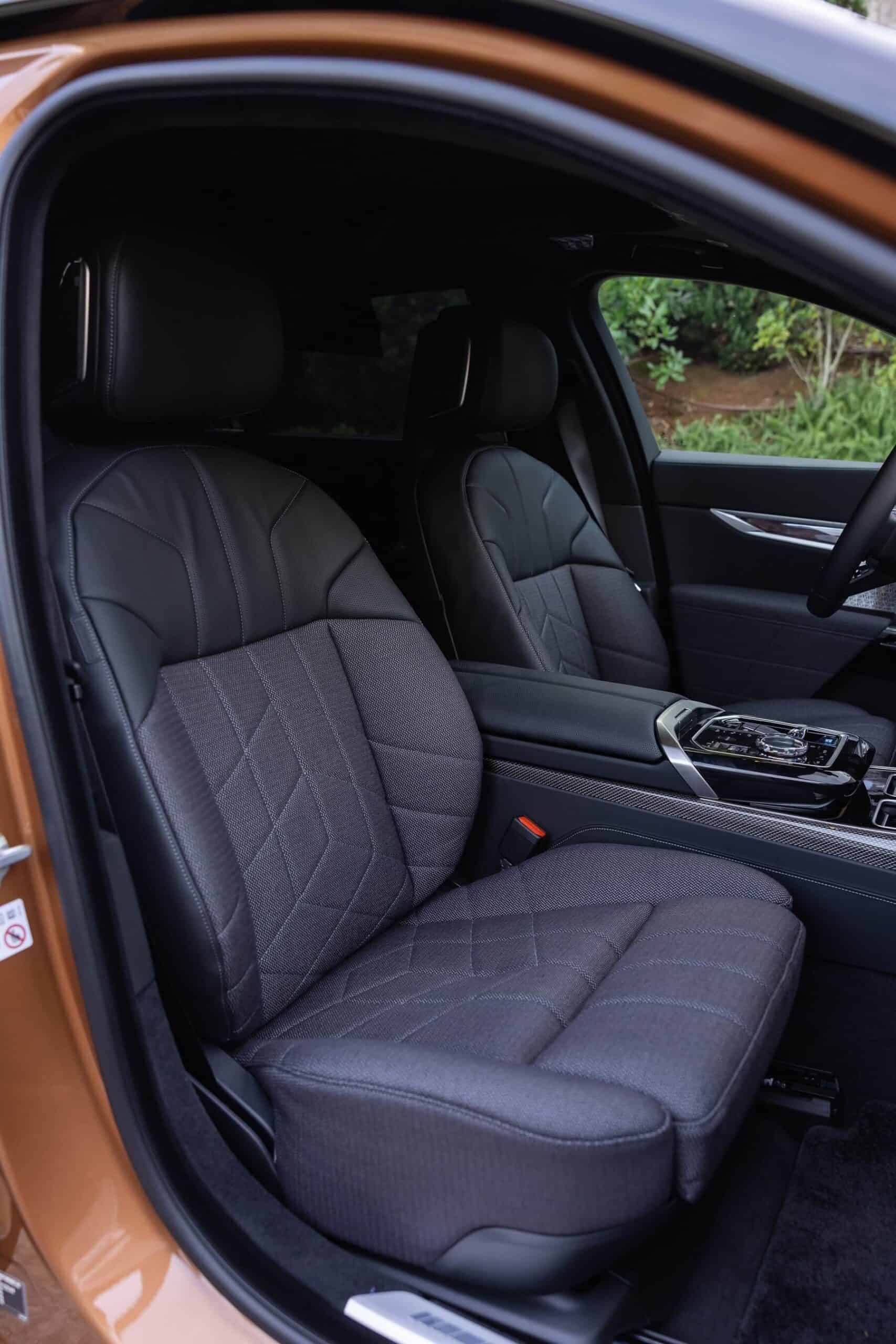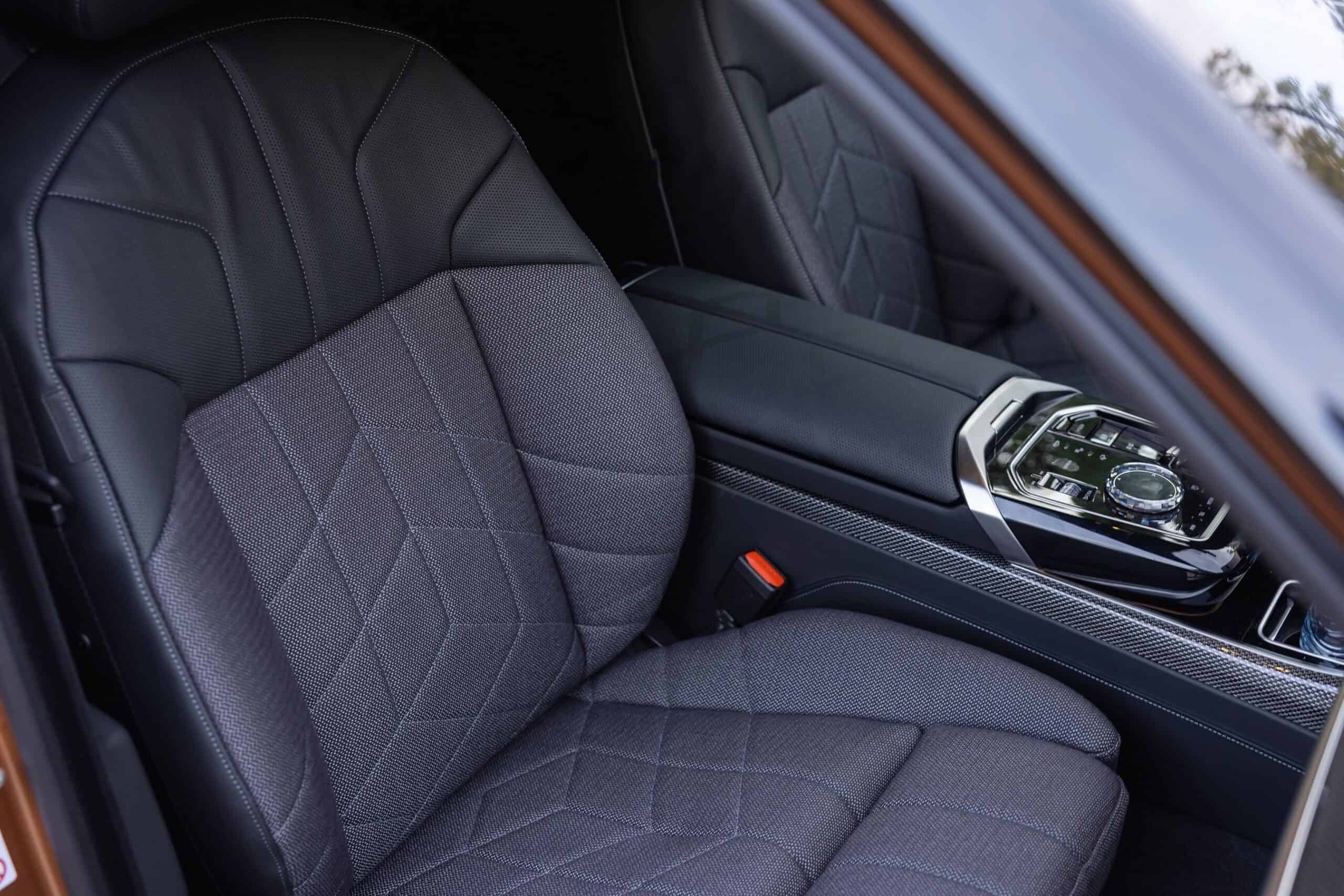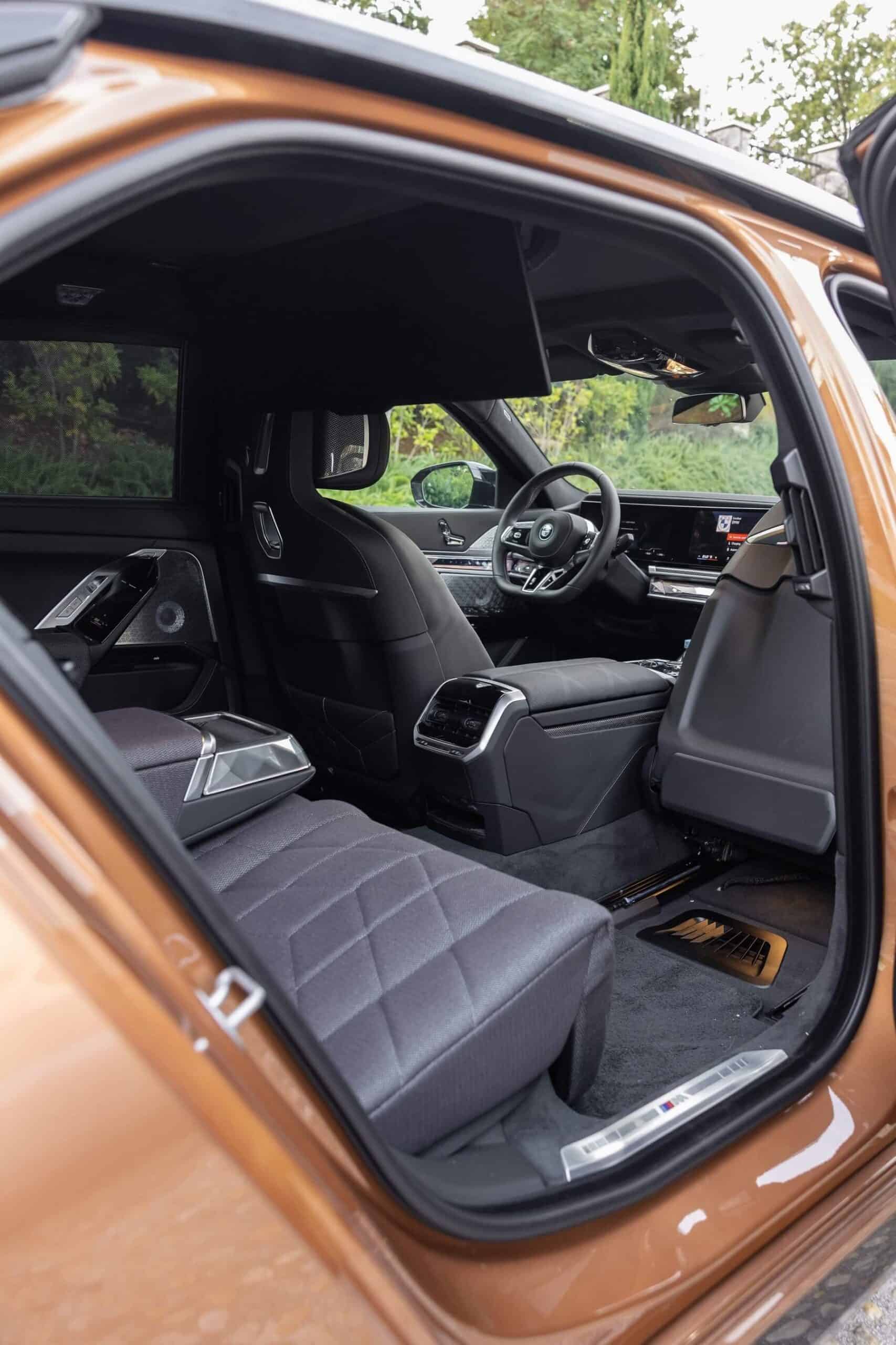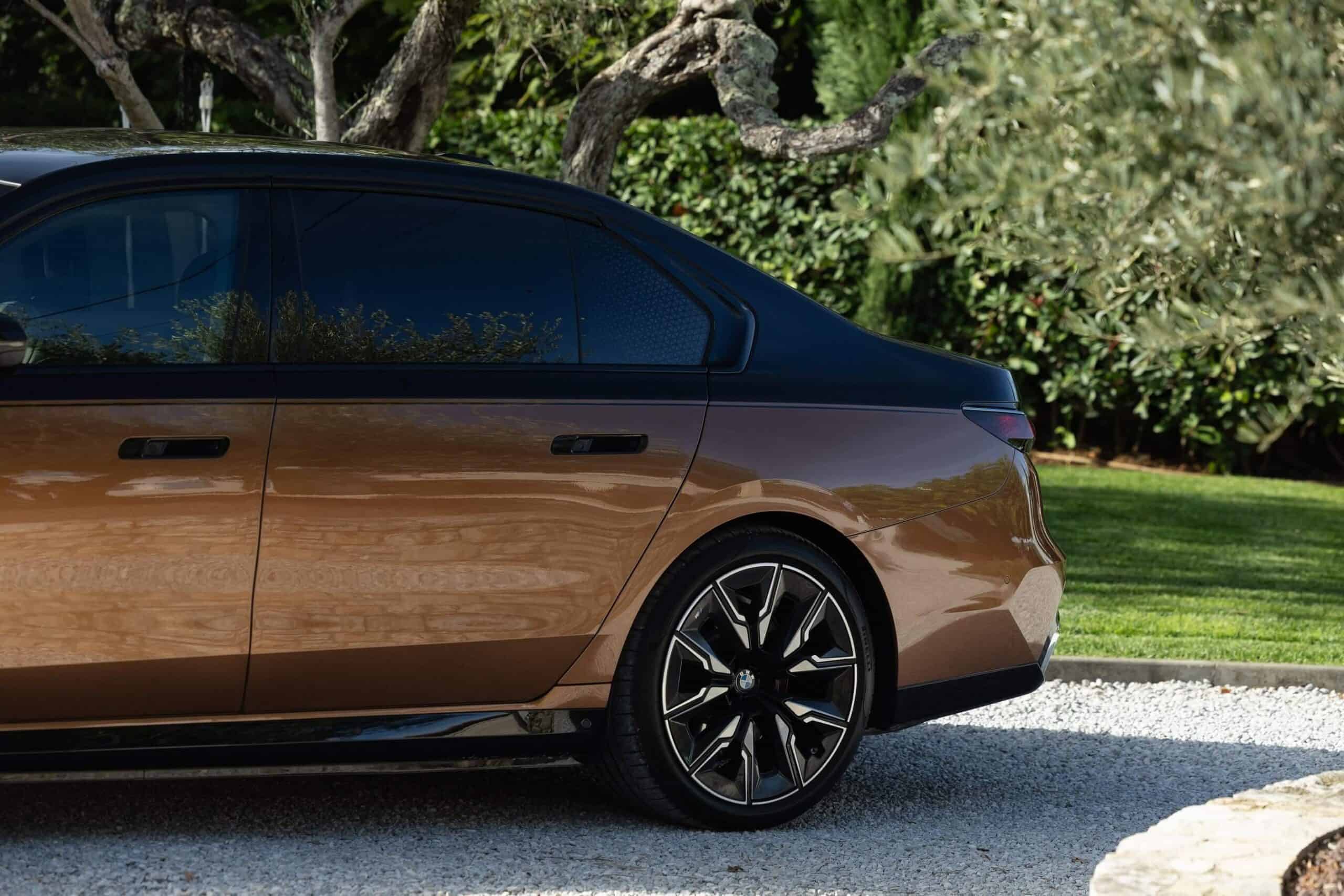 The i7 M70 is among the most expensive BMWs money can buy, right up there with the XM Label Red. It starts at $168,500 in the United States but what you’re seeing here is not a standard car. With the G70 generation, the 7 Series is finally available with a two-tone paint as a regular production model rather than a limited-run special edition. This is perhaps the most striking combo you can have, Liquid Copper with Sapphire Black, all for a cool $12,000.
