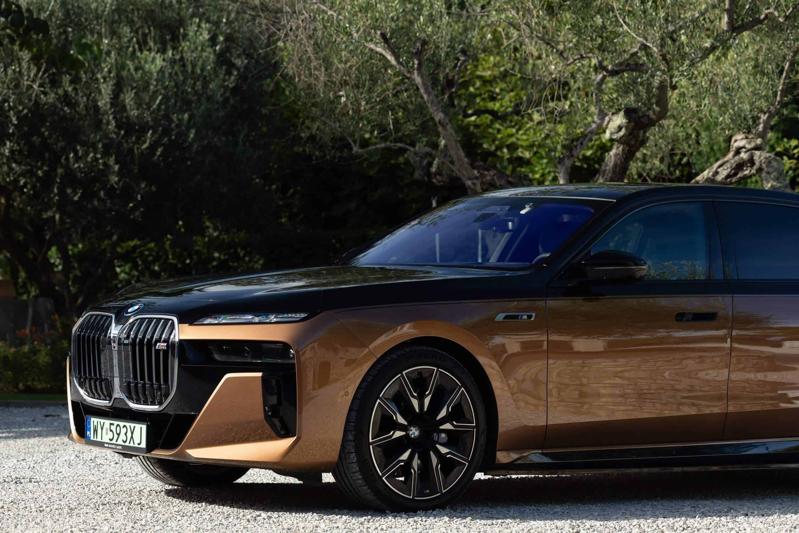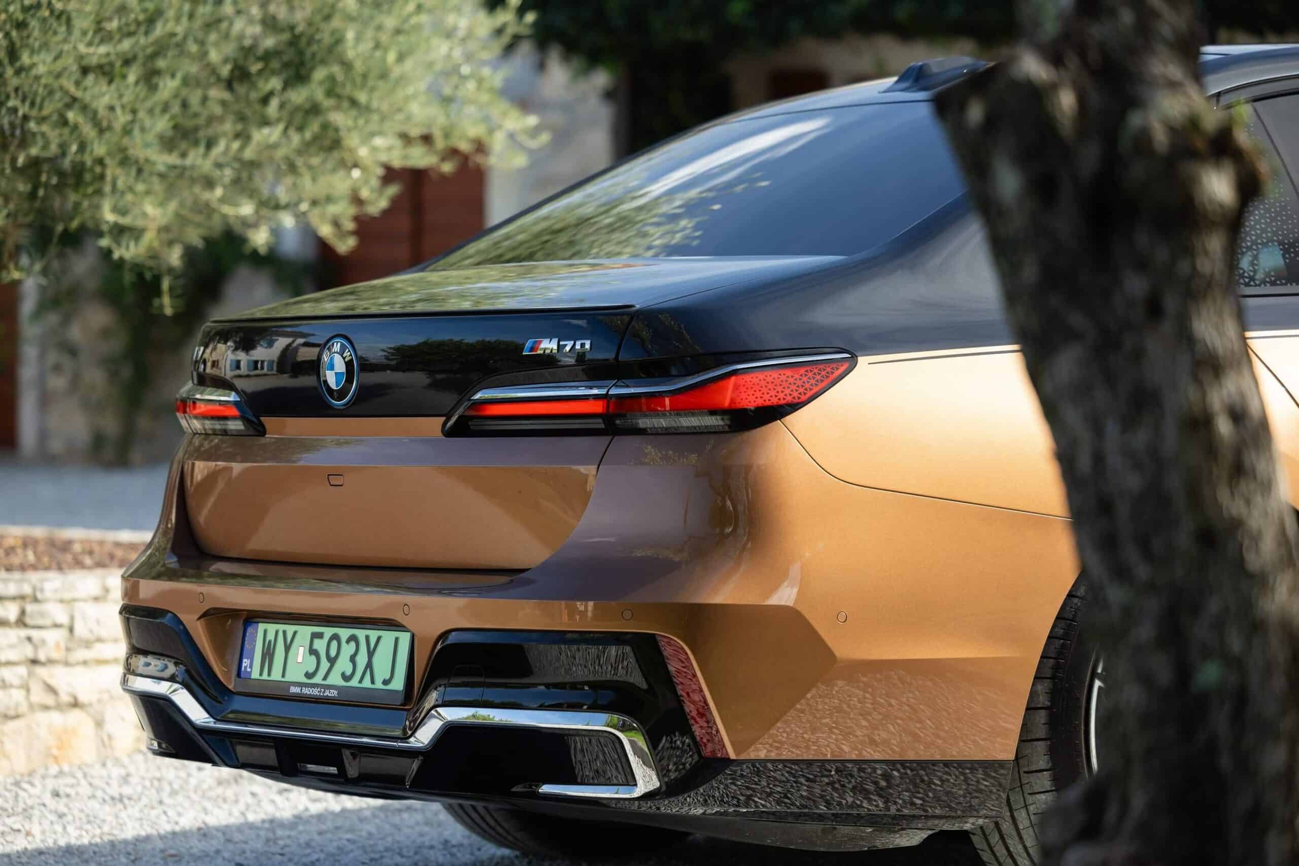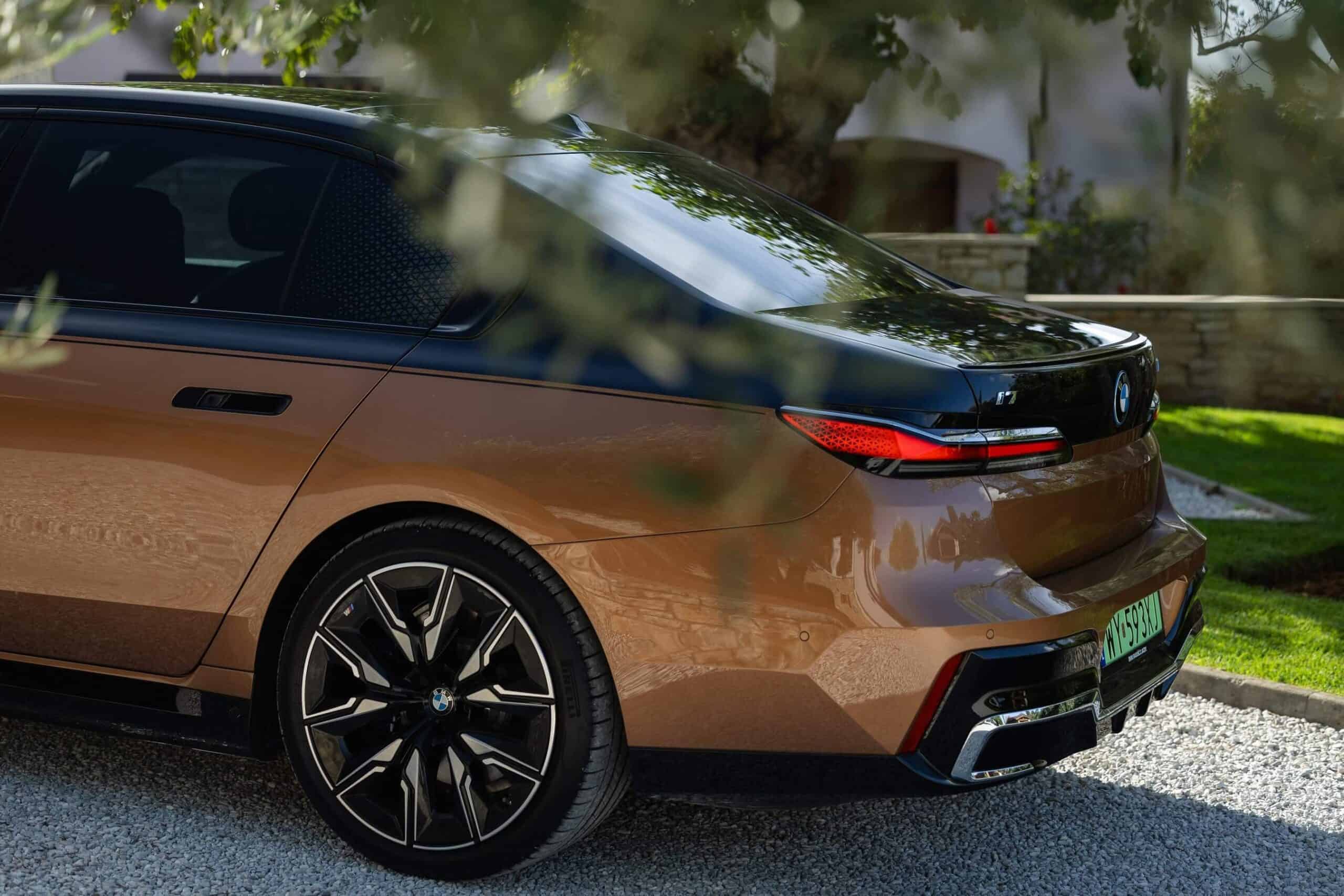 BMW Slovenia organized an event to mark the local launch of the i7 M70 in Istria, the largest peninsula within the Adriatic Sea. They decided to do it in style with a high-end version of an already pricey car. It rides on one of the many optional 21-inch wheels, flaunting an M logo because you apparently can never have too many of those. The electric luxobarge is missing the black accents, so it retains the metallic accents for the kidney grille frame and the inserts in the rear bumper.