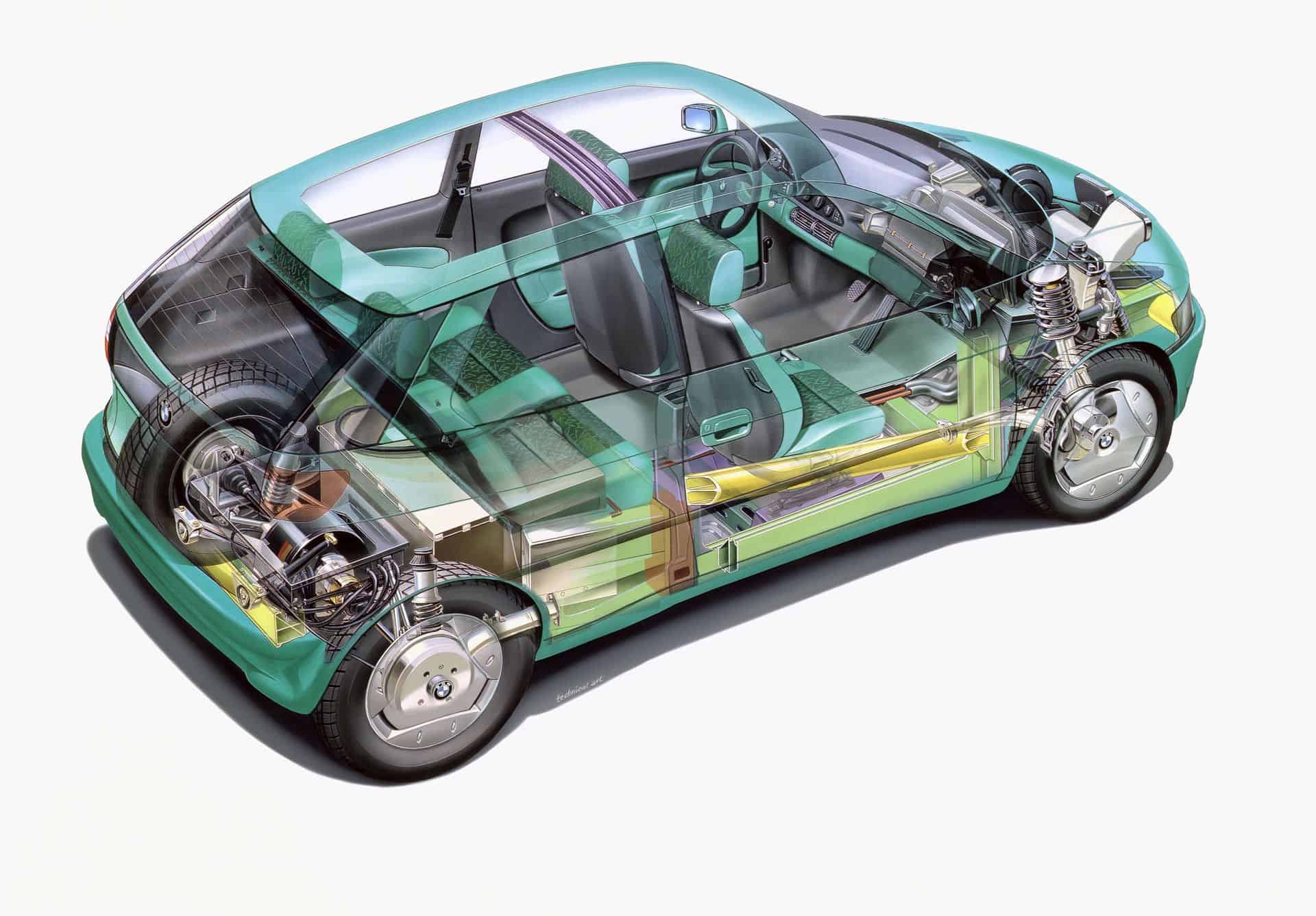 With the 1991 BMW E1 electric concept, the manufacturer presented a viable battery-powered city car with decent charging performance and a usable range. Its 19 kWh sodium nickel chloride battery pack gave the car a claimed range of 160 km (99 miles), and it could be fully recharged from a typical European wall outlet in around 6 hours.