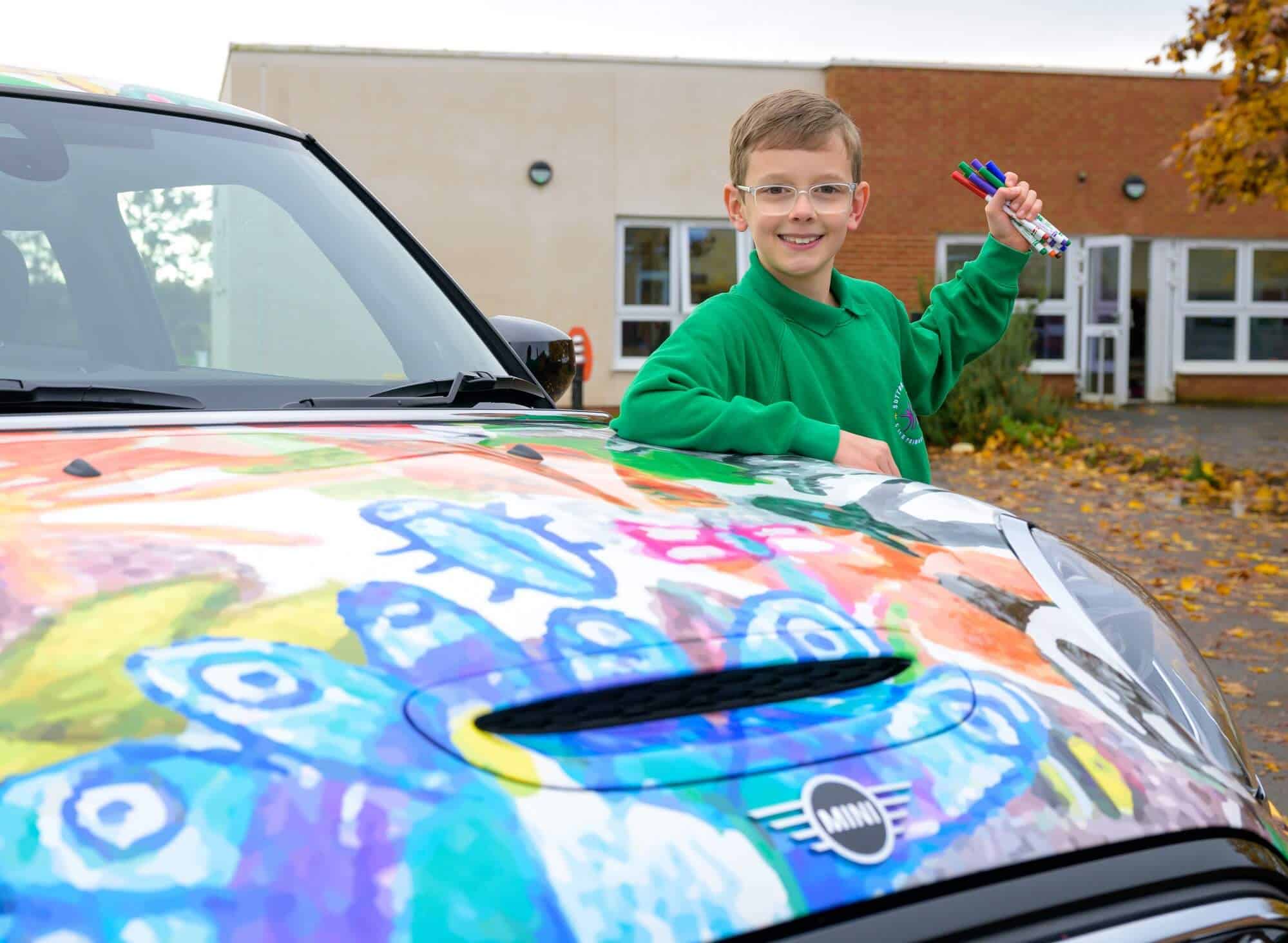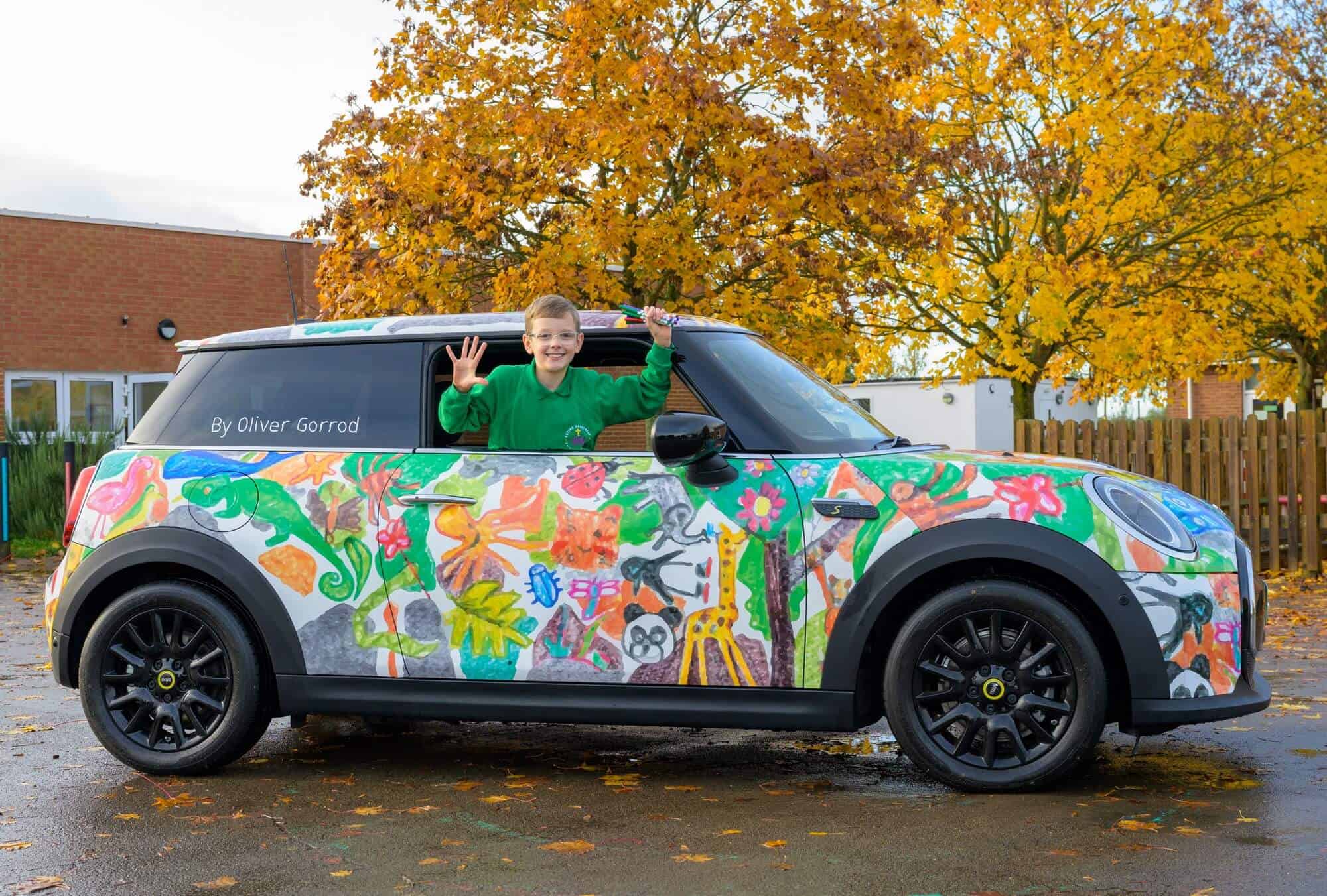 The winner of the “MINI Minds… with Crayola” competition has now been announced, and his work can be seen on this colorful Cooper SE. Mind you, nine-year-old Oliver Gorrod from Oxfordshire didn’t actually use crayons on this car but rather on a template that has been uploaded as a PDF of MINI UK’s website where it’s still available to download. His drawing has now been transformed into a full body wrap to make an already cheerful car even more fun to look at.