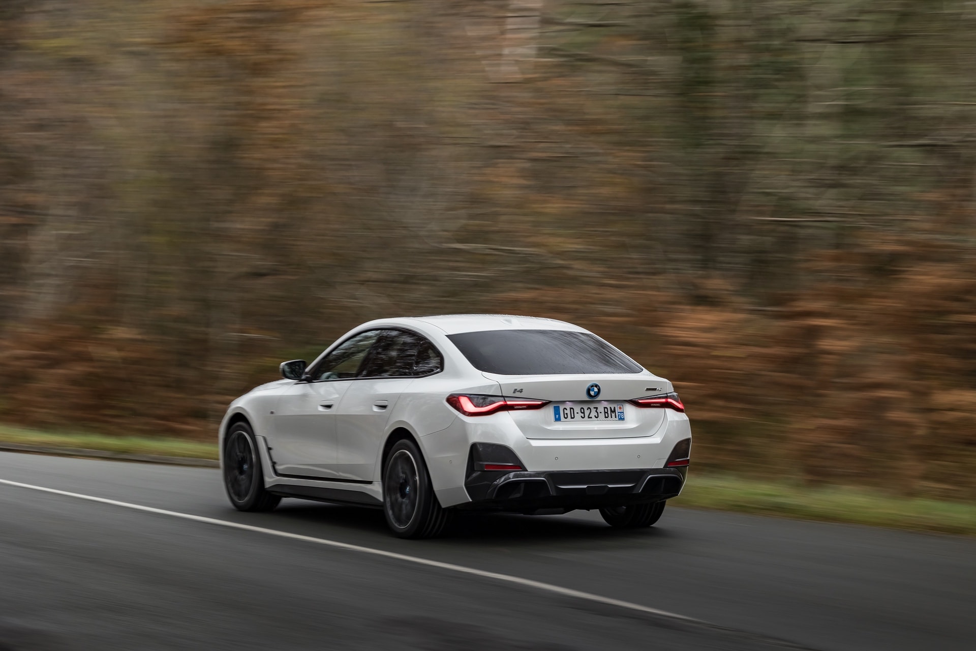 The BMW i4 M50 has an electronically governed top speed of 225 km/h (140 mph).