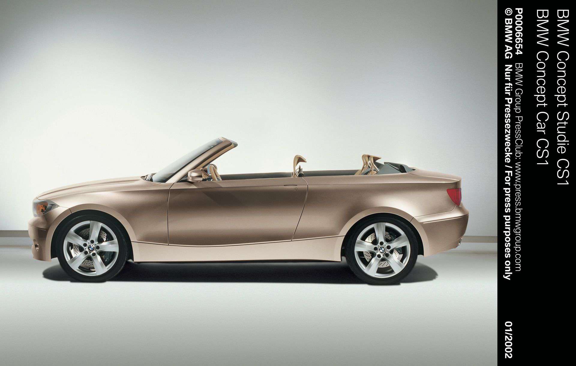 The next Bangle-era concept, the 2002 BMW CS1 Concept, directly previewed a series model, the E87 1 Series. The study showed a small two-door convertible, and the shape and proportions remained very similar in the production E88 cabriolet, whose design, front fascia aside, has stood the test of time.