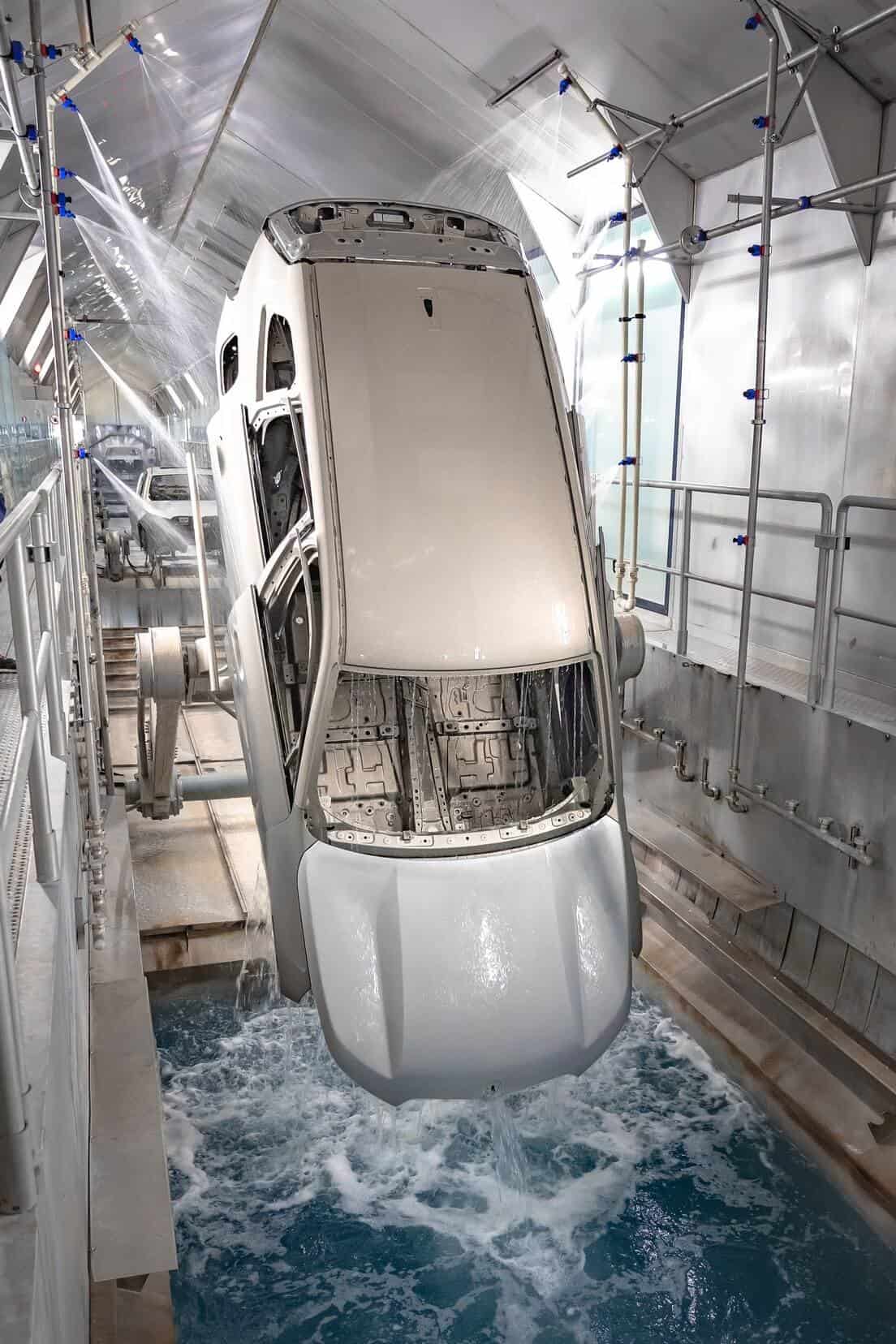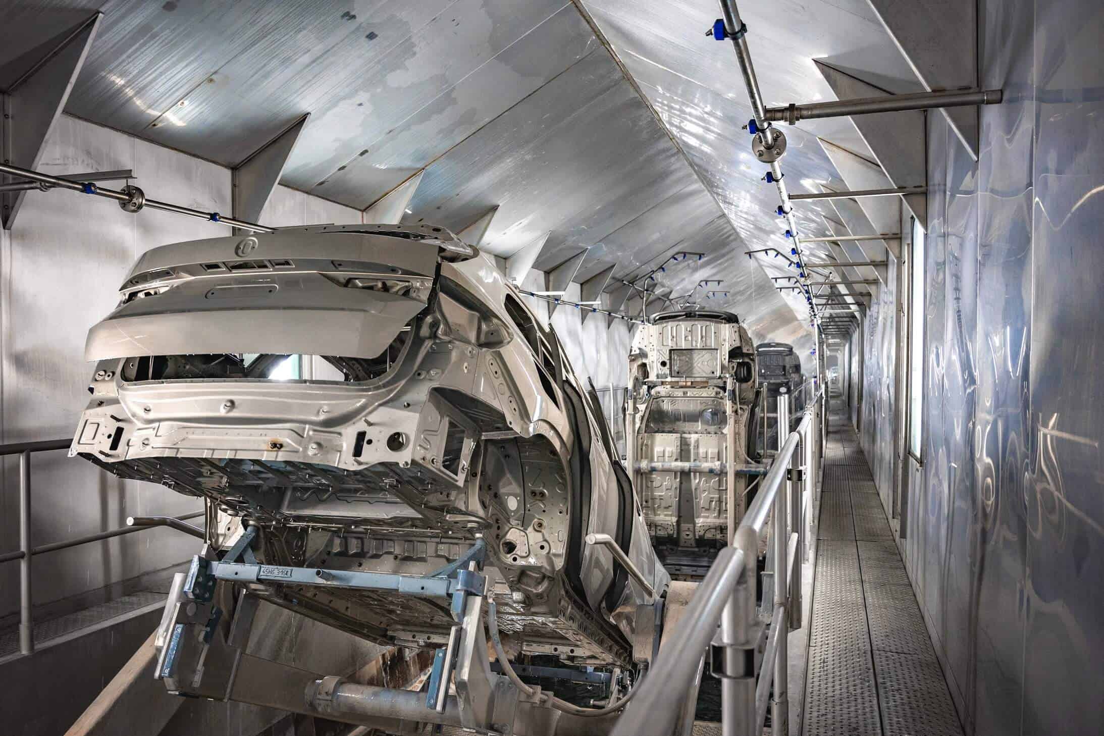 It’s crucial to highlight that the car painting process stands out as the most energy-intensive stage in production, where technology can truly make a difference. How does it work? The dry separation of paint particles utilizes limestone powder as a binder. The paint mist that doesn’t adhere to the car’s body is captured with limestone powder instead of water. Consequently, only 20 percent of the air needs to be heated and humidified.