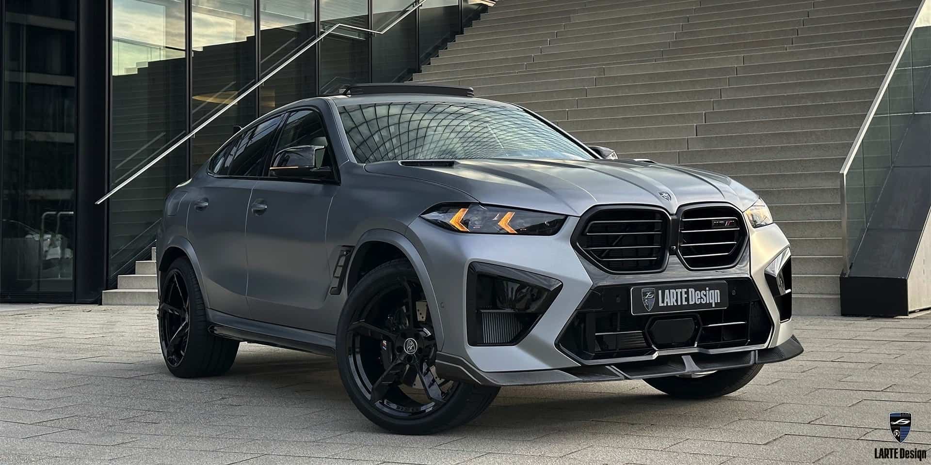 The aftermarket specialist has crafted an aggressive body kit for the sleek SUV, complemented by a quad exhaust system featuring beefy tips. Despite housing a diesel engine, this X6 LCI not only sounds impressive but also boasts a meaner stance to match the power delivered by the inline-six, 3.0-liter unit. Larte Design opted for an all-black finish that extends onto the custom wheels, giving the X6 xDrive30d a sinister look.
