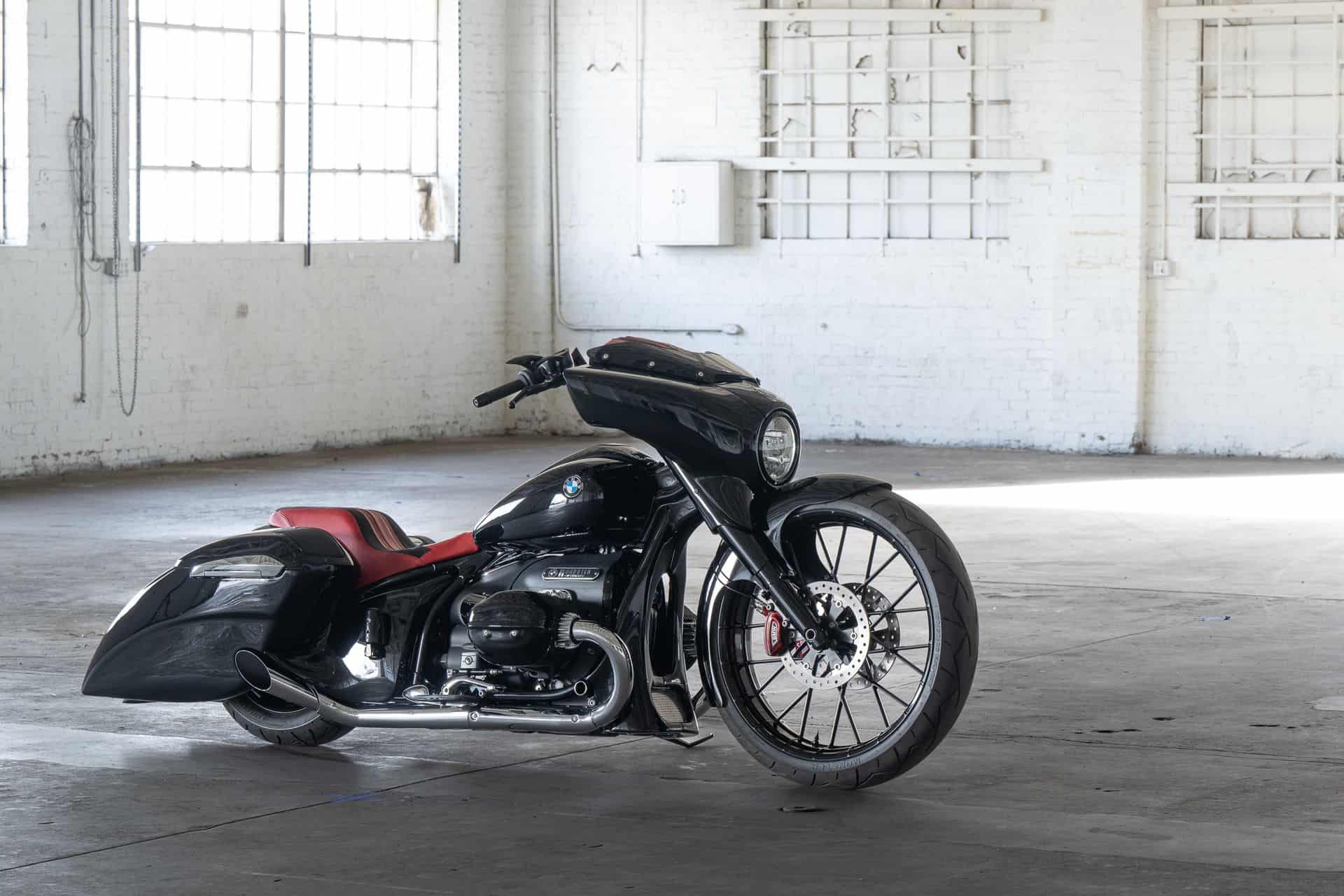 One of the most striking features of the bike is the massive 26-inch front wheel, cut from a solid block of aluminum. The frame was stretched and raked to accommodate the wheel, and custom triple trees were engineered to ensure optimal handling. The bodywork of the bike is equally impressive. Yaffe and his team crafted several one-of-a-kind components, such as the steel front fender and the chin spoiler. They also modified existing R 18 elements, such as the fairing, to flow seamlessly with the new design.