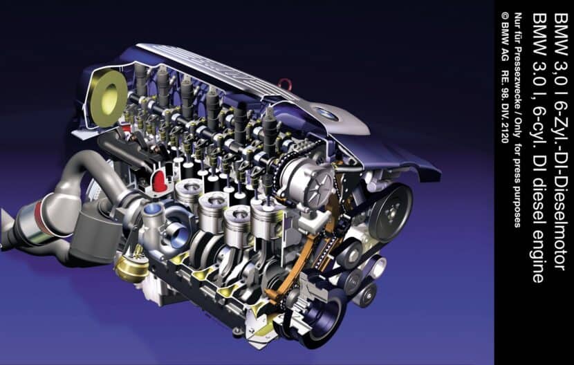 The BMW M57 is a straight-six diesel engine that was introduced in 1998 and has been used in various models of BMW cars and SUVs. The M57 features a common rail injection system and a turbocharger. It was designed to provide a combination of power, efficiency, and durability, and it has seen several updates over the years. It initially made 148 horsepower before it reached its peak at 282 horsepower in 2006.