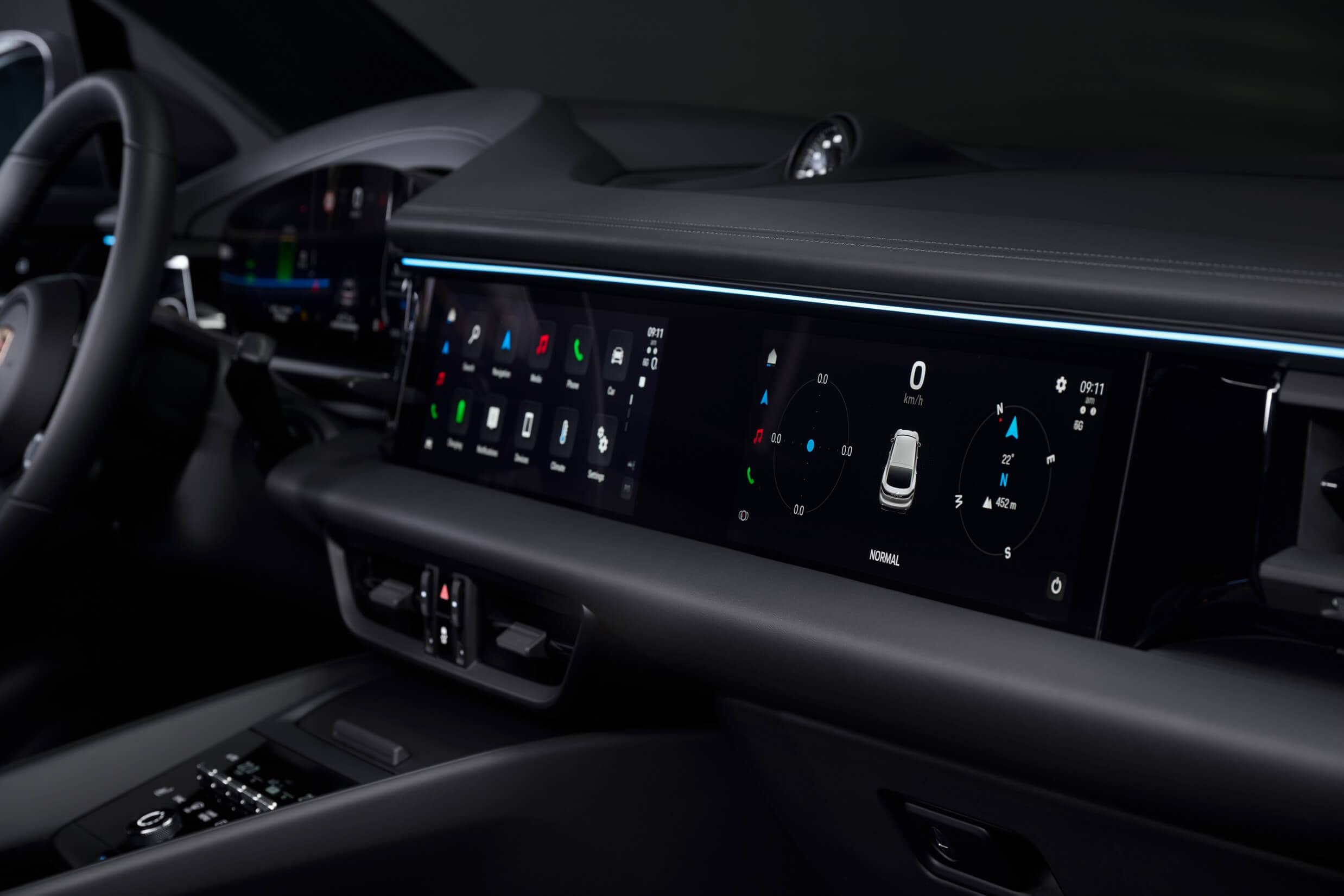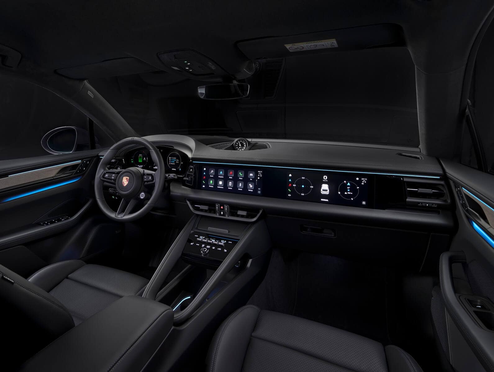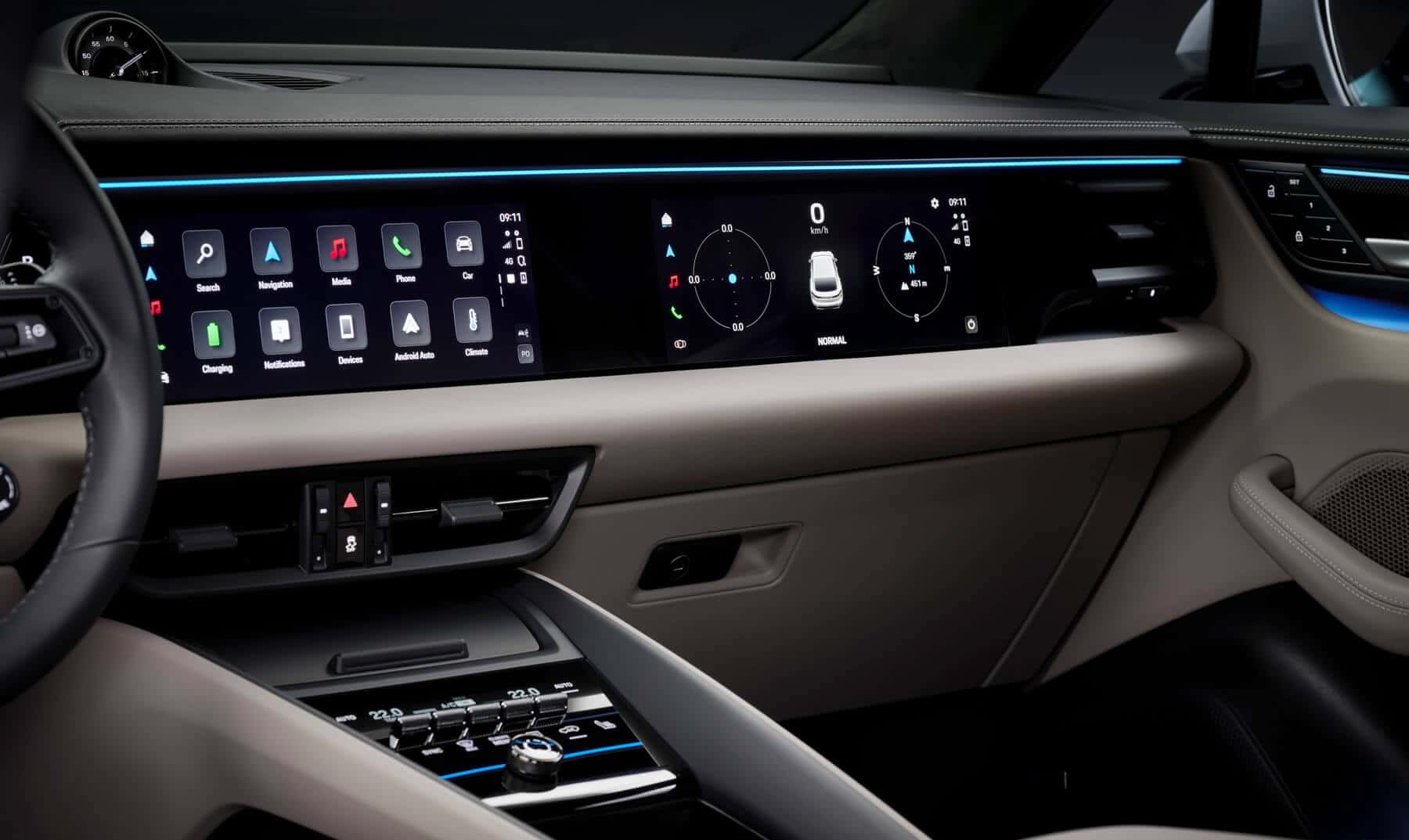 The Porsche’s cabin is dominated by screens, courtesy of a 12.6-inch instrument cluster, a 10.9-inch infotainment, and an optional 10.9-inch display on the passenger side of the dashboard. The iX3 still has the previous-generation infotainment but its successor is going to be the first BMW production model to adopt the iDrive X with a large central touchscreen and a dashboard-wide head-up display while doing away with most conventional controls. Even though it has generous screen real estate, the Porsche Macan EV still has shortcut buttons for some of the functions, including climate controls. The new iX3 and all Neue Klasse models are coming without the rotary knob.