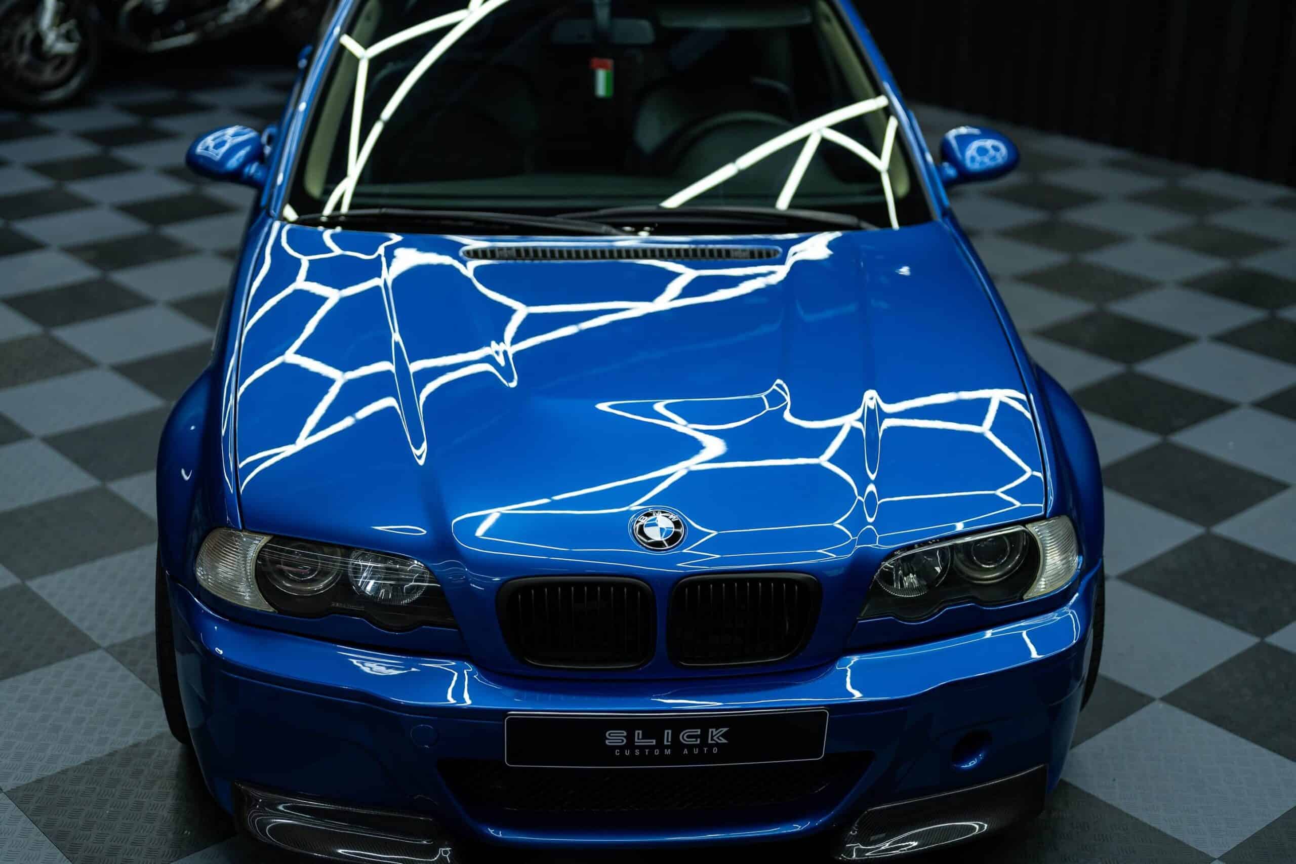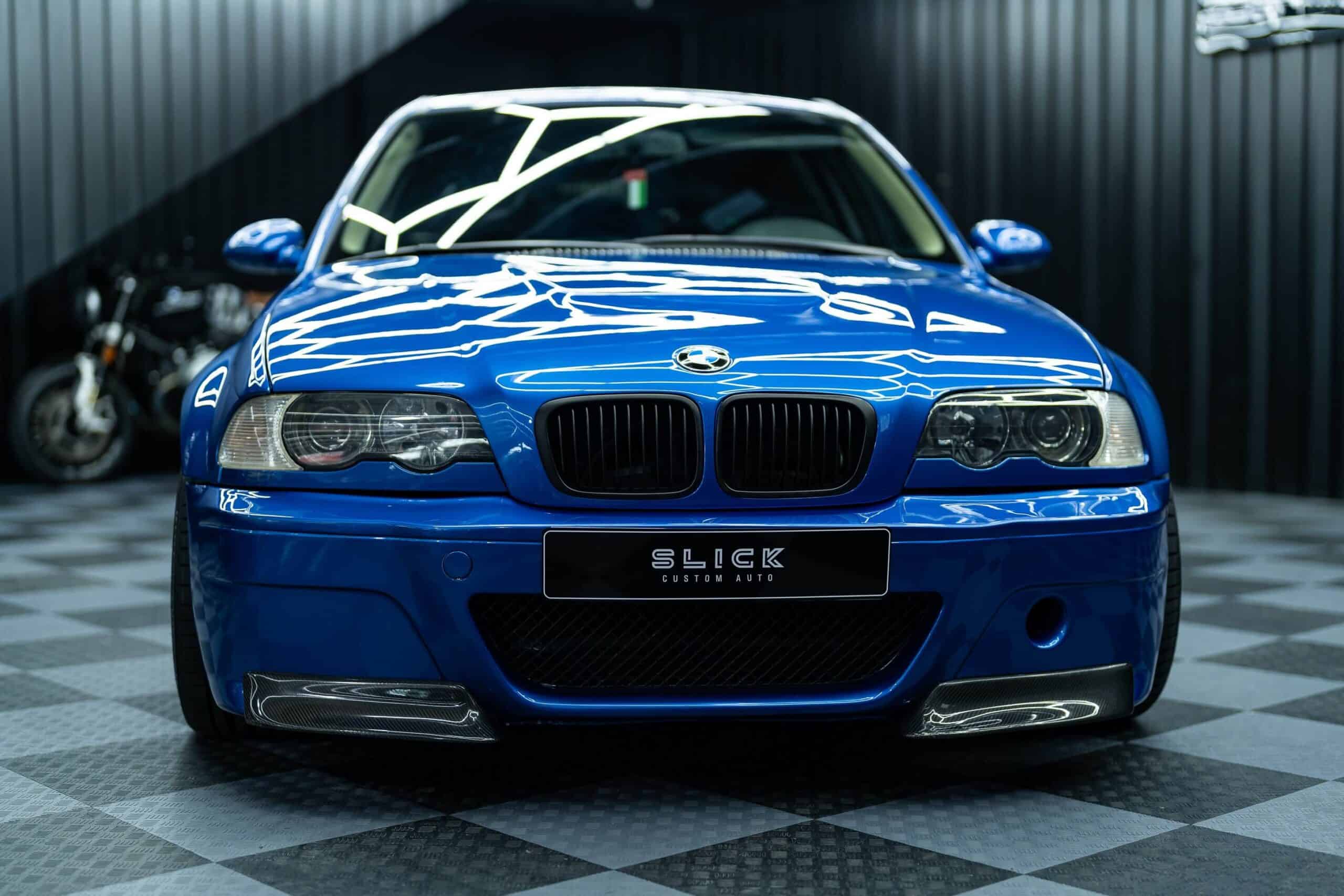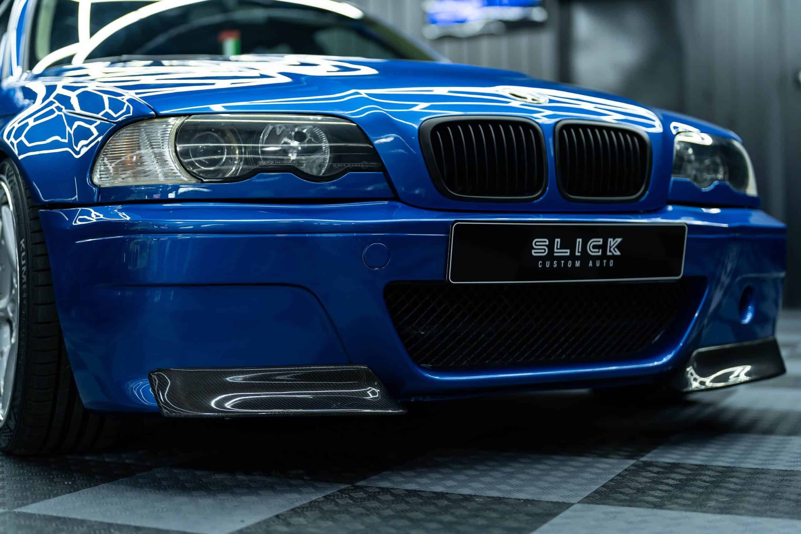 Customization extended to the front fenders, hood, and bumper, all tailored to seamlessly fit the body and create the optical illusion of an authentic M3 E46 Touring. This looks like something that BMW would build since it’s a faithful replica of the one-off that came painted in Chrome Shadow metallic. Slick Custom Auto decided to go for a more eye-catching blue shade, and eagle-eyed readers will notice it’s missing the headlight washers while the wheels are different. Another subtle difference is the blacked-out grille. On the original car, the kidneys had the classic chrome finish.