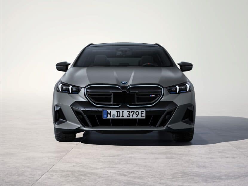 To set it apart from its rear-wheel-drive, single-motor cousin, BMW is giving the electric M Performance wagon a sporty grille. Inherited from the i5 M60 sedan, the pair of kidneys has dual horizontal bars and an M logo for a design we’re expecting to see on the M5 models as well. The side mirror caps have a glossy black finish, and the standard 19-inch M wheels further differentiate it from the lesser model. Customers can also add the optional M Sport Package Pro and the M Carbon Exterior Package for a design likely to bring the wagon closer to the visual drama of the M5 Touring.