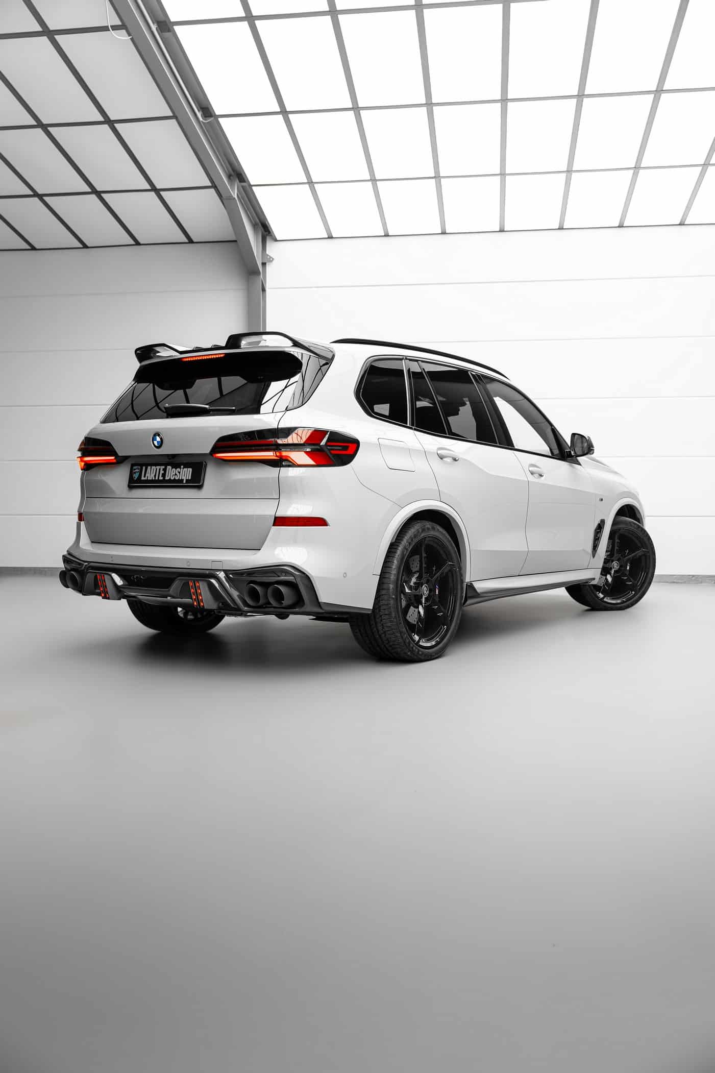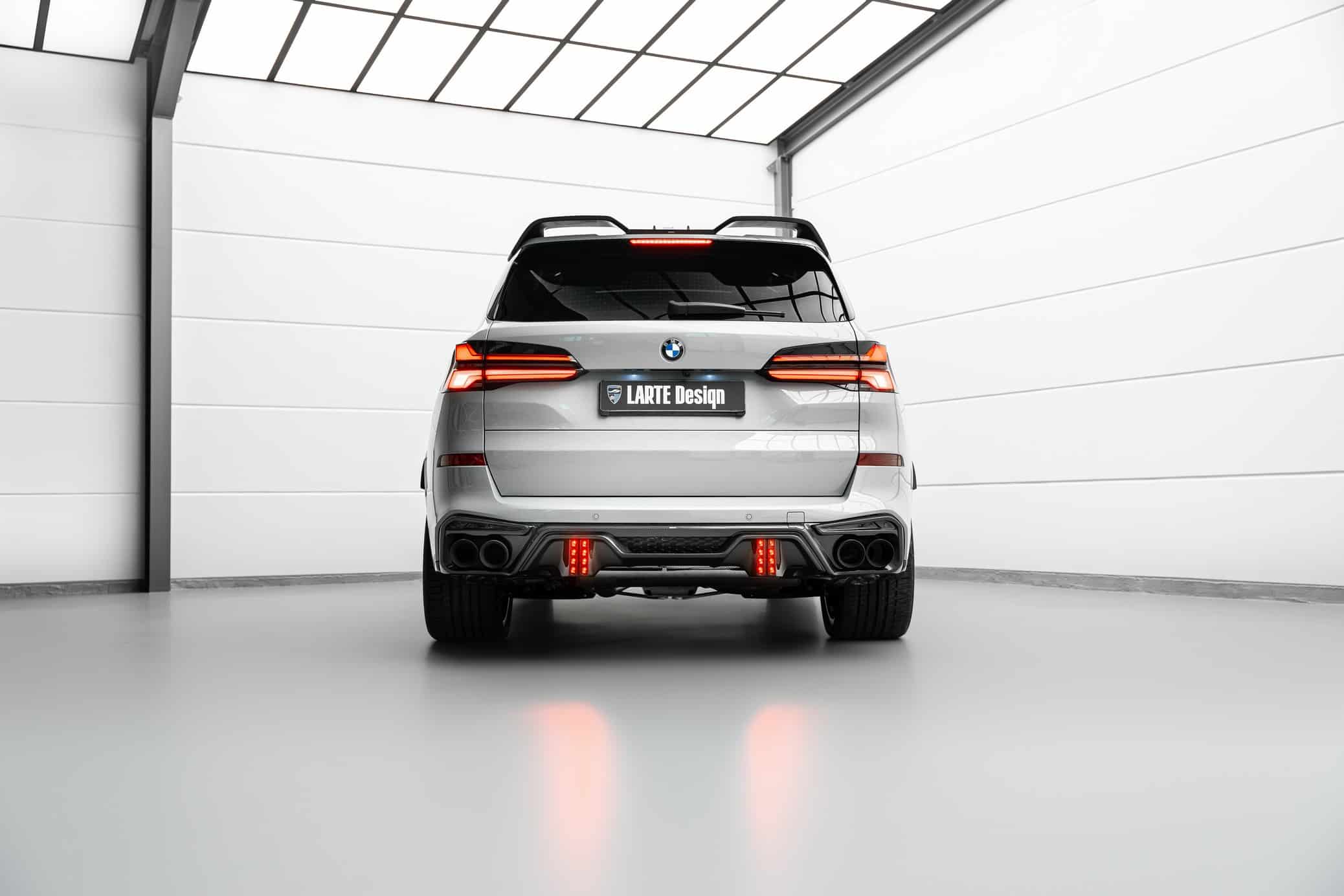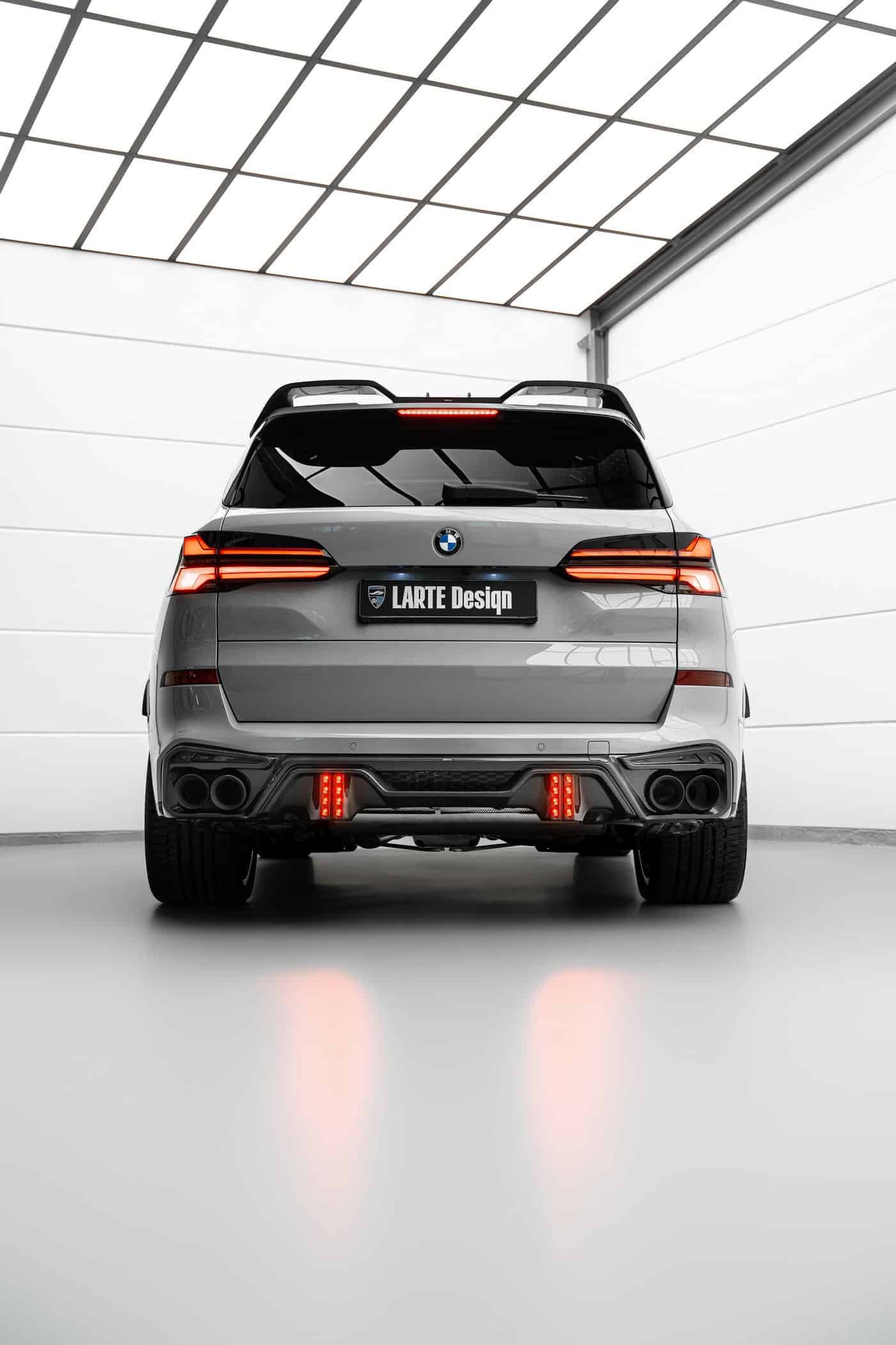 The profile has been subjected to a few modifications as well, including beefier side skirts along with forged wheels available in different designs and in sizes varying from 21 to 23 inches. Larte Design installed new mirror caps and gave the front fenders prominent faux air intakes. The rear is dominated by X5 M-esque quad exhaust tips, but you’ll also notice a roof spoiler and a new diffuser with dual vertical bars serving as brake lights.
