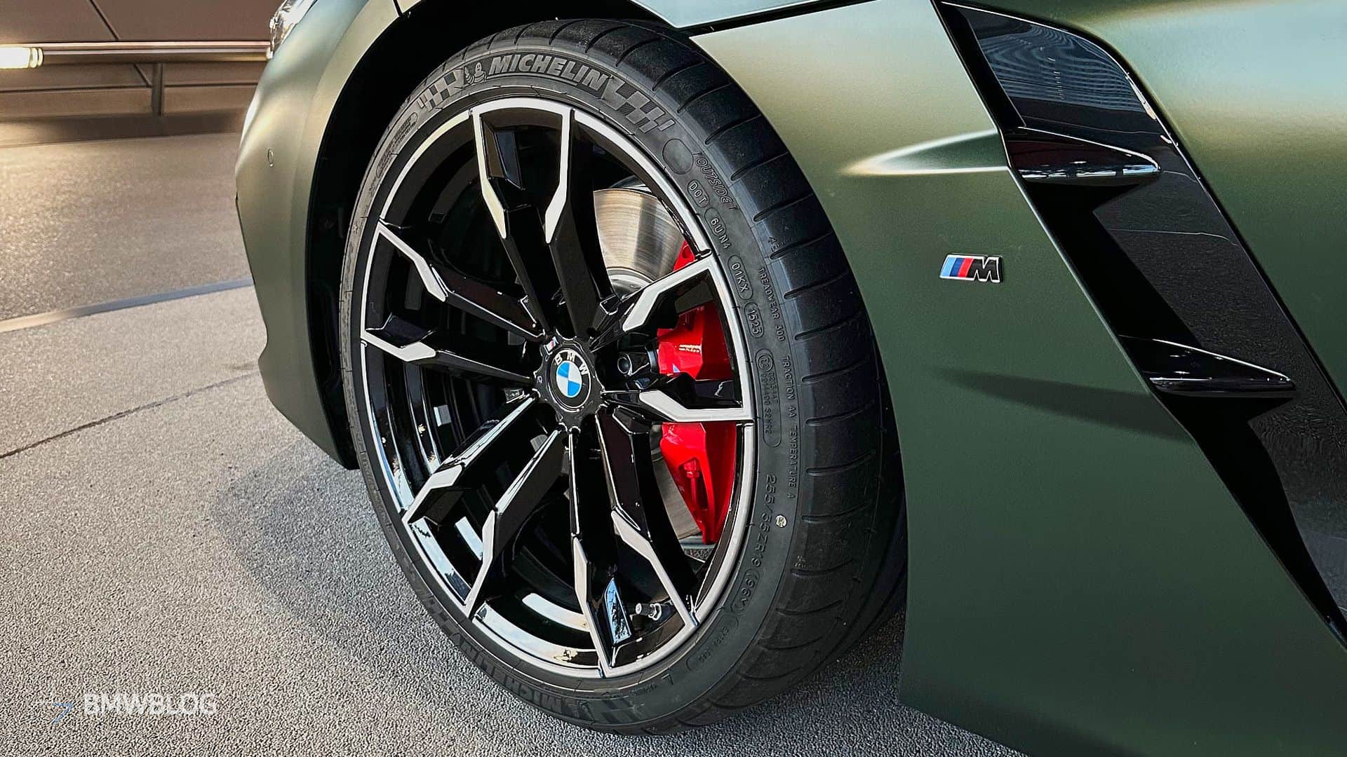 Not only is BMW giving the Z4 M40i a third pedal, but it’s also introducing staggered wheels. You can see them at the Welt where the car sits on 19-inch front and 20-inch rear alloys. The Pure Impulse Edition (the official name in Europe) has these fancy shoes with a double-spoke design and glossy black accents included as standard. Typically, mixed-size M lightweight wheels have been reserved for full-fat M cars.