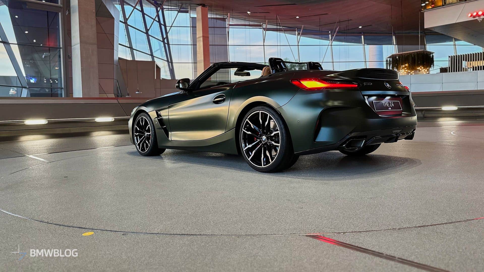 BMW is finally putting a manual gearbox in the Z4 M40i and is understandably proud to showcase the three-pedal M Performance roadster at the Welt. We’re in Munich and we couldn’t resist the temptation to shoot the stylish convertible in all its Individual glory. Made famous by the M5 CS, this Frozen Deep Green matte paint looks the part on the “analog” open-top sports car.