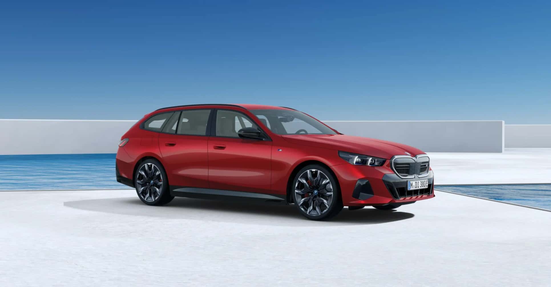 Instead, the M Lite 5 Series with a long roof is now completely electric. This i5 M60 Touring is painted in Fire Red, also known as Vegas Red in the United States where the G61 will remain a forbidden fruit. The luxury wagon from Bavaria is shown here with the 21-inch wheels (Style 954) and the M Sport Package Pro. The latter combines Shadowline accents – including for the headlights – with red brake calipers and M colors on the seatbelts.
