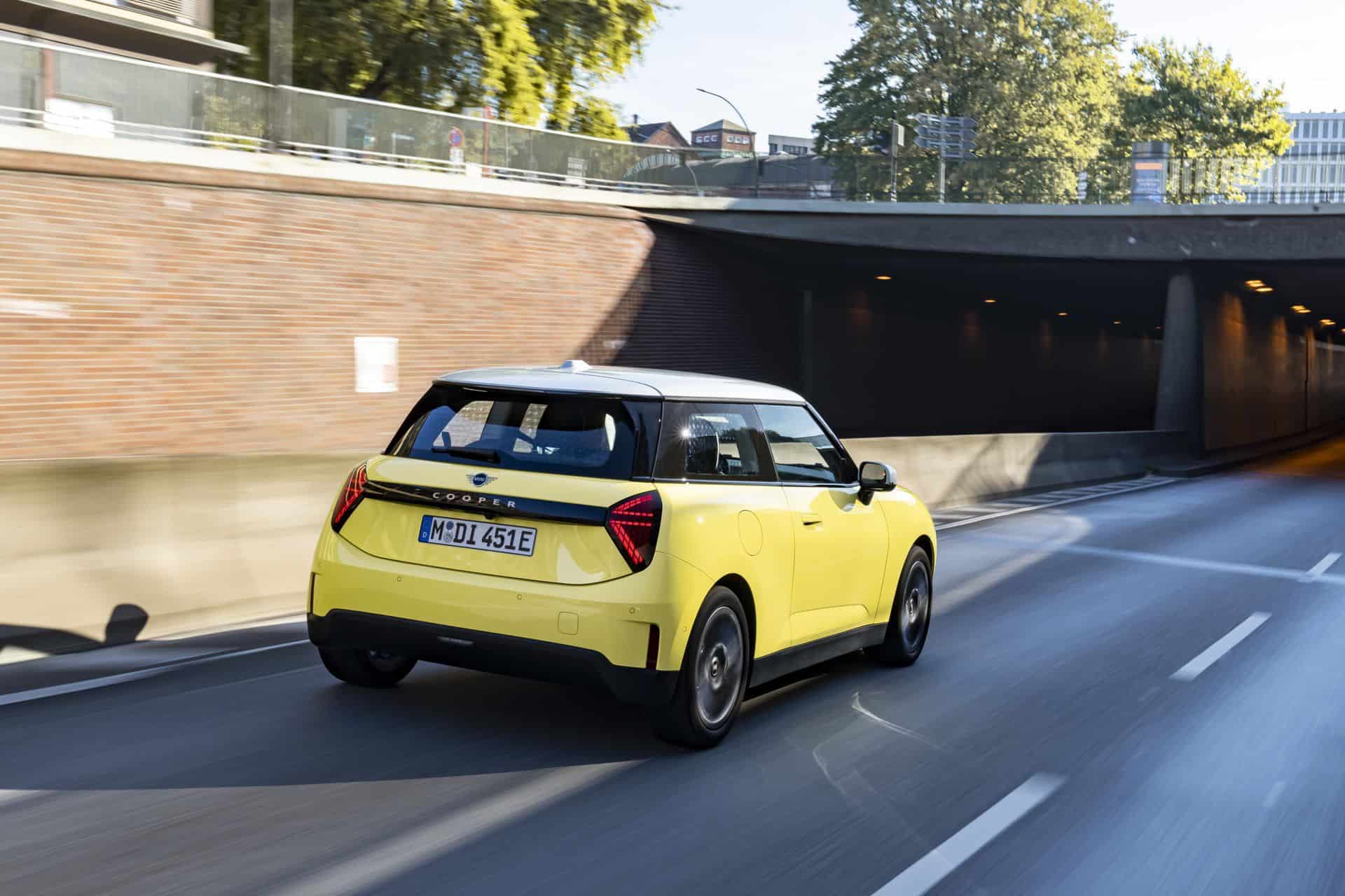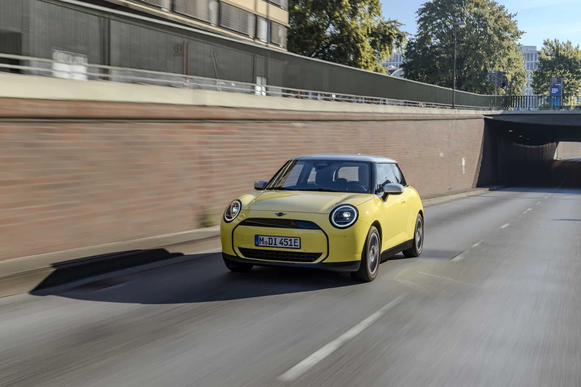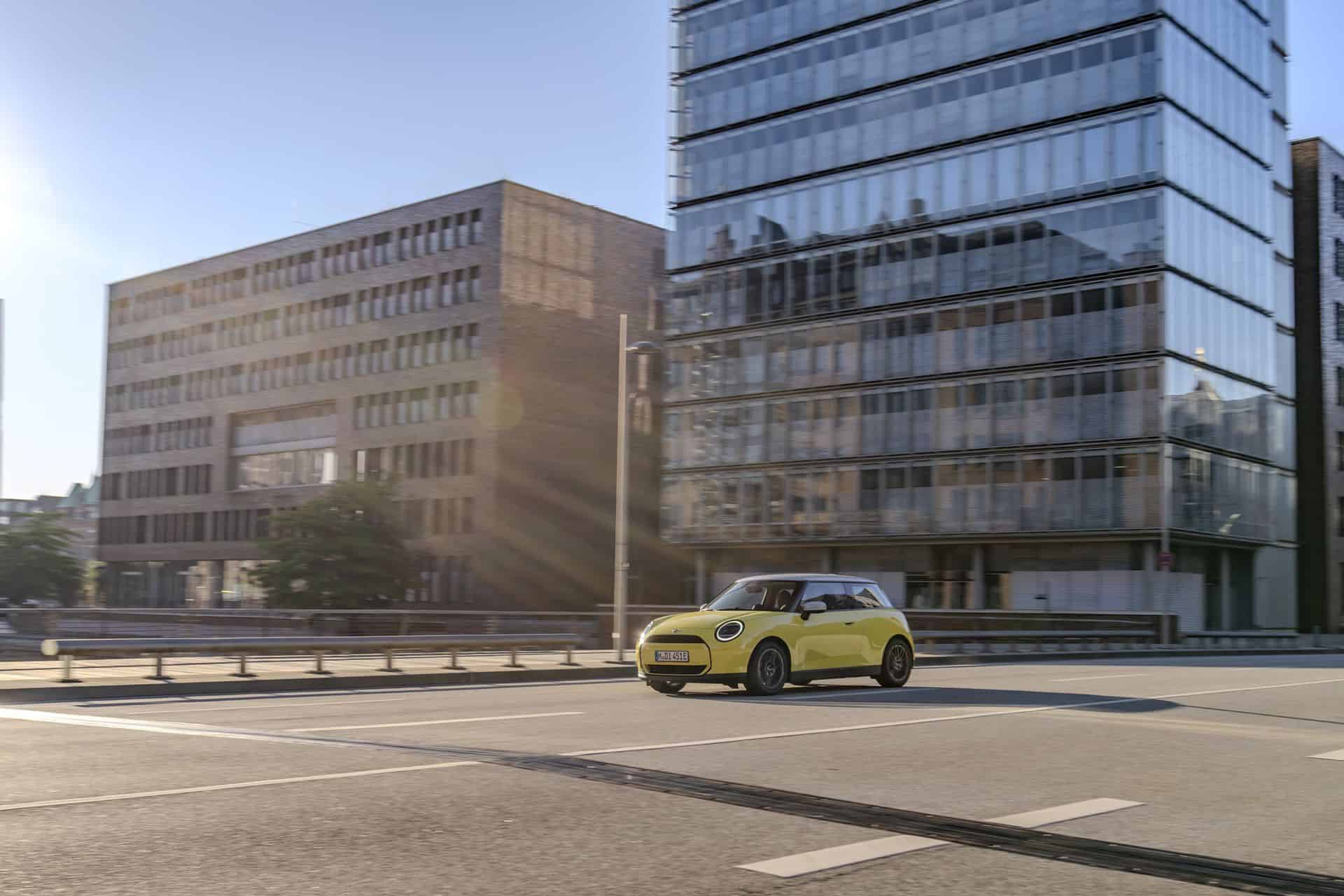 The entry-level MINI Cooper E electric (J01) is introduced with four redesigned vehicle trims, each tailored to cater to diverse tastes and preferences. Among these, the Classic Trim stands out with its vibrant body colors and striking contrasting roof finishes, embodying the spirit of MINI with a contemporary twist. The puristic design of the iconic three-door model shines brightly in Sunny Side Yellow, complemented by a contrasting roof and mirror caps in pristine white.