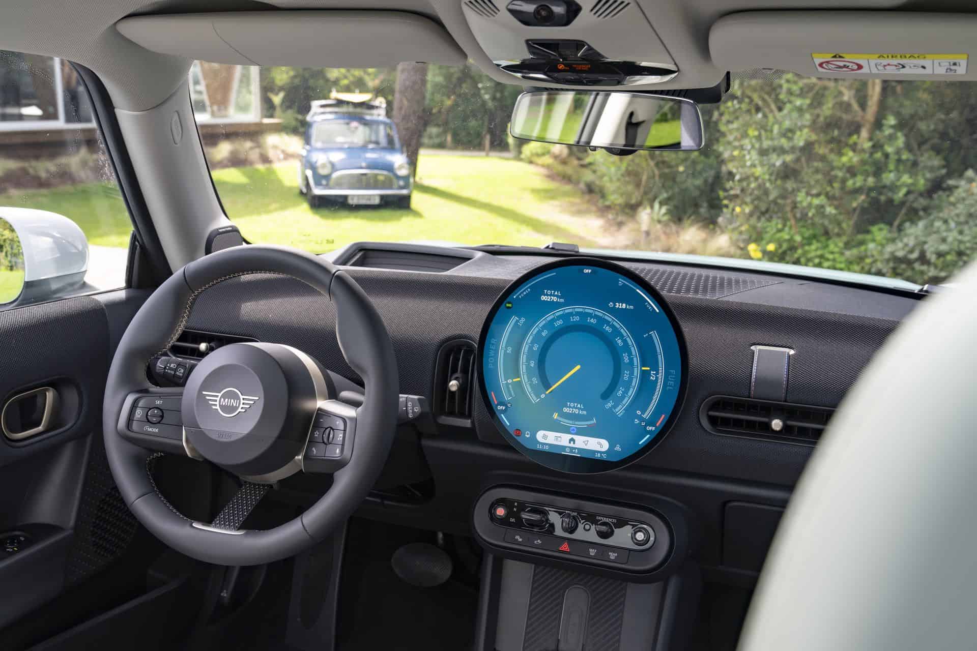 Inside, both Coopers embrace minimalism. The circular 9.4” OLED touchscreen, a centerpiece of the cabin, introduces the all-new MINI Operating System 9, with several experience modes. Switchgear has been reduced to a minimum. The door cards are different, with the latch placed much lower on the electric model. The electric J01 has its tweeters placed on the door, while in the new F66, they are still on the A-pillar. It also has an extra climate vent to the right of the steering wheel that is missing in the EV. The F66 incorporates the center console and seating design from the latest Countryman, featuring a significantly larger center armrest for enhanced comfort.