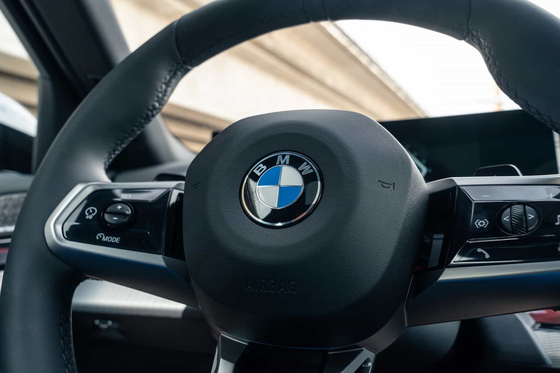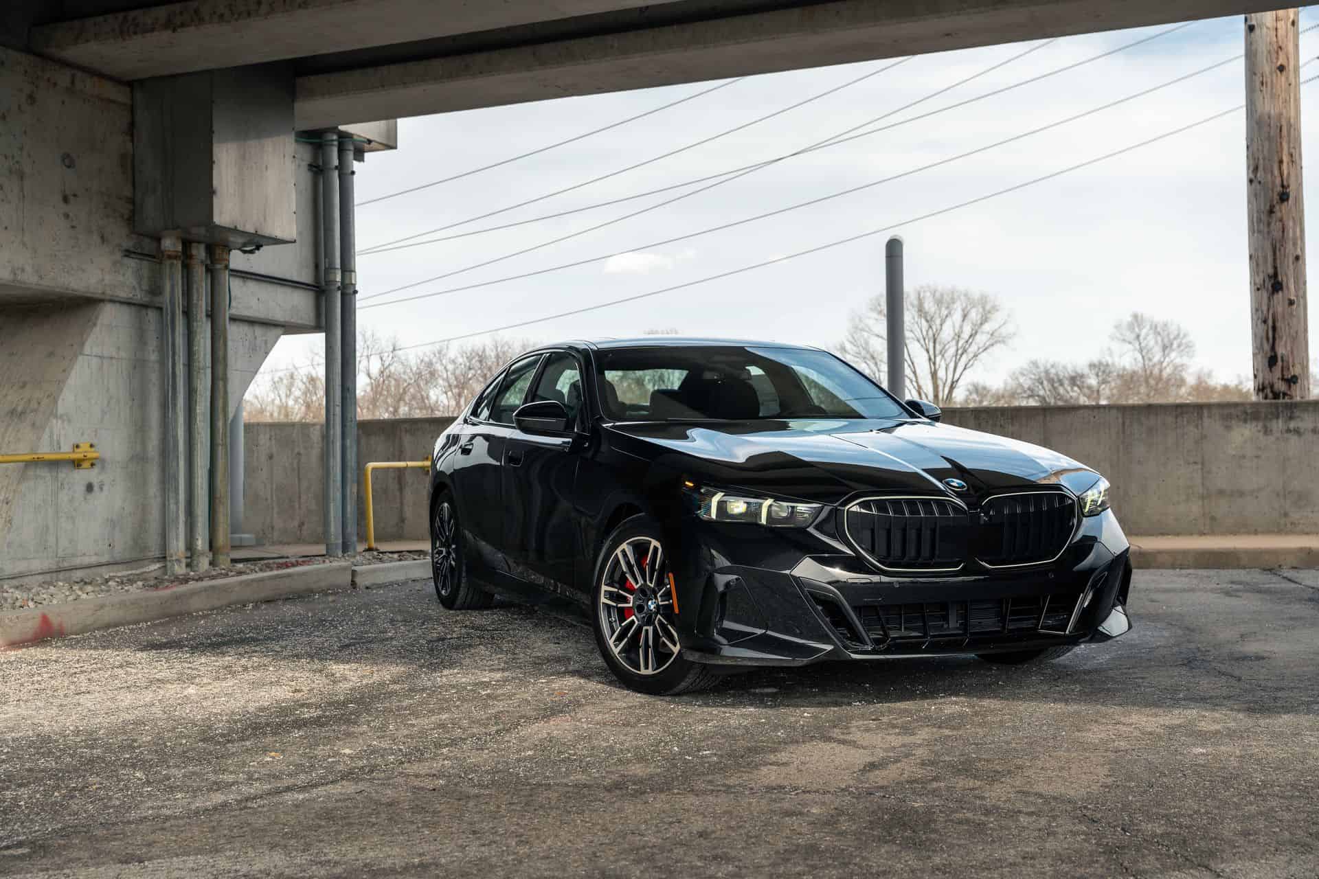 In case you haven’t noticed, there are no M badges on the front fenders even though this 2024 5 Series has the M Sport Package. It’s actually the upgraded M Sport Professional Package with the M Sport brakes (with red calipers), the blacked-out illuminated kidney grille, and numerous Shadowline dark accents. For your money’s worth, BMW adds a trunk lid spoiler and applies a black inlay to the headlights.