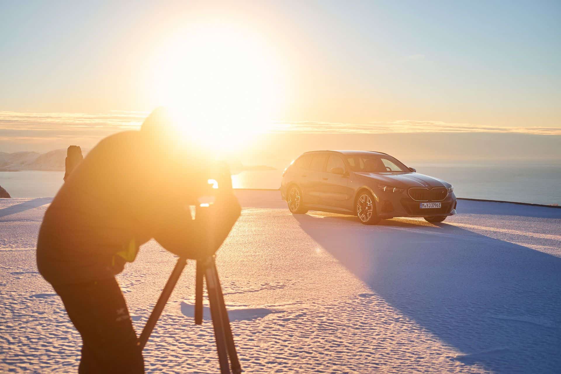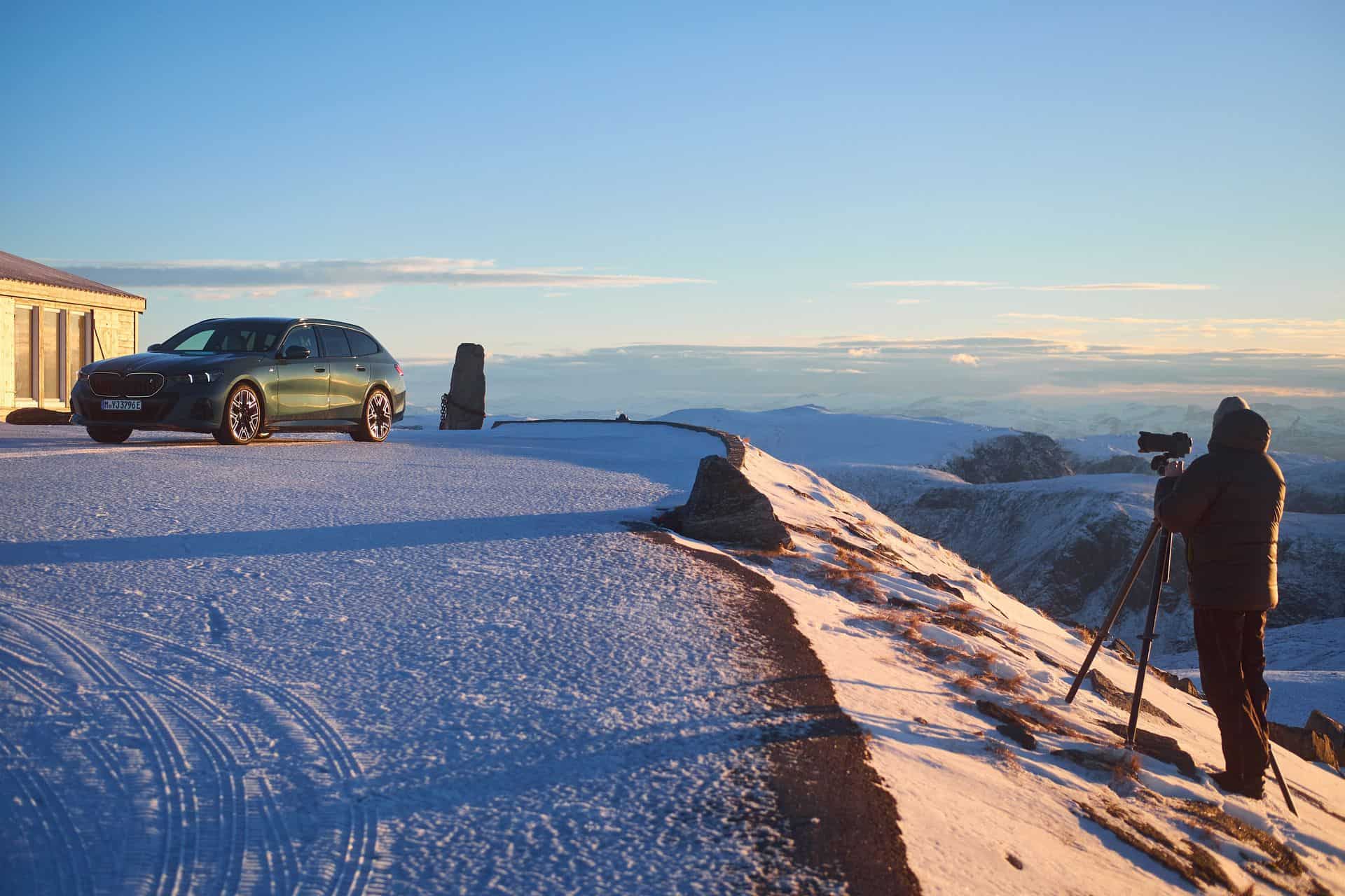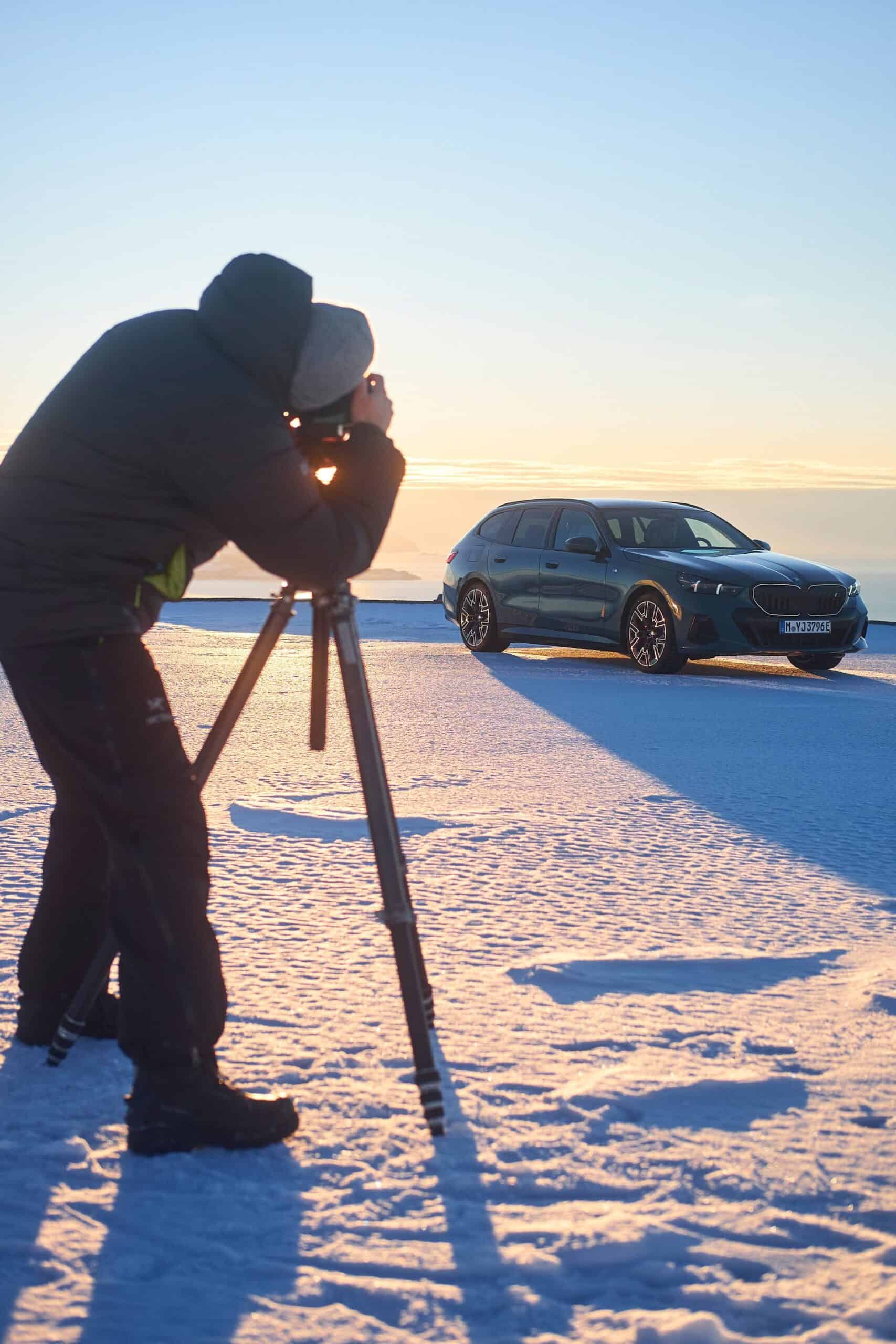 The photographers got lucky with the weather as aside from an abundance of snow, there were also some sunny, albeit short days – perfect for adding a great variety to the press images. Some of the photos were taken in remote areas with only a handful of people around, next to the Atlantic Ocean. The team spent a total of eight days shooting the new 5 Series Touring and its electric sibling, having to endure the predictably freezing temperatures of Norway.