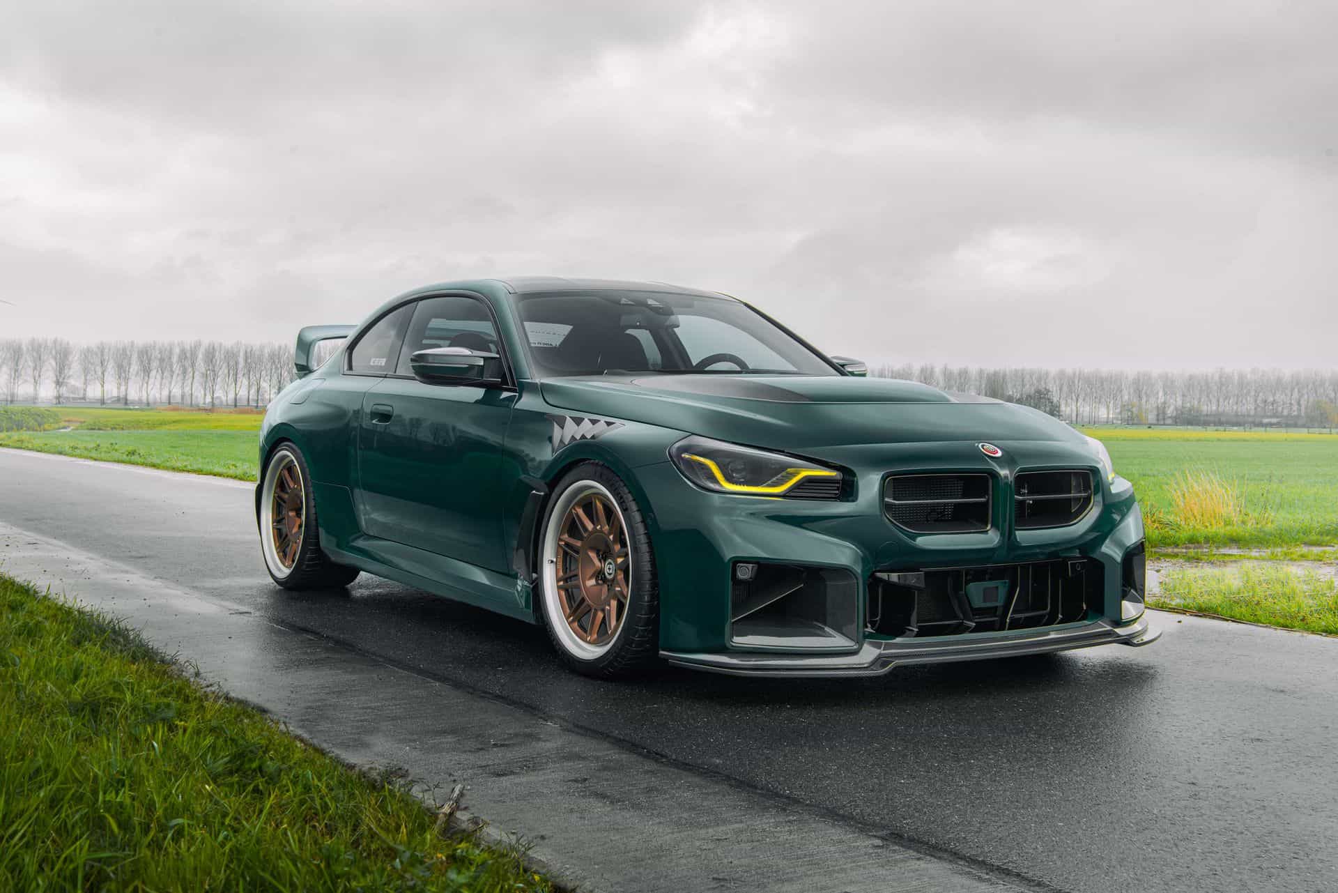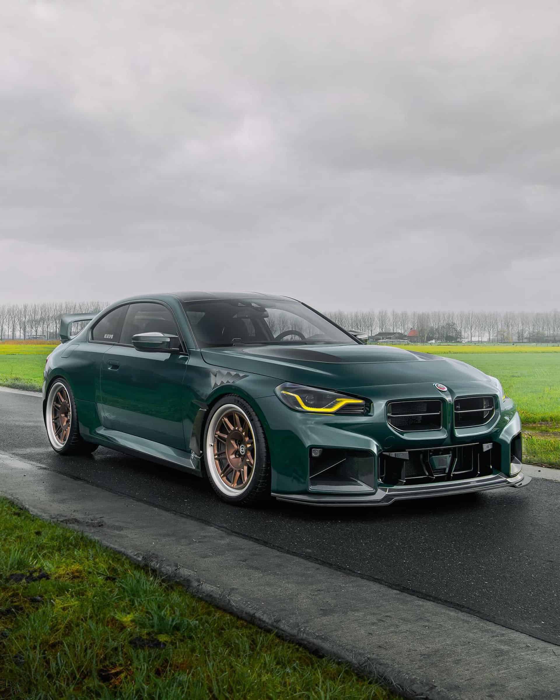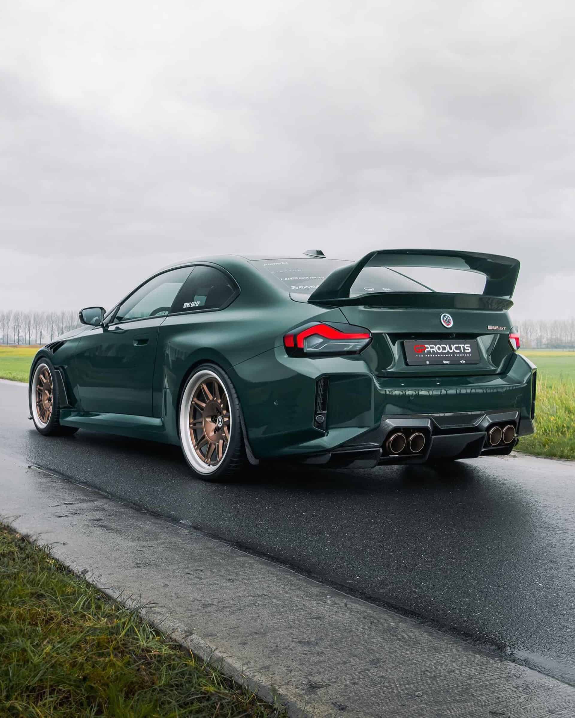 One of the most striking cars we saw at the 2023 Essen Motor Show last December was a BMW M2 GT modified to look like the M3 GT. The wild build is making the headlines again in new photos of the hardcore G87 built by aftermarket parts supplier GP Products. It’s got a full Alpha-N body kit and a British Racing Green finish as a nod to the spicy E36 version.