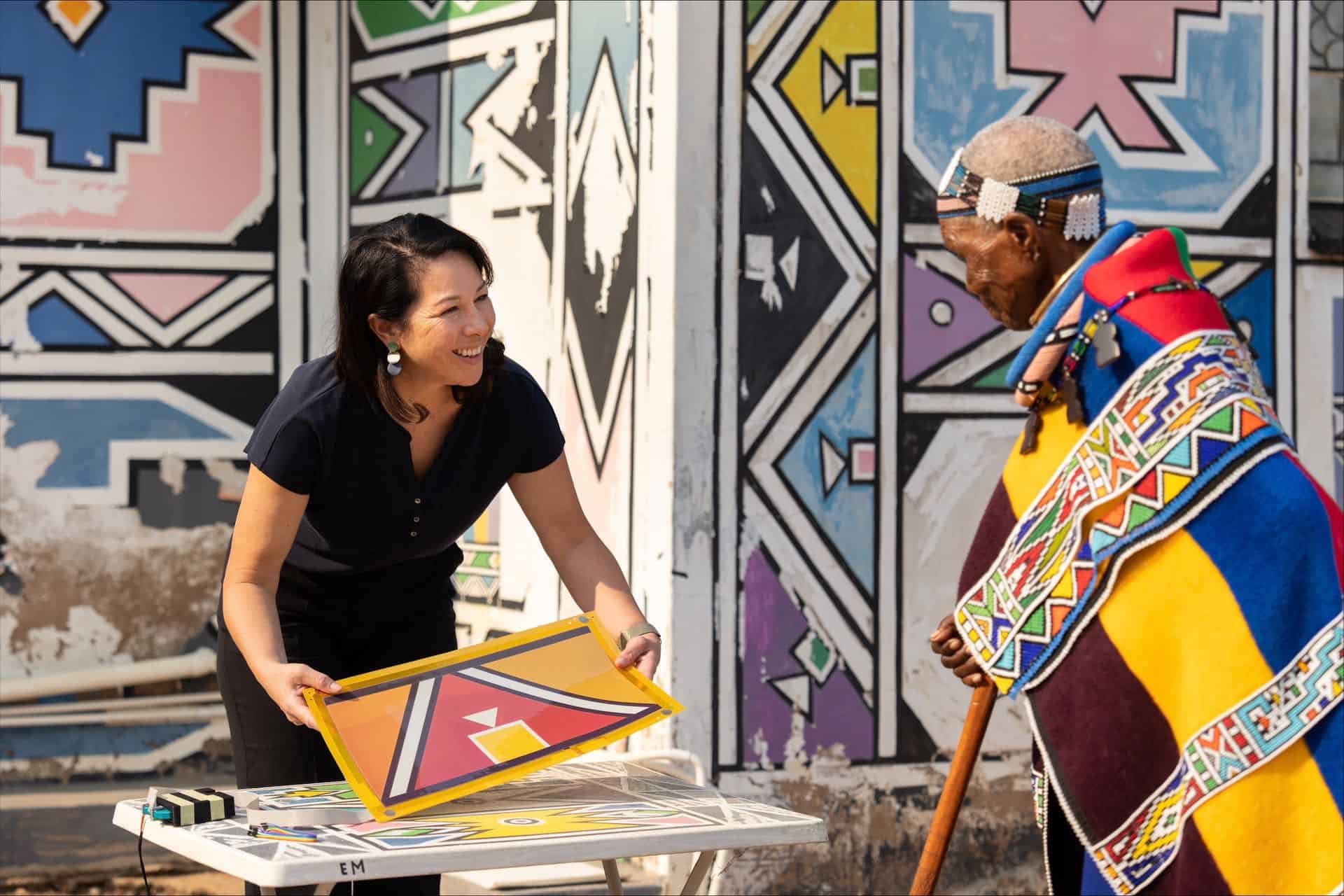 Stella Clarke opened the session with a captivating narrative, drawing inspiration from a photo of artist Esther Mahlangu with a BMW 7 Series. This image, showcasing Mahlangu’s joy and the cultural significance embedded in her interaction with the vehicle, sparked Clarke’s exploration into this i5 Flow project. “We’re very proud of this car that we revealed yesterday,” Clarke told us. “It is also technically further development than we have done so far. So this was technically very, very challenging.”