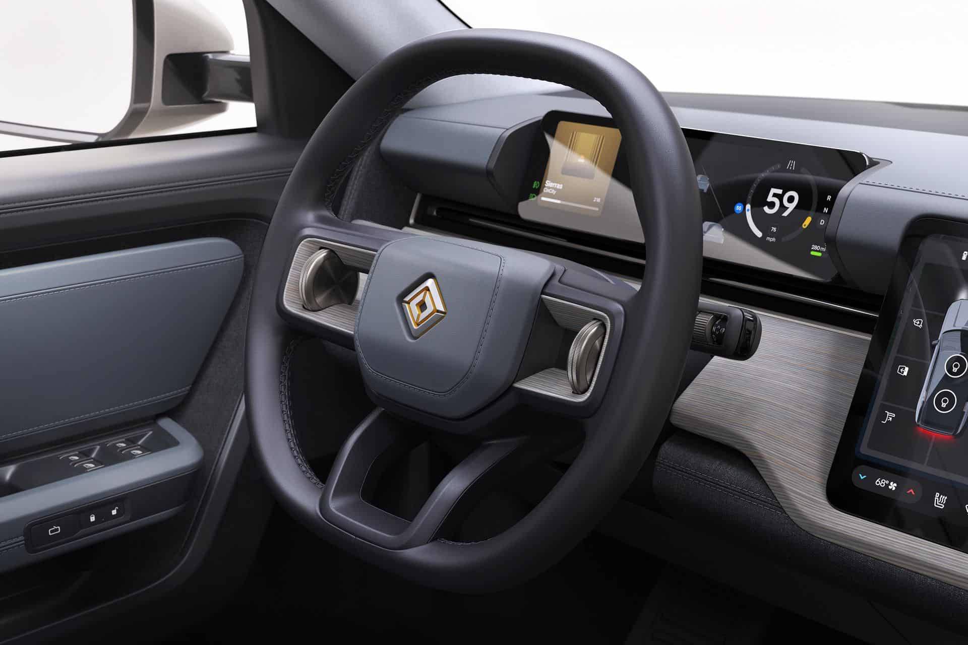 Just like the R1T and R1S, the new R2 features a smart and functional design. For example, it has a frunk and a pop-out rear window behind the second row and roll-down rear glass. Inside, the design is minimalistic, but very clean and not overwhelming with tech. You do have a large central display operated through scroll wheels on the steering, and plenty of storage compartments.