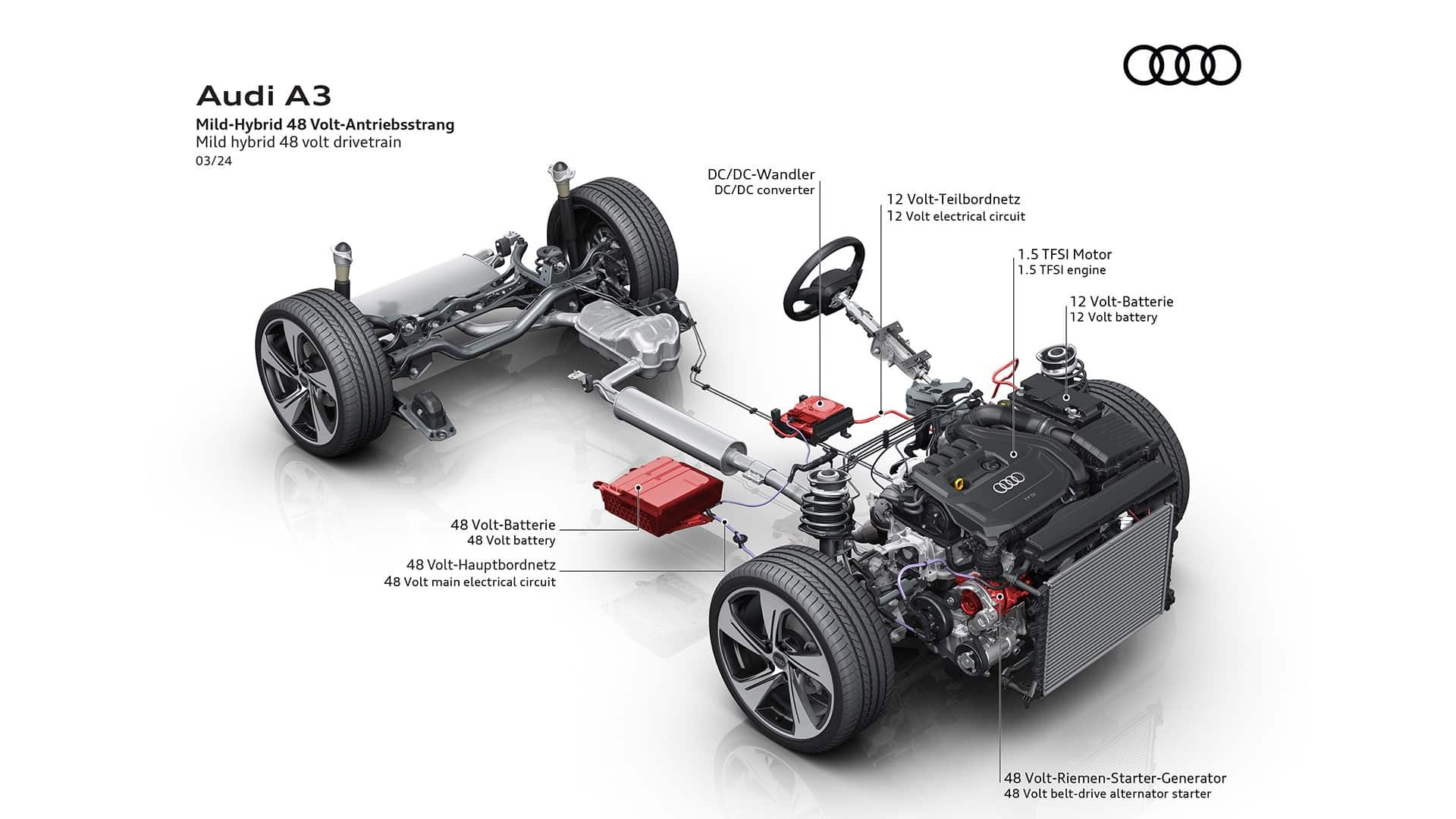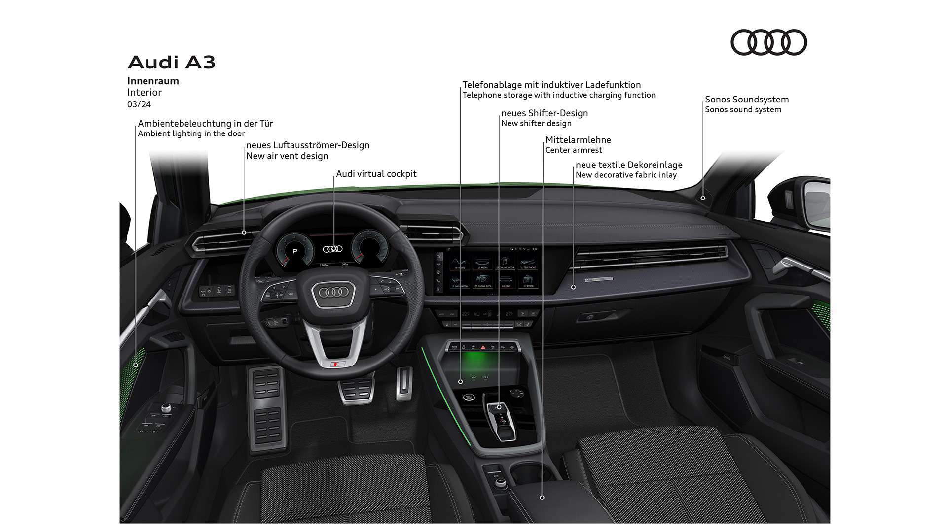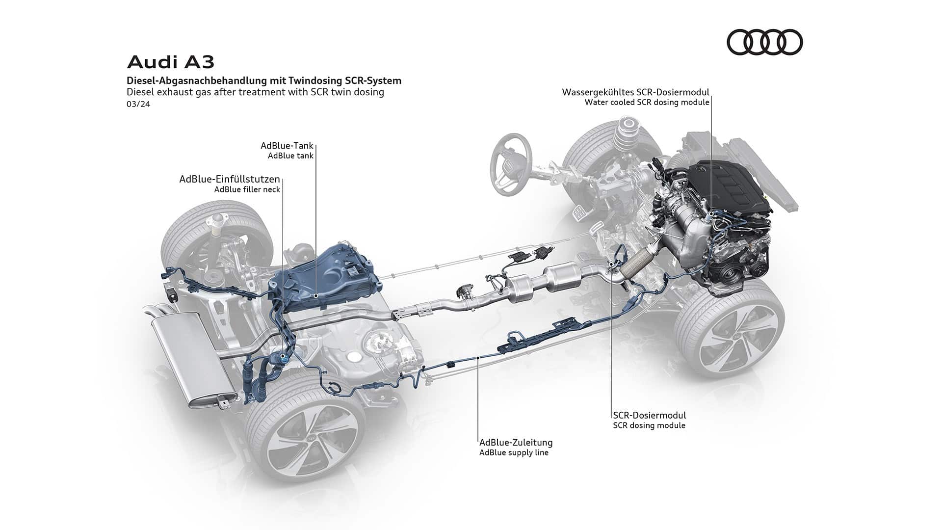 Initially, Audi will sell the revised A3 only with a 1.5-liter turbocharged gasoline engine and a 2.0-liter diesel. Additional gas and diesel powertrains are going to be introduced in Q2 2024, with a plug-in hybrid to follow before the year’s end.