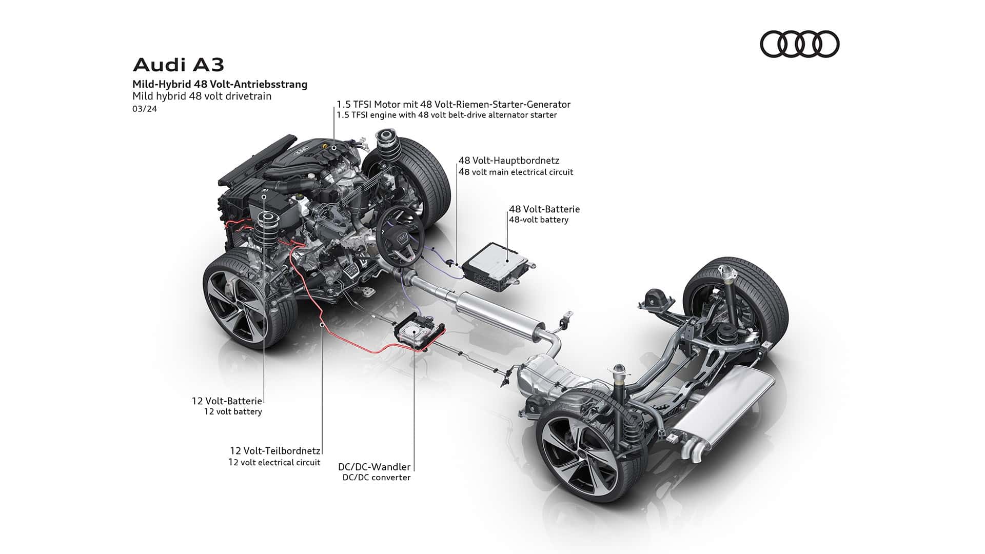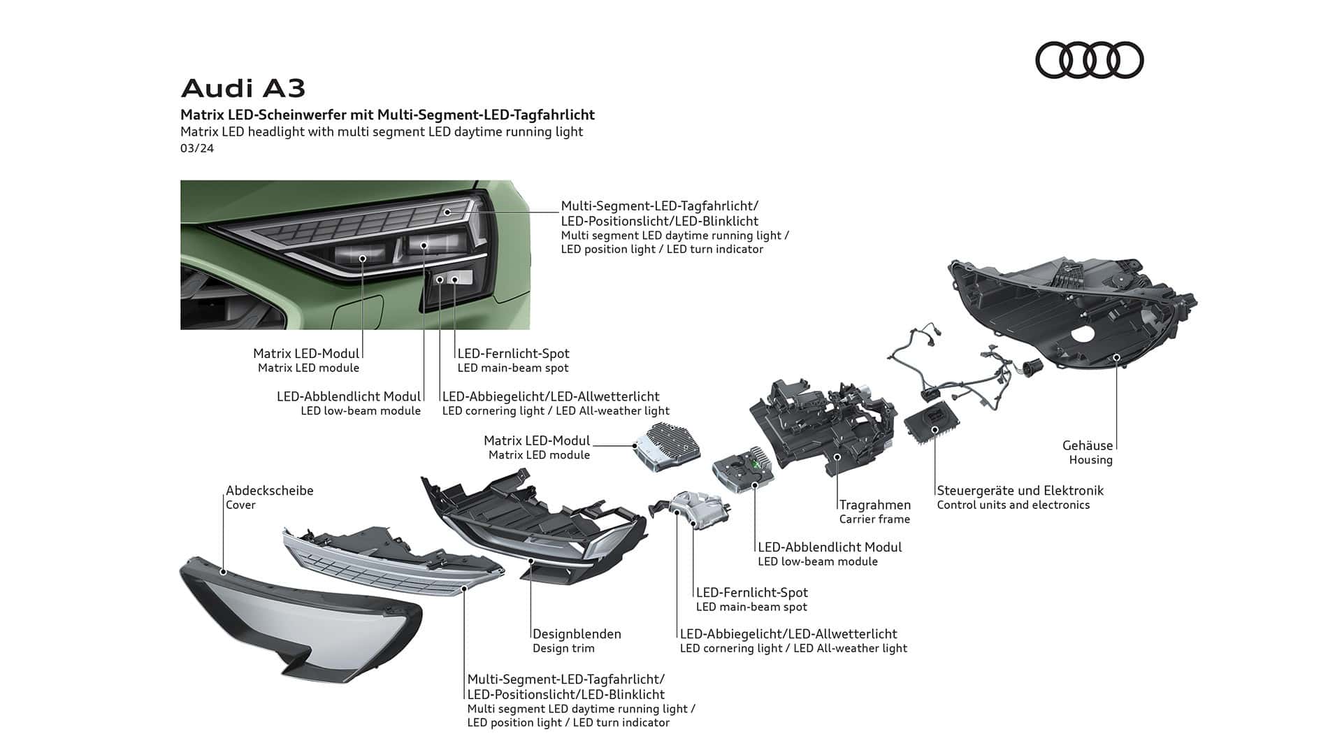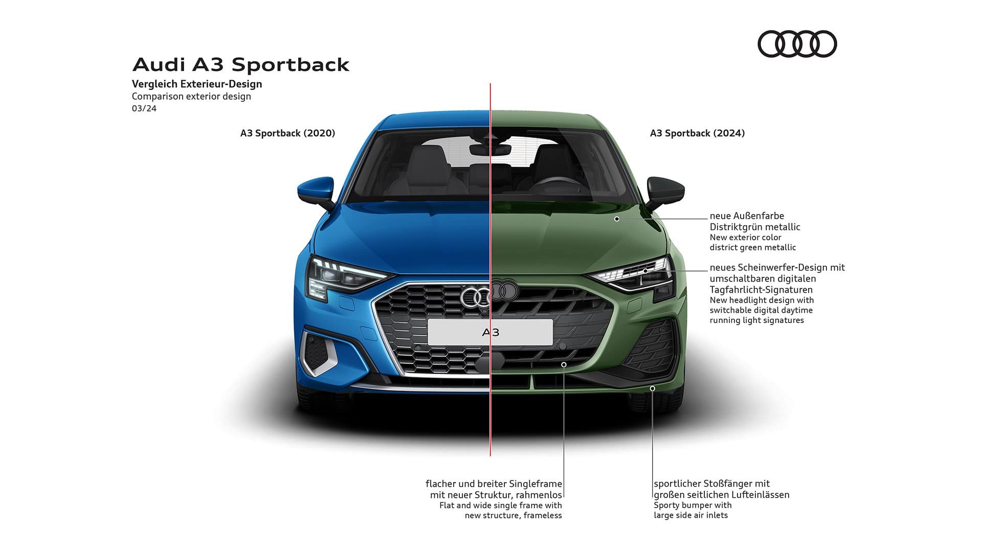 Initially, Audi will sell the revised A3 only with a 1.5-liter turbocharged gasoline engine and a 2.0-liter diesel. Additional gas and diesel powertrains are going to be introduced in Q2 2024, with a plug-in hybrid to follow before the year’s end.