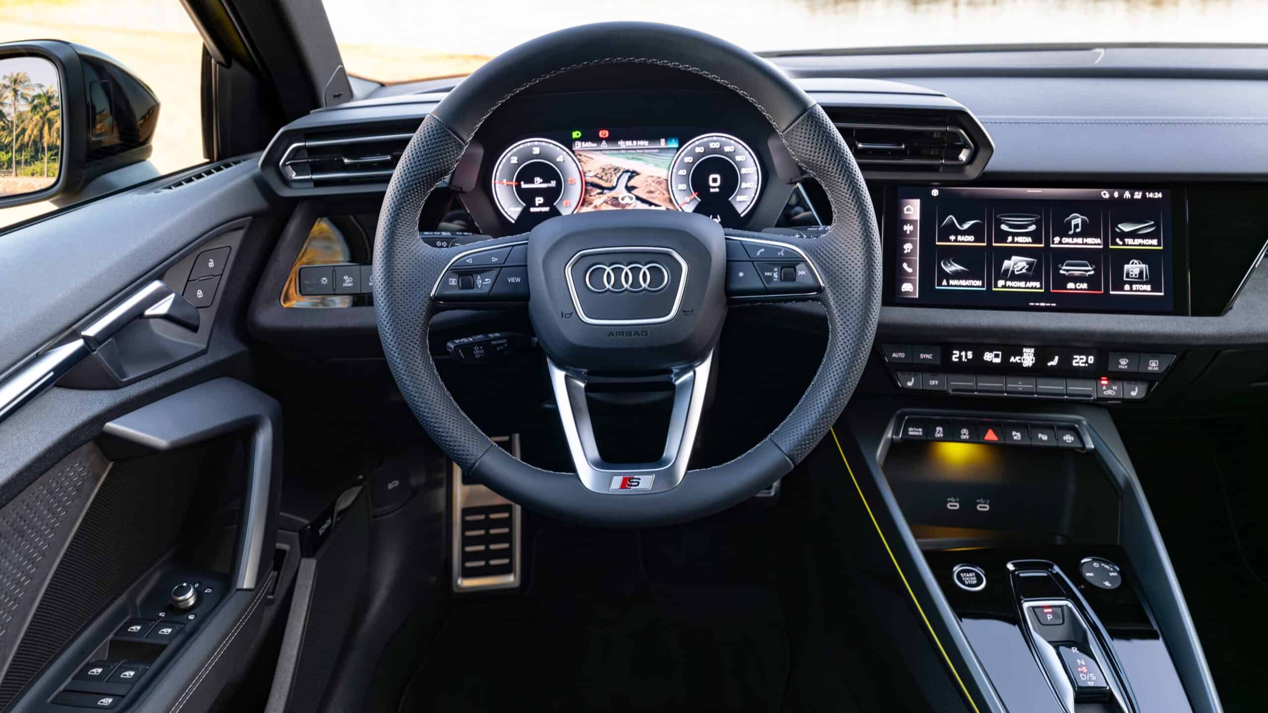 By the way, the new Audi A3 has a 10.1-inch central display and an all-digital instrument cluster. Also standard is a wireless charging pad, joined by a pair of USB-C ports in the front console and another two for rear occupants. Overall, the cabin is more of the same since it has barely changed, but we’d argue that’s a good thing since we like our old-school buttons instead of having to rely on touchscreens.