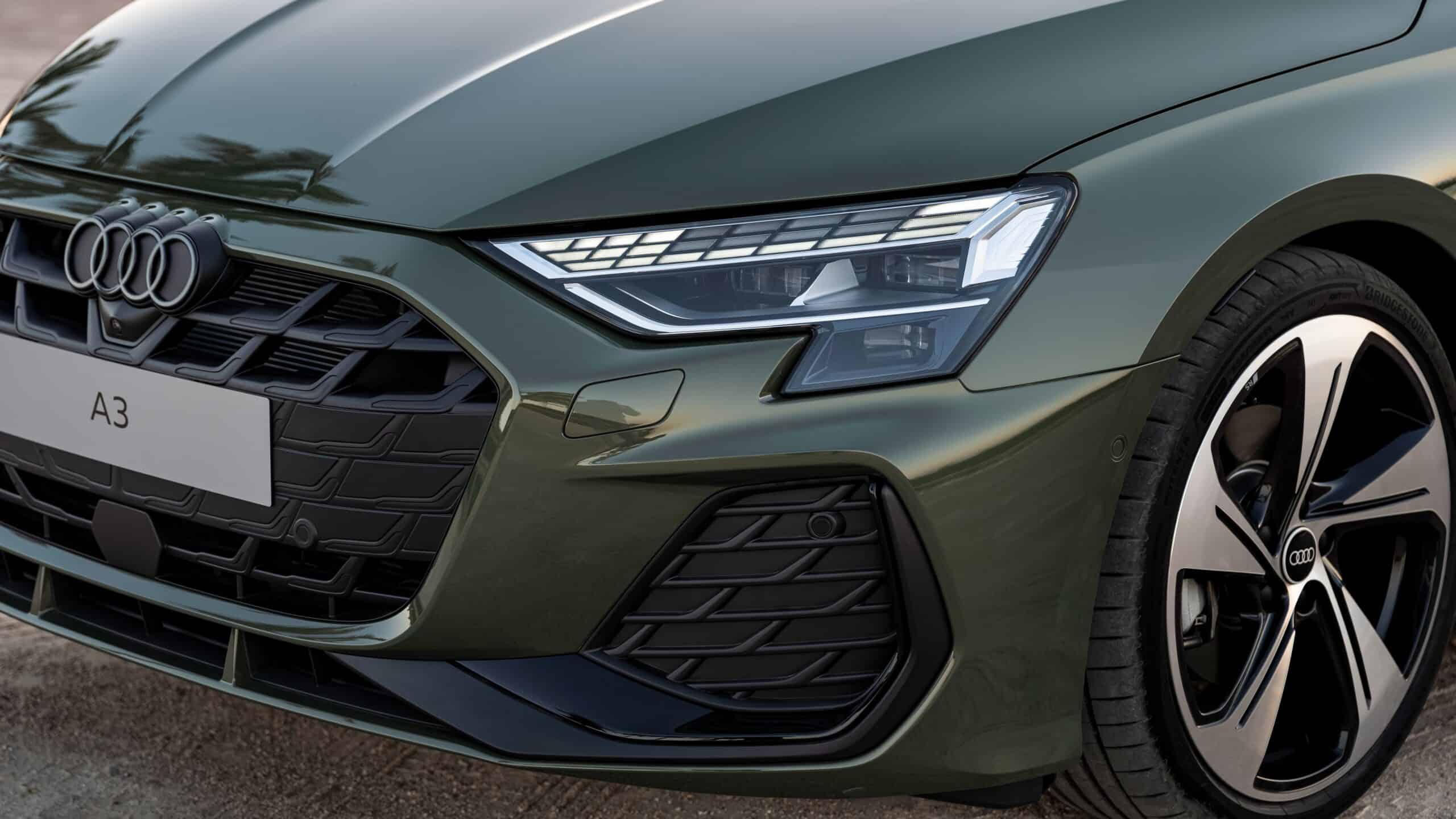 Audi isn’t rewriting the book of design with its 2025 A3 since the car adopts evolutionary styling as one would expect from a facelift. The hexagonal frameless grille is slightly flatter and wider than before while adopting a revised pattern to spruce things up. Audi has a new lower lip that gives the illusion of a larger and more imposing car.