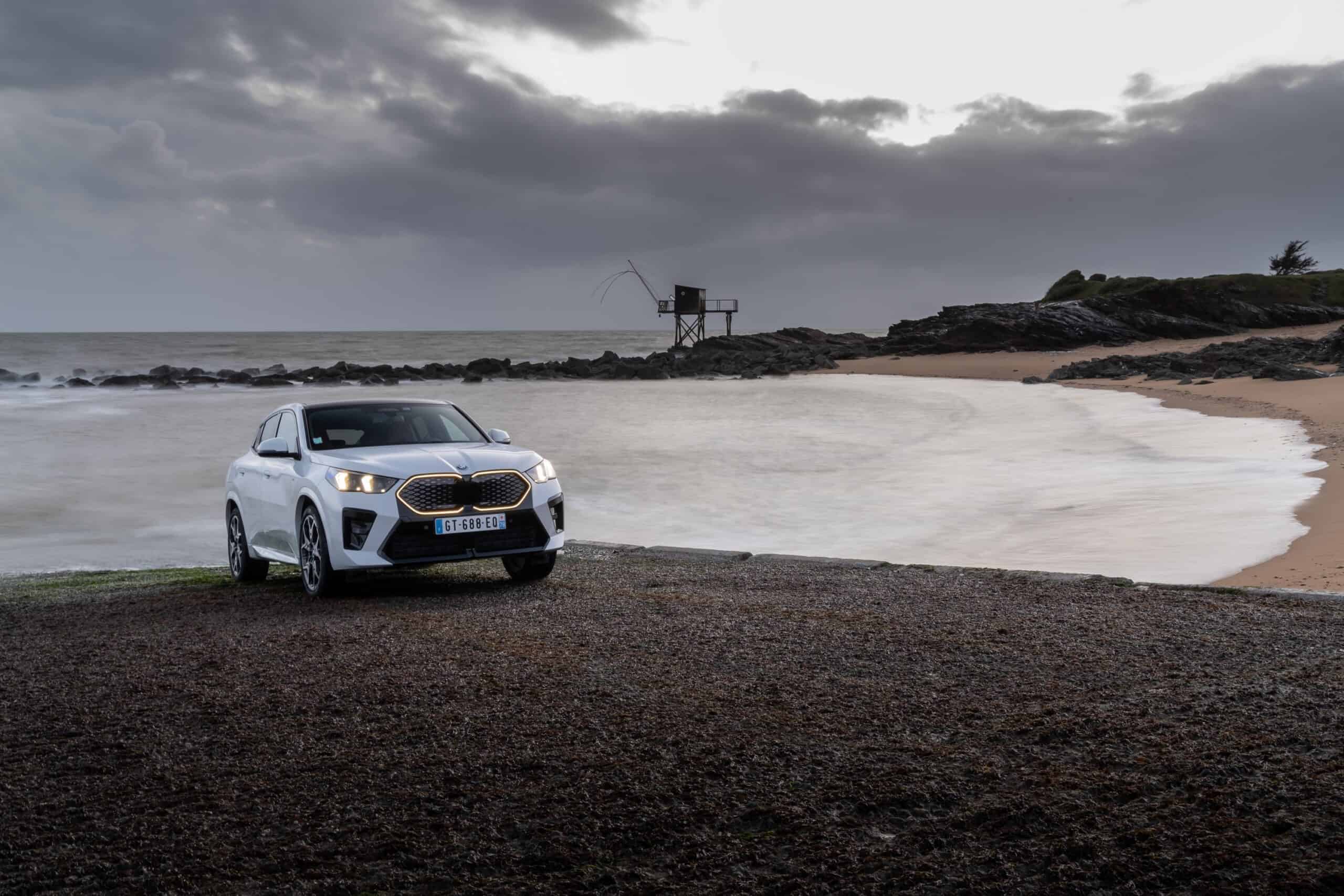 It’s a dual-motor electric X2 with xDrive but you can also settle for a single-motor, front-wheel-drive eDrive20 if you’re on a tight budget. BMW France set up a photo shoot in Morbihan, a department in the administrative region of the Brittany peninsula, with the iX2 xDrive30 to celebrate the model’s local debut. The stylish EV seen here posing for the camera in the northwest of France comes painted in Alpine White with certain elements blacked out, including the illuminated kidney grille.