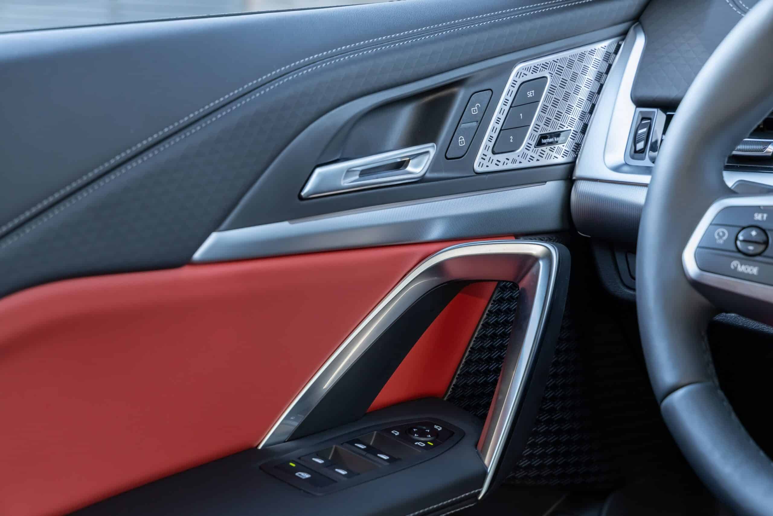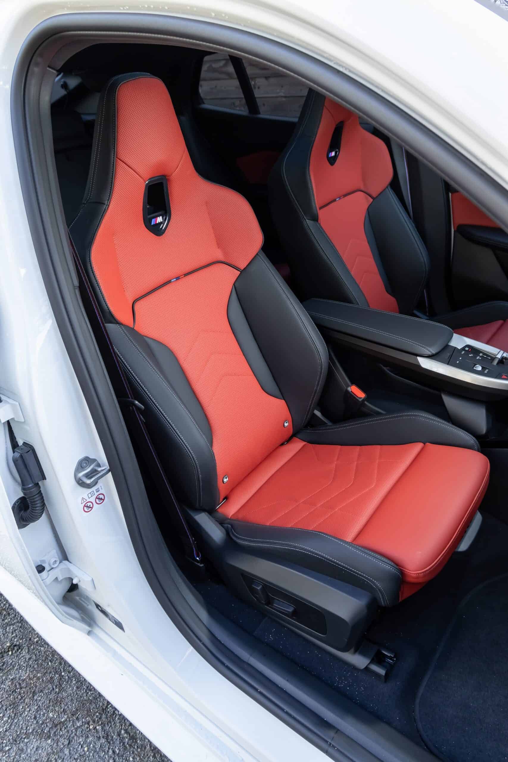 While the paint is nothing to write home about, the interior is quite daring with a red and black theme for the perforated artificial leather (aka Veganza). The cabin is also vastly different than before, focusing on large screens to the detriment of physical controls. As with the X1 and 2 Series Active Tourer, the iDrive knob is sadly gone. The new 1 Series and 2 Series Gran Coupe coming this year will also do away with the traditional controller, as will EVs on the Neue Klasse platform.