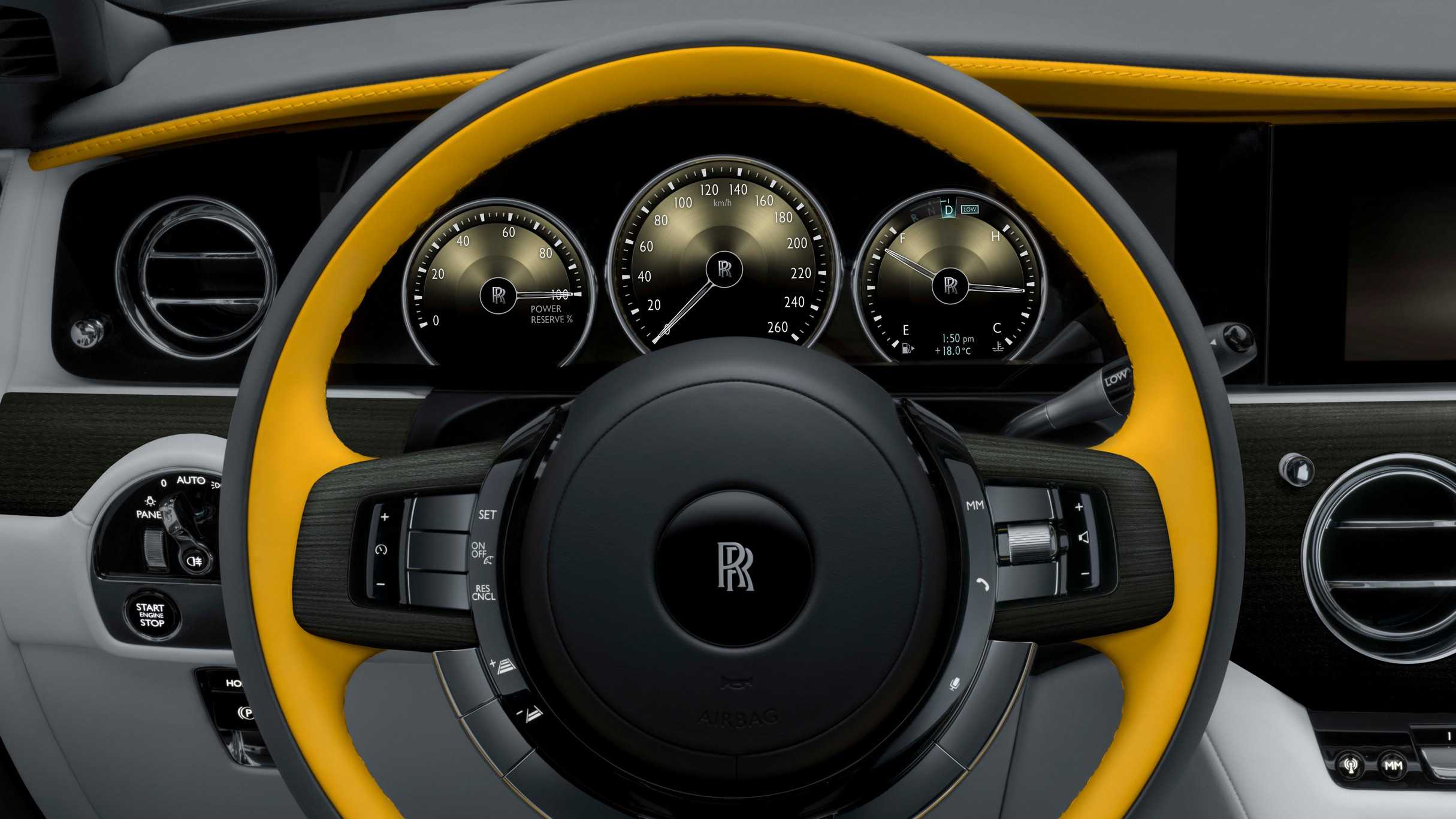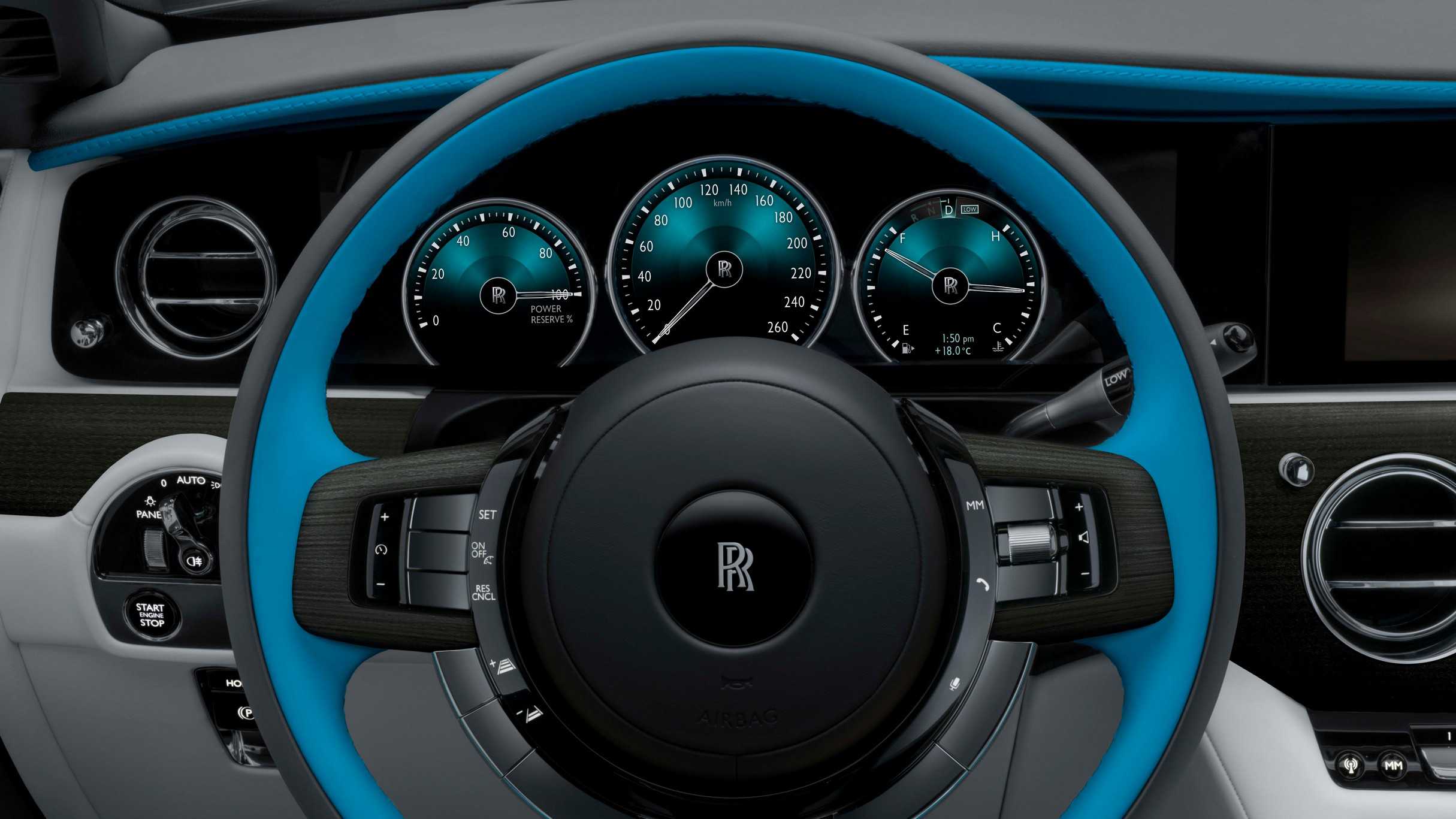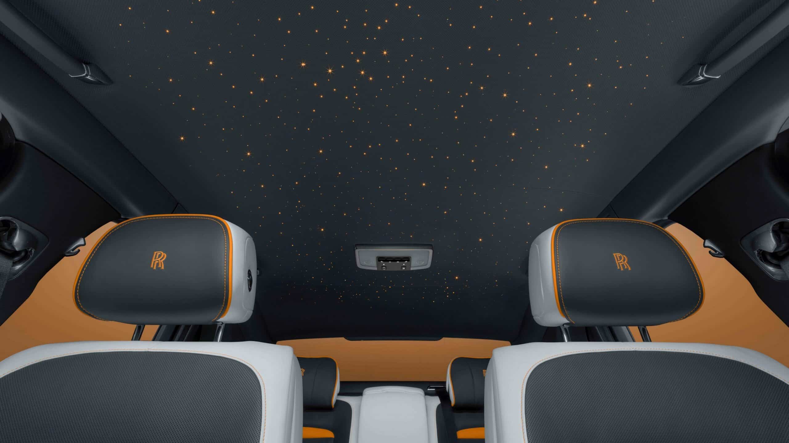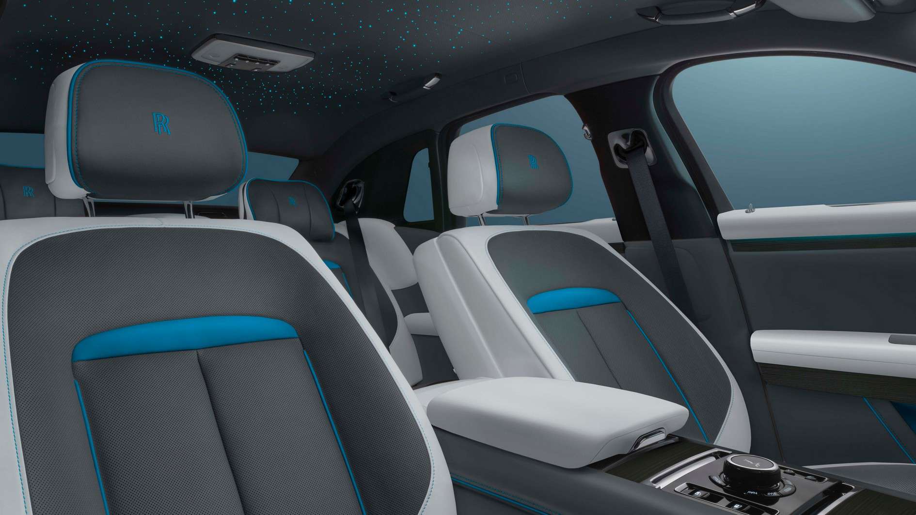 The accent color used on the outside has a correspondent inside the lavish cabin, including on the Starlight Headliner. The latter has a whopping 1,040 colored stars that have been individually positioned on the leather-wrapped ceiling with tiny holes to reveal a subtle glow. Rolls-Royce tells us early adopters are going with “light and vibrant” colors for the interior but there are virtually infinite ways to customize the posh cabin.